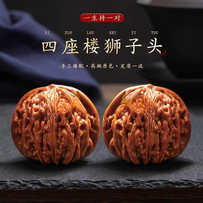 Оптовые высококачественные резные изделия из ореха для мужчин, с изображением льва на четырехэтажном здании, подходящие для ношения в руке или в качестве браслета.