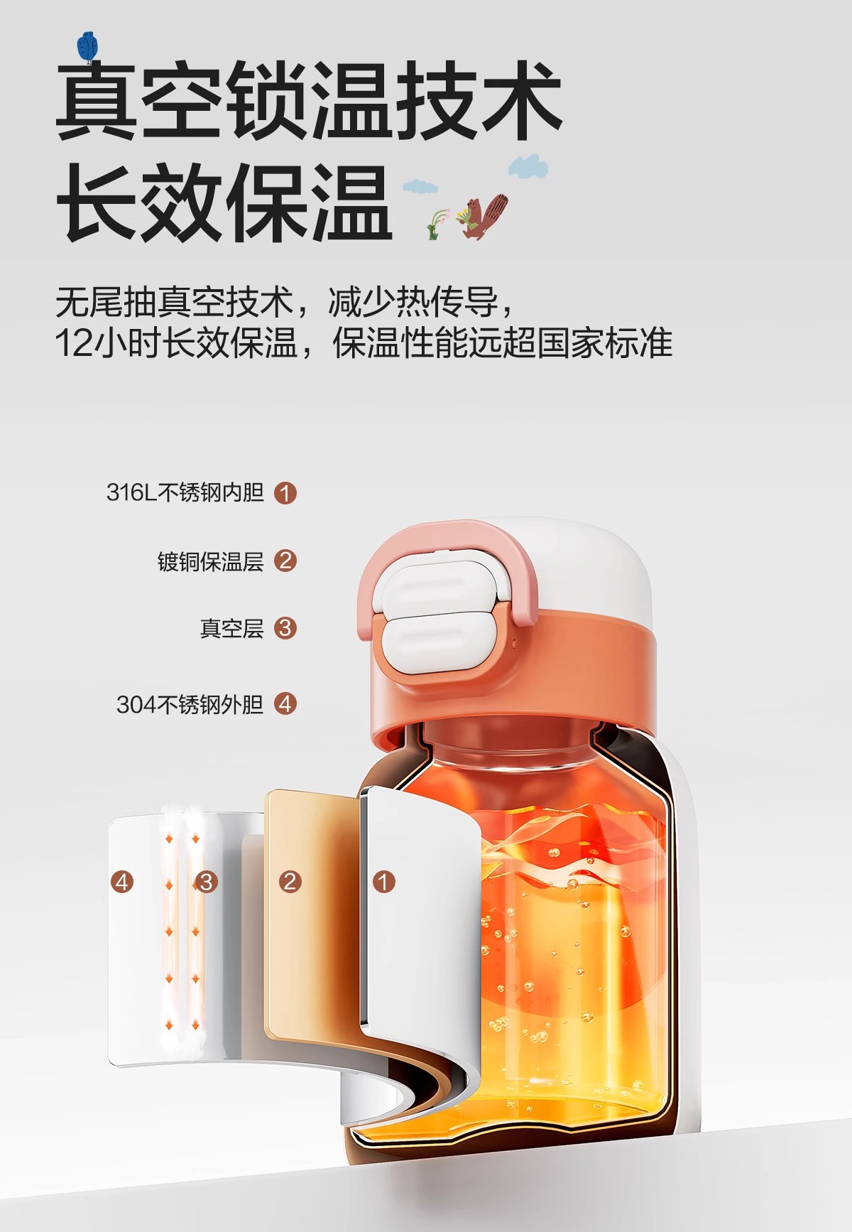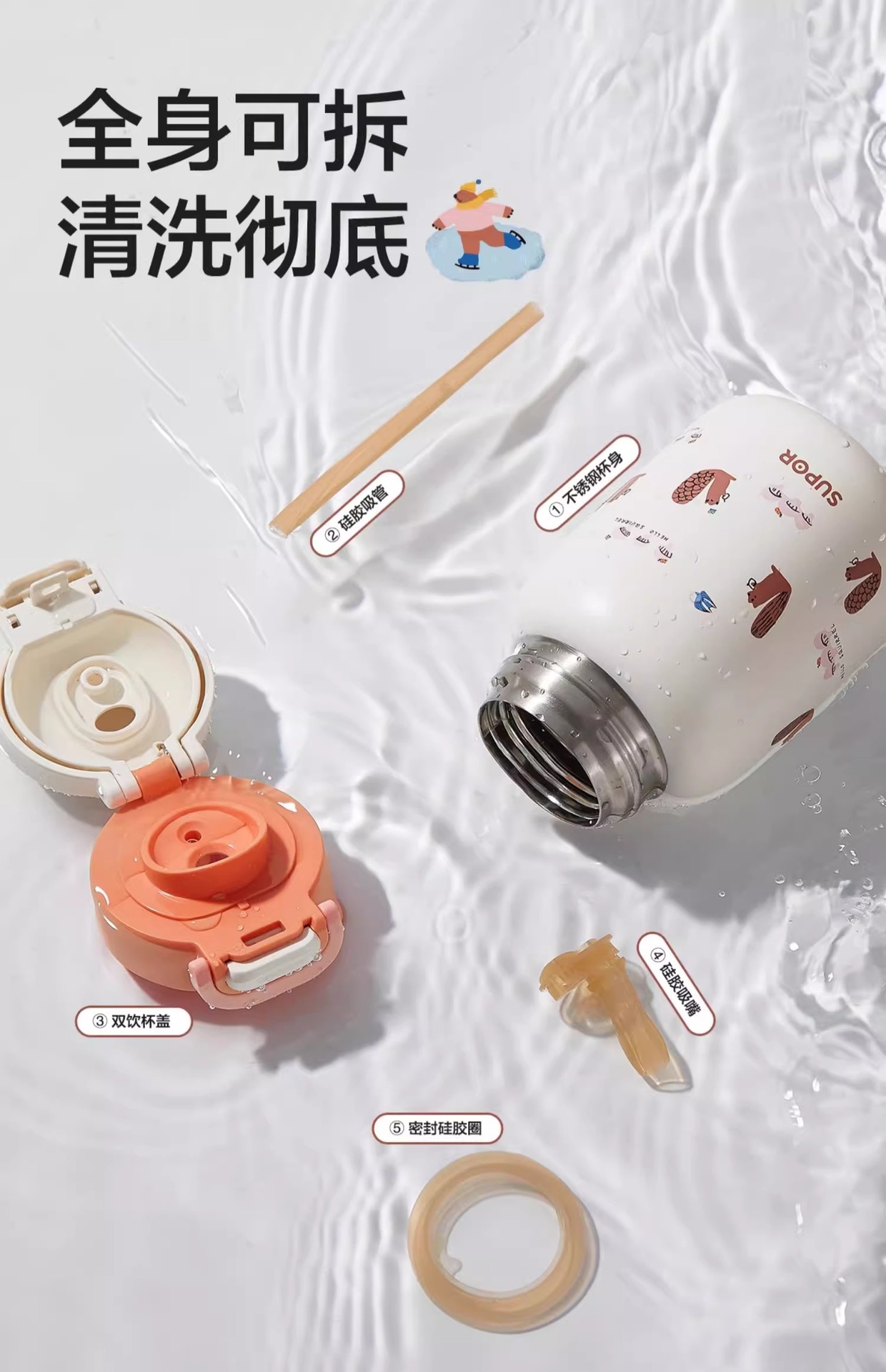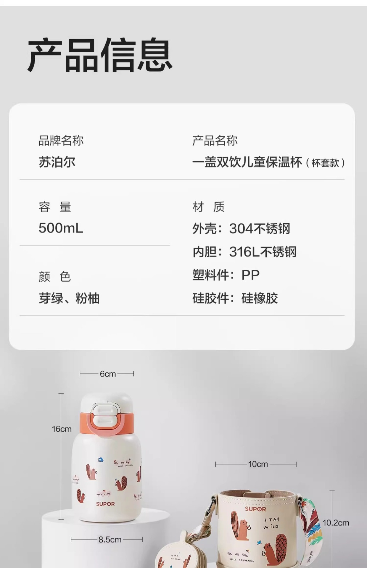 Сумор детская теплая чашка 316L из нержавеющей стали Студентка из нержавеющей стали для большого объема KCV50CK20