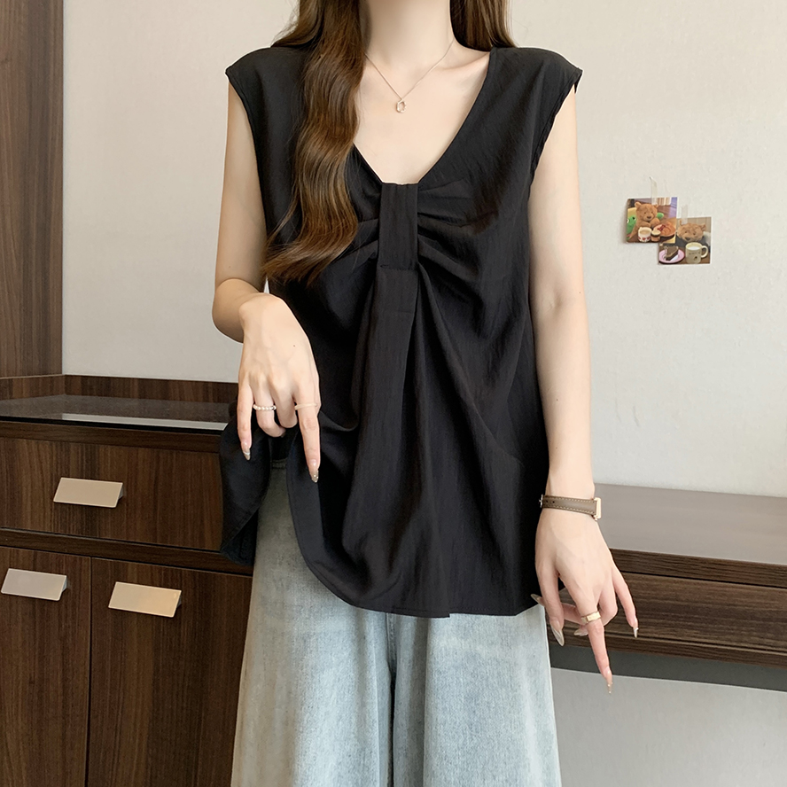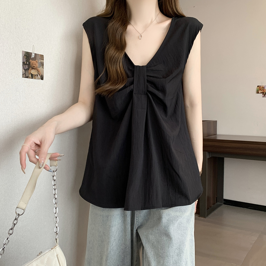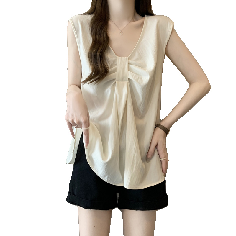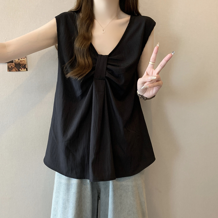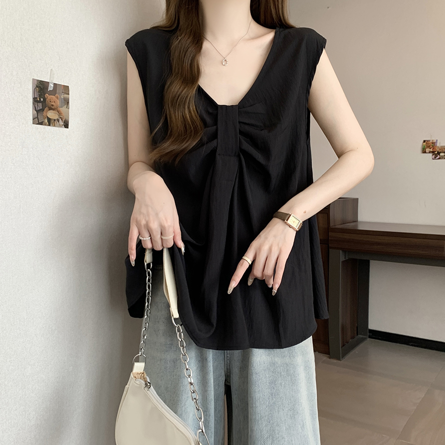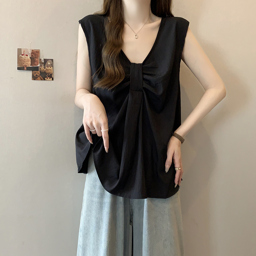 Лук широкий погон с v-образным вырезом камзол жилет для женщин носить новый летний стиль большой размер толстый мм без рукавов рубашка