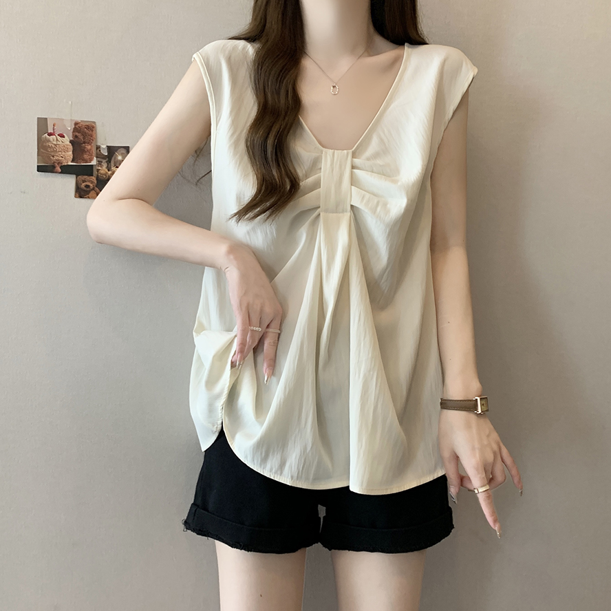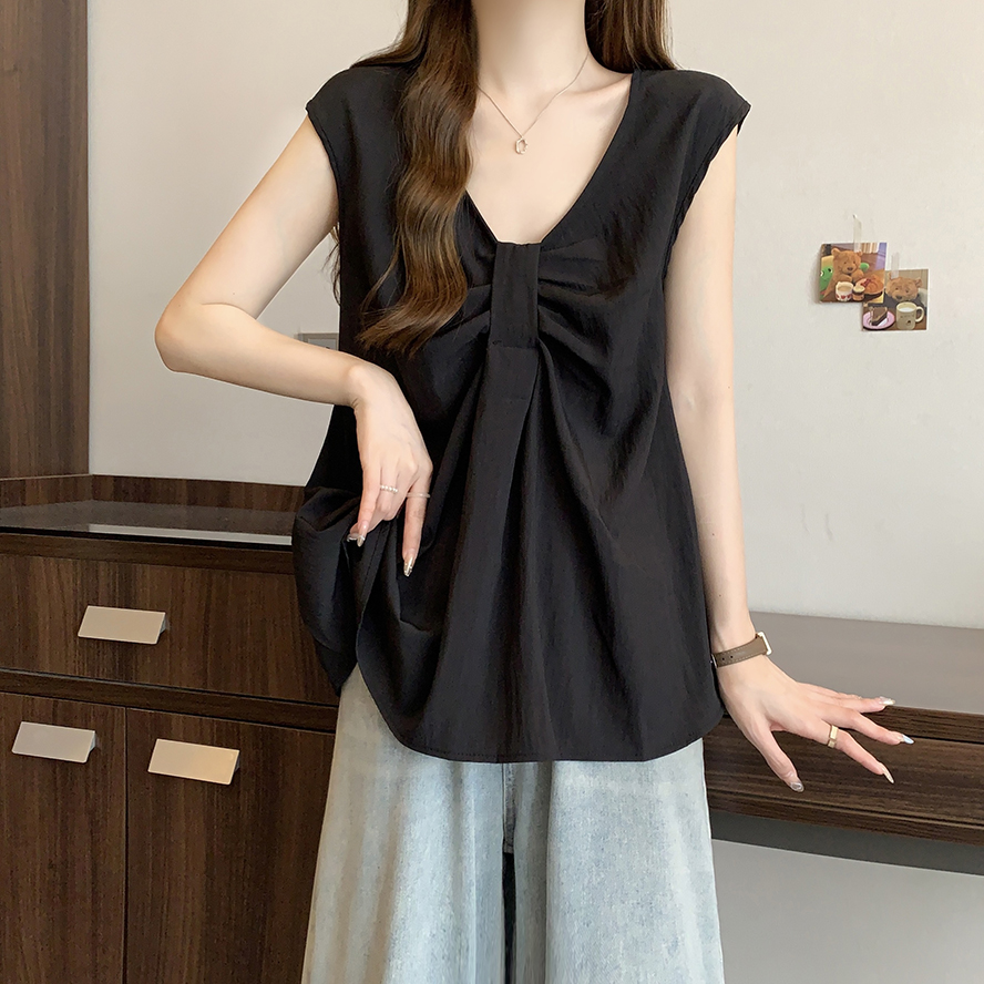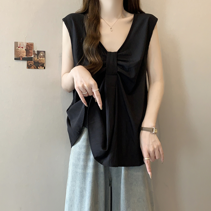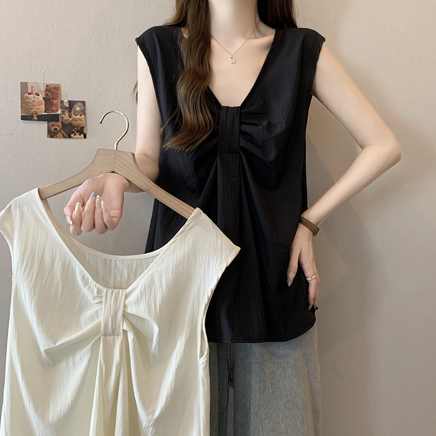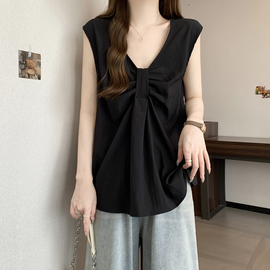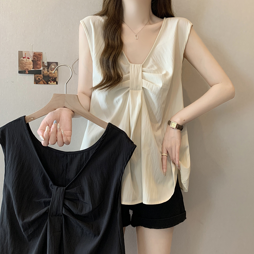 Лук широкий погон с v-образным вырезом камзол жилет для женщин носить новый летний стиль большой размер толстый мм без рукавов рубашка