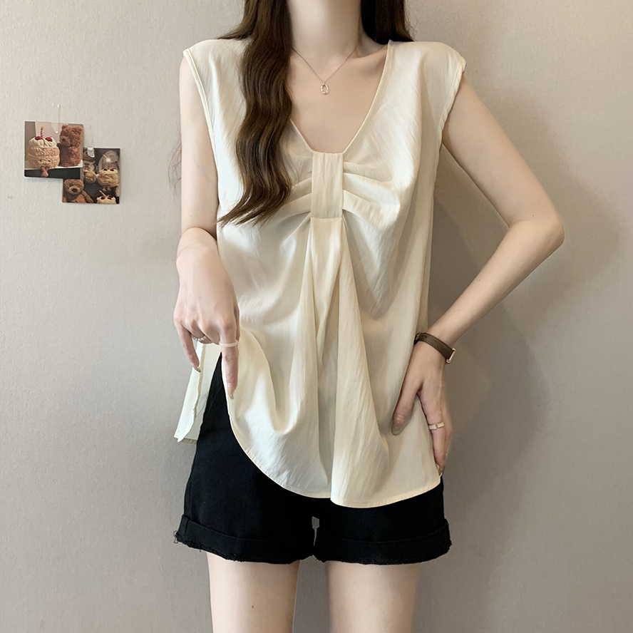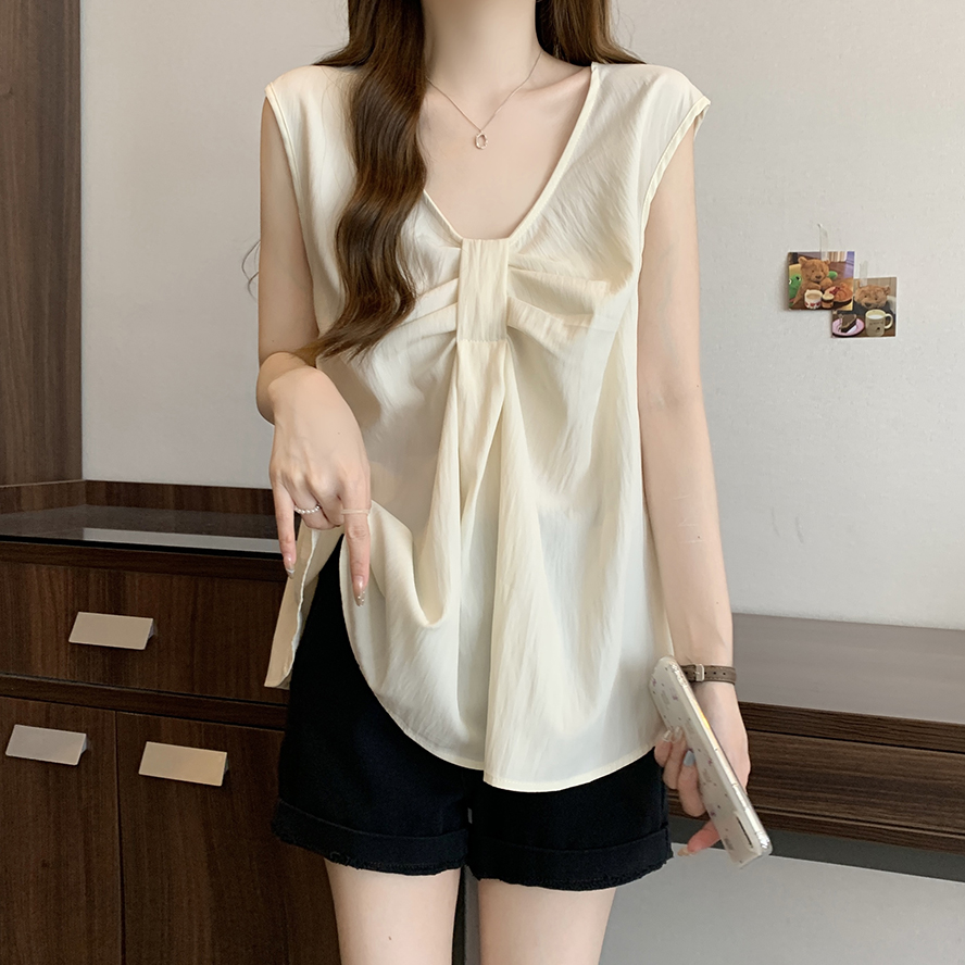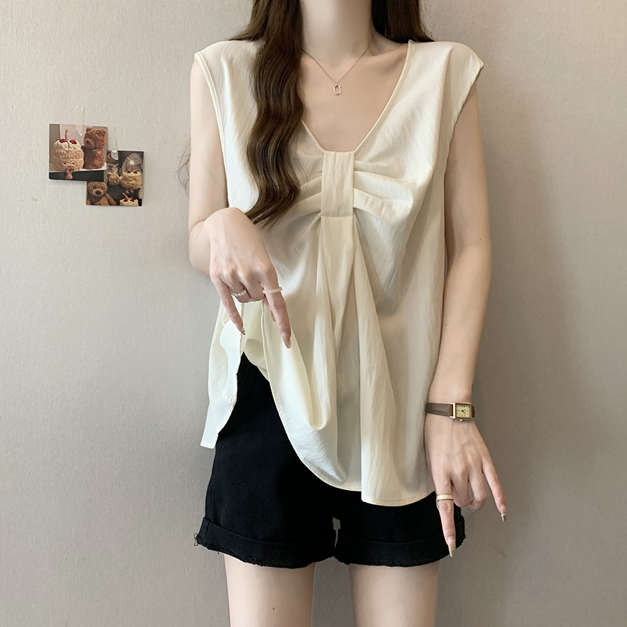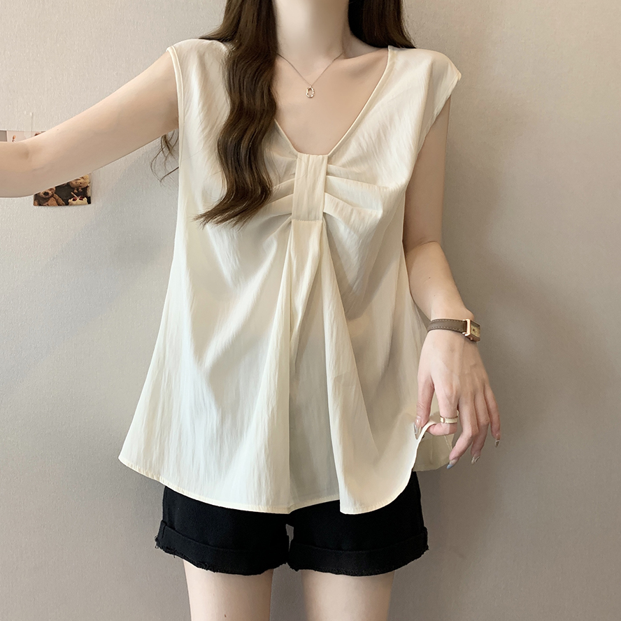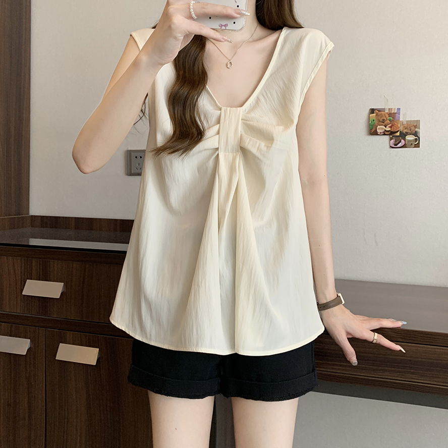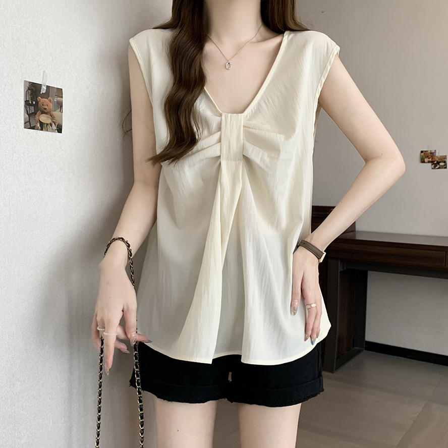 Лук широкий погон с v-образным вырезом камзол жилет для женщин носить новый летний стиль большой размер толстый мм без рукавов рубашка