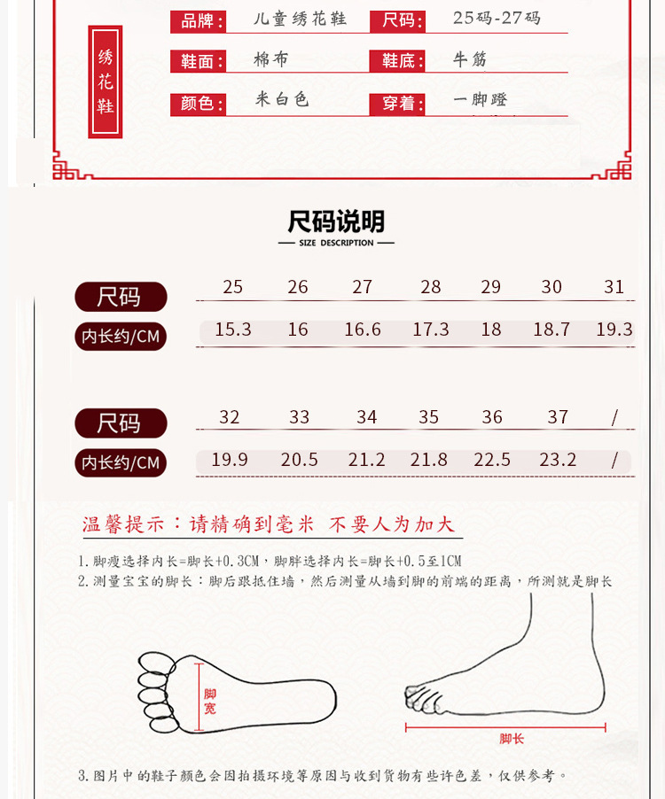 25 ярдов/15,5 см; Размер 26/внутренняя длина 16,2 см.; Размер 27/внутренняя длина 16,8 см.; Размер 28/внутренняя длина 17,5 см.; Размер 29/внутренняя длина 18,2 см.; 30 ярдов/внутренняя длина 18,9 см; Размер 31/внутренняя длина 19,5 см.; Размер 32/внутренняя длина 20,1 см.; Размер 33/внутренняя длина 20,7 см.; Размер 34/внутренняя длина 21,5 см.; 35 ярдов/внутренняя длина 22 см; Размер 36/внутренняя длина 22,7 см.; Размер 37/внутренняя длина 23,2 см.