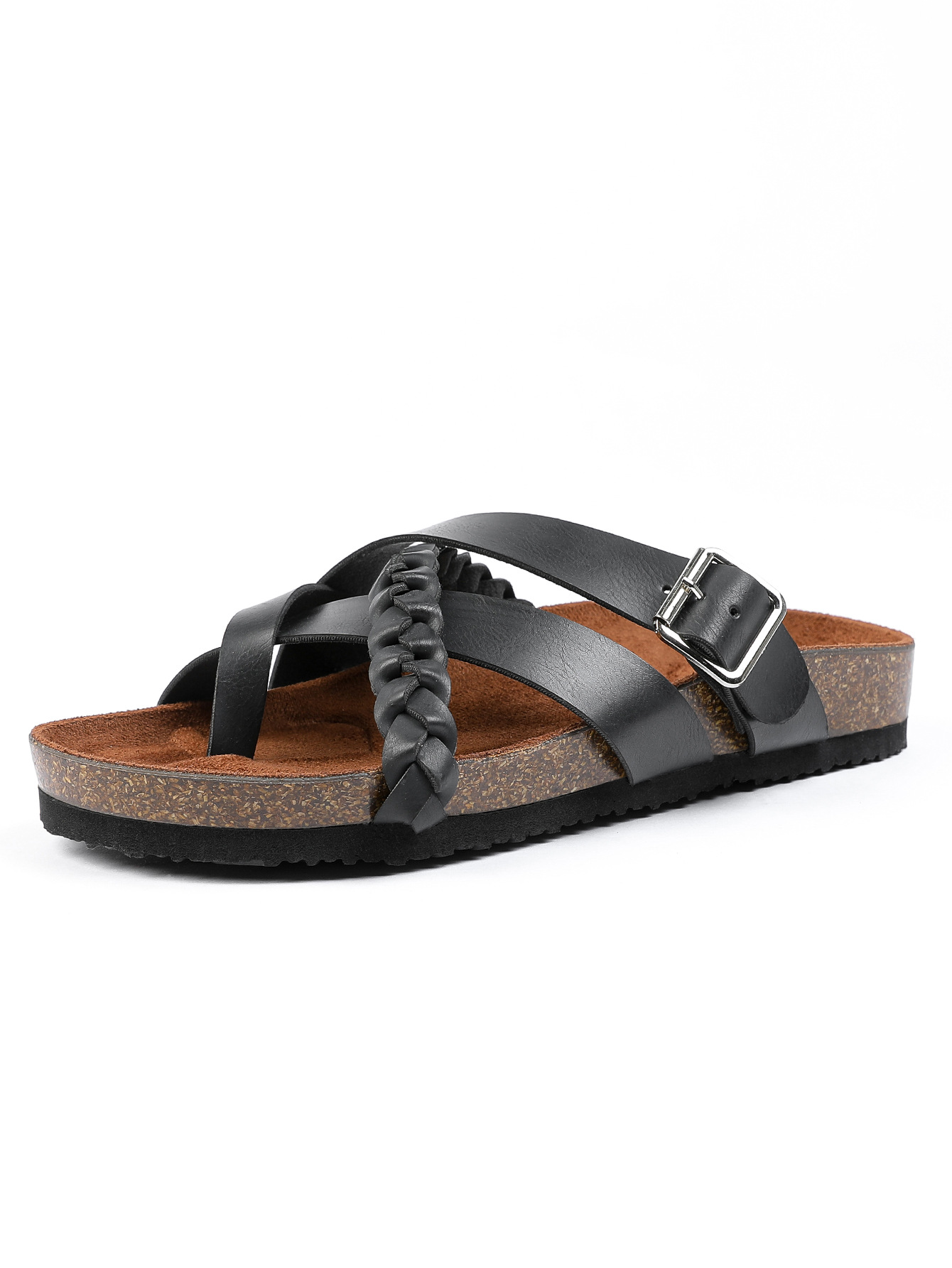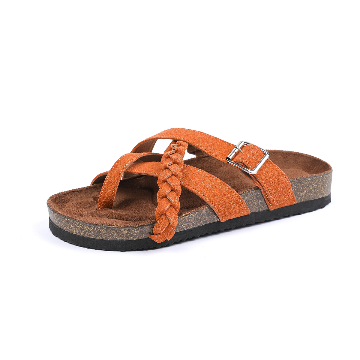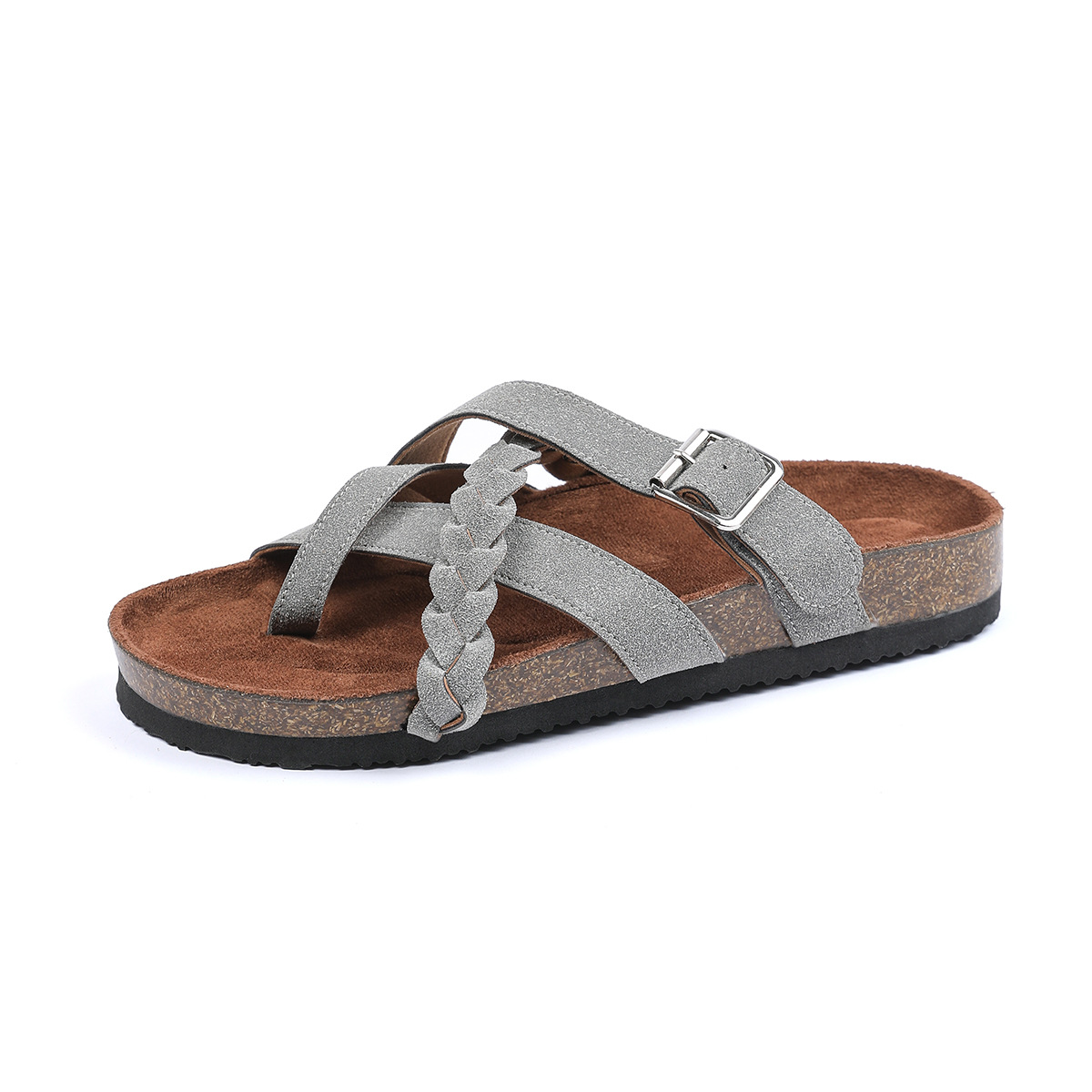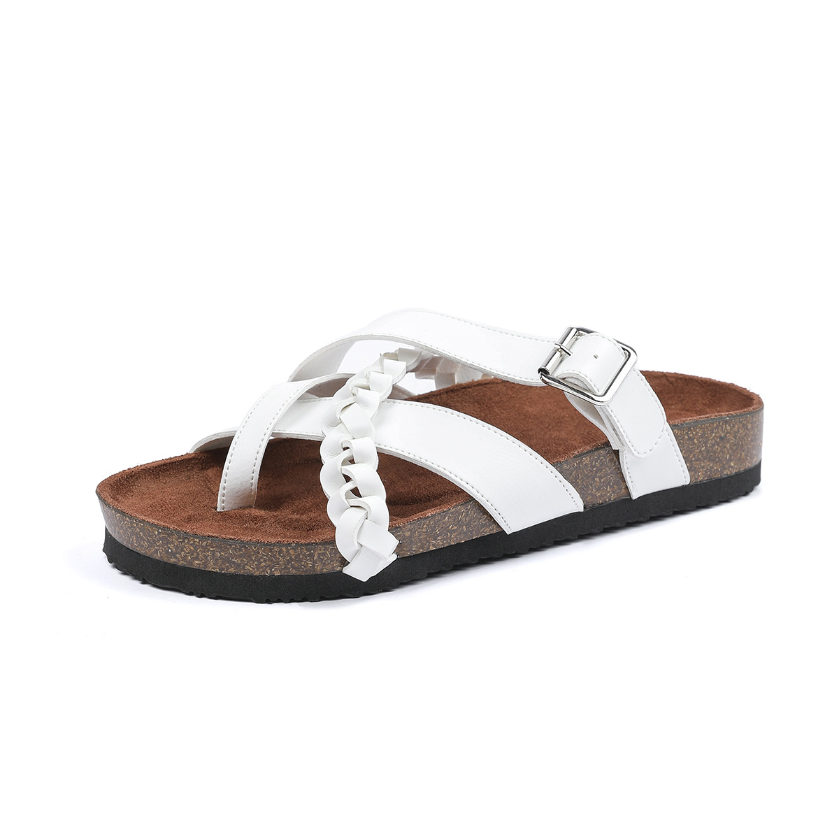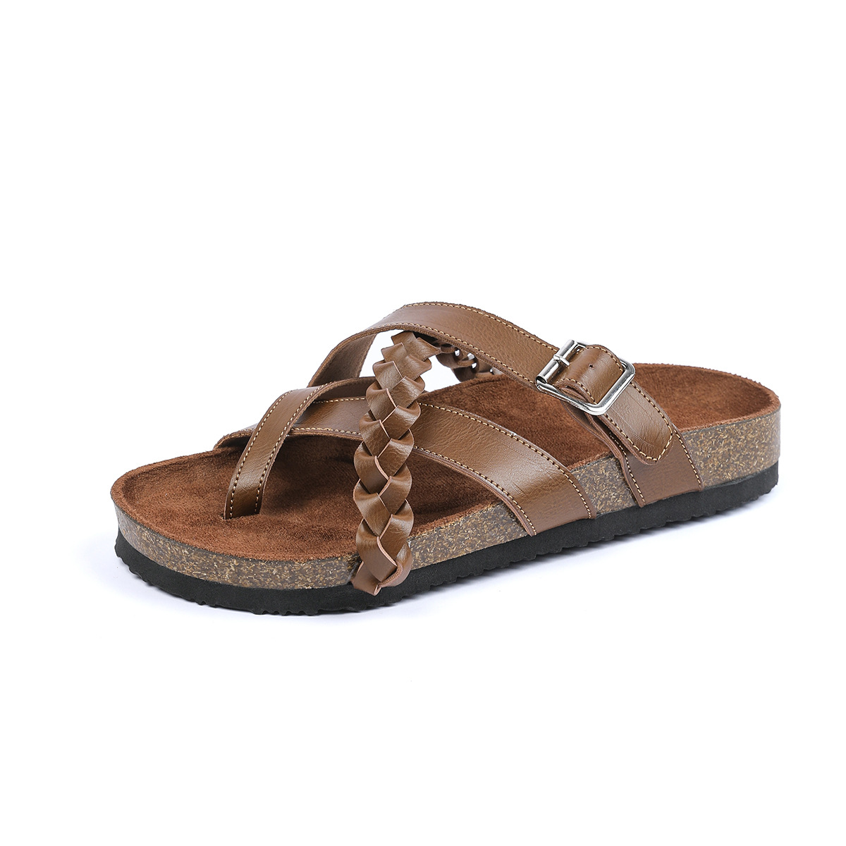 Женские летние сандалии на плоской подошве с толстой пробковой подошвой для улицы, пляжные сандалии с перекрестными ремешками и открытым носком, 2025 год