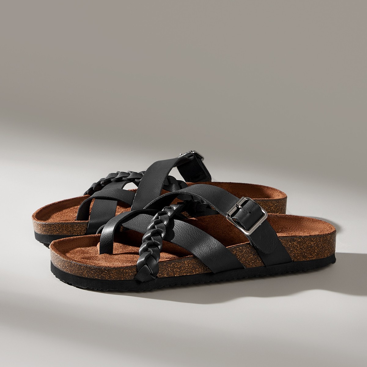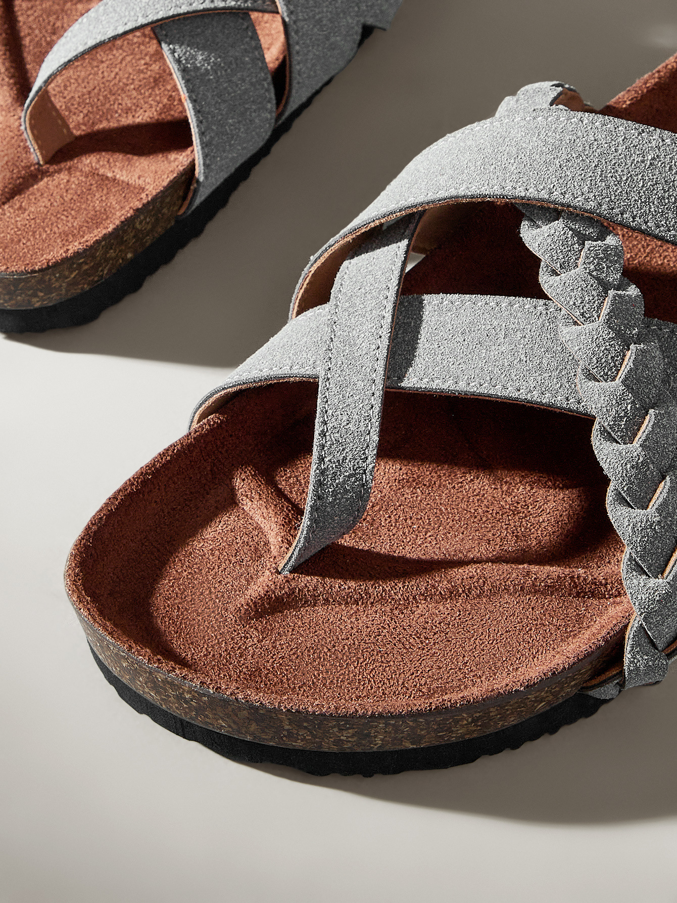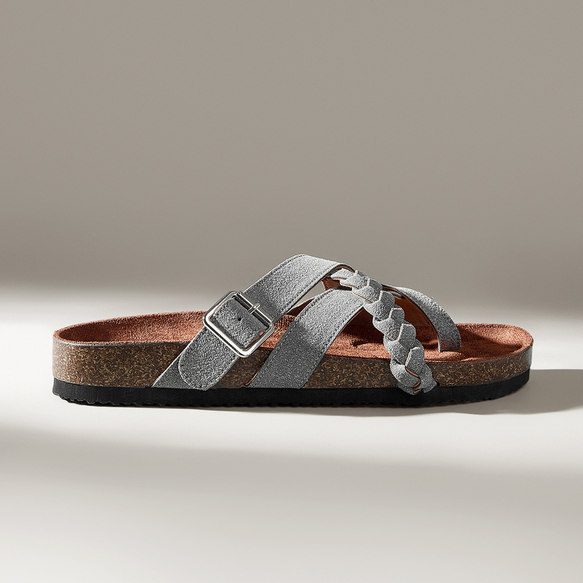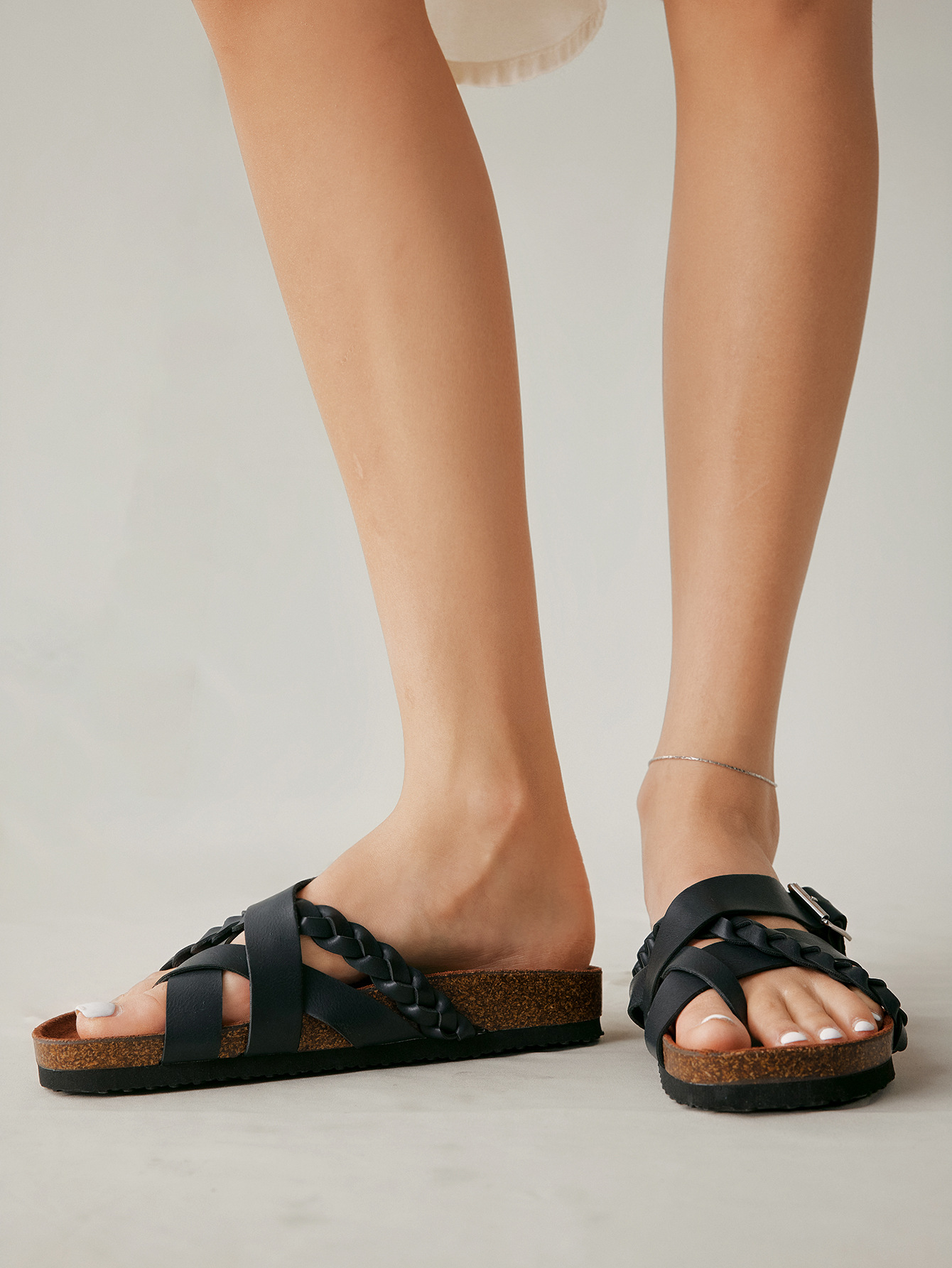 Женские летние сандалии на плоской подошве с толстой пробковой подошвой для улицы, пляжные сандалии с перекрестными ремешками и открытым носком, 2025 год