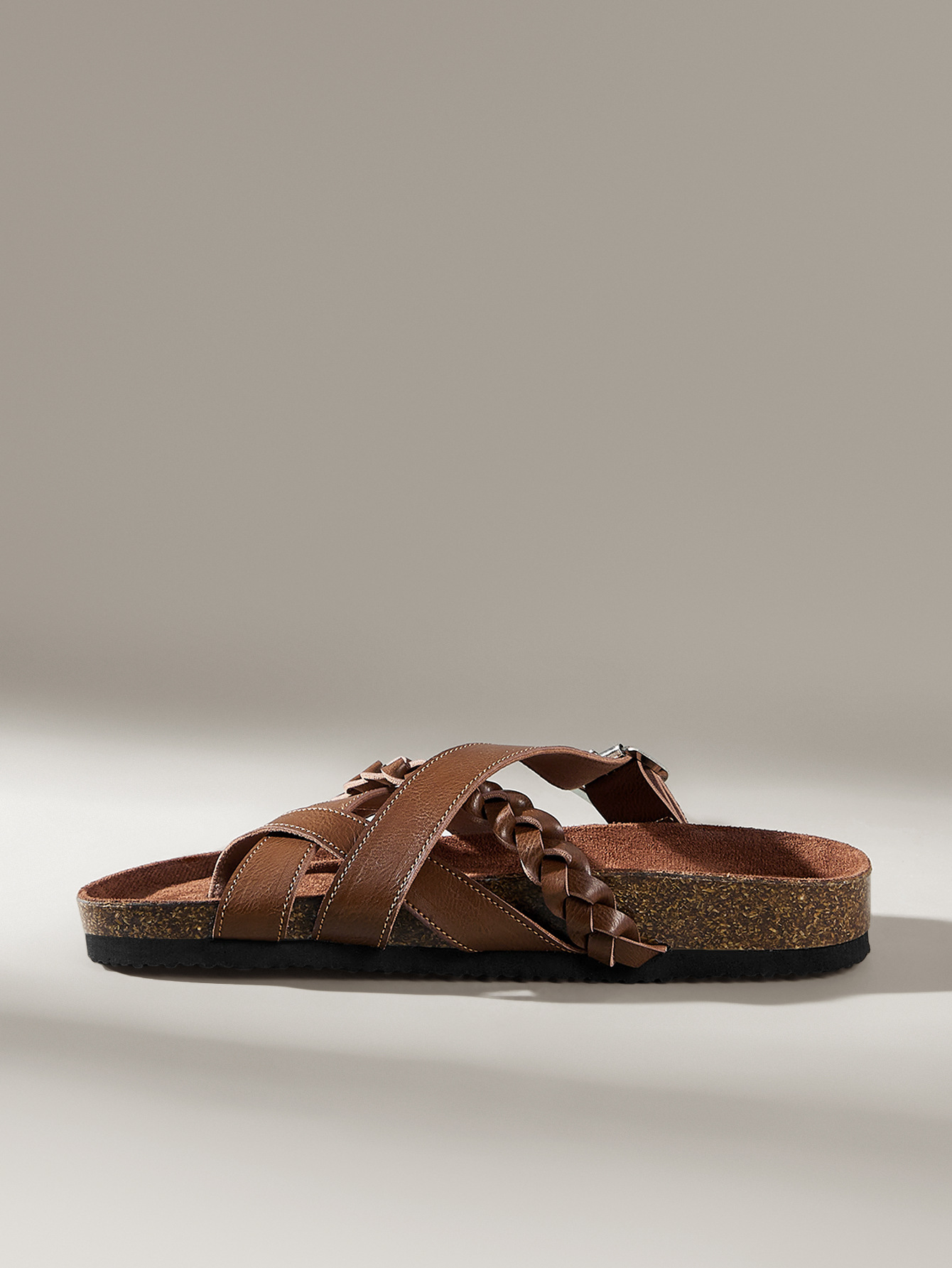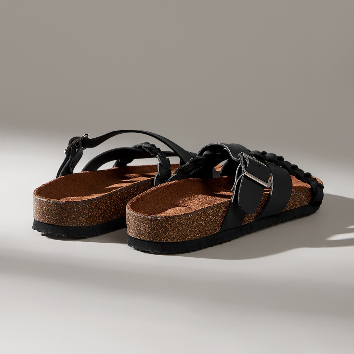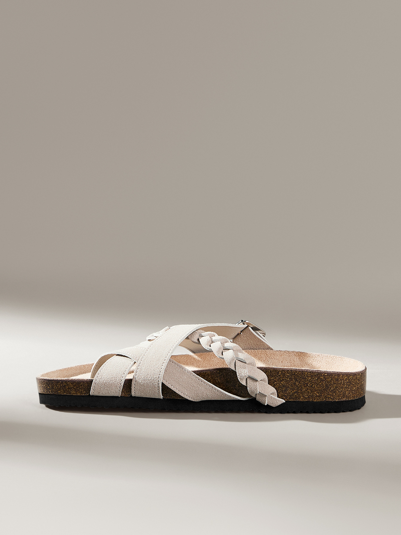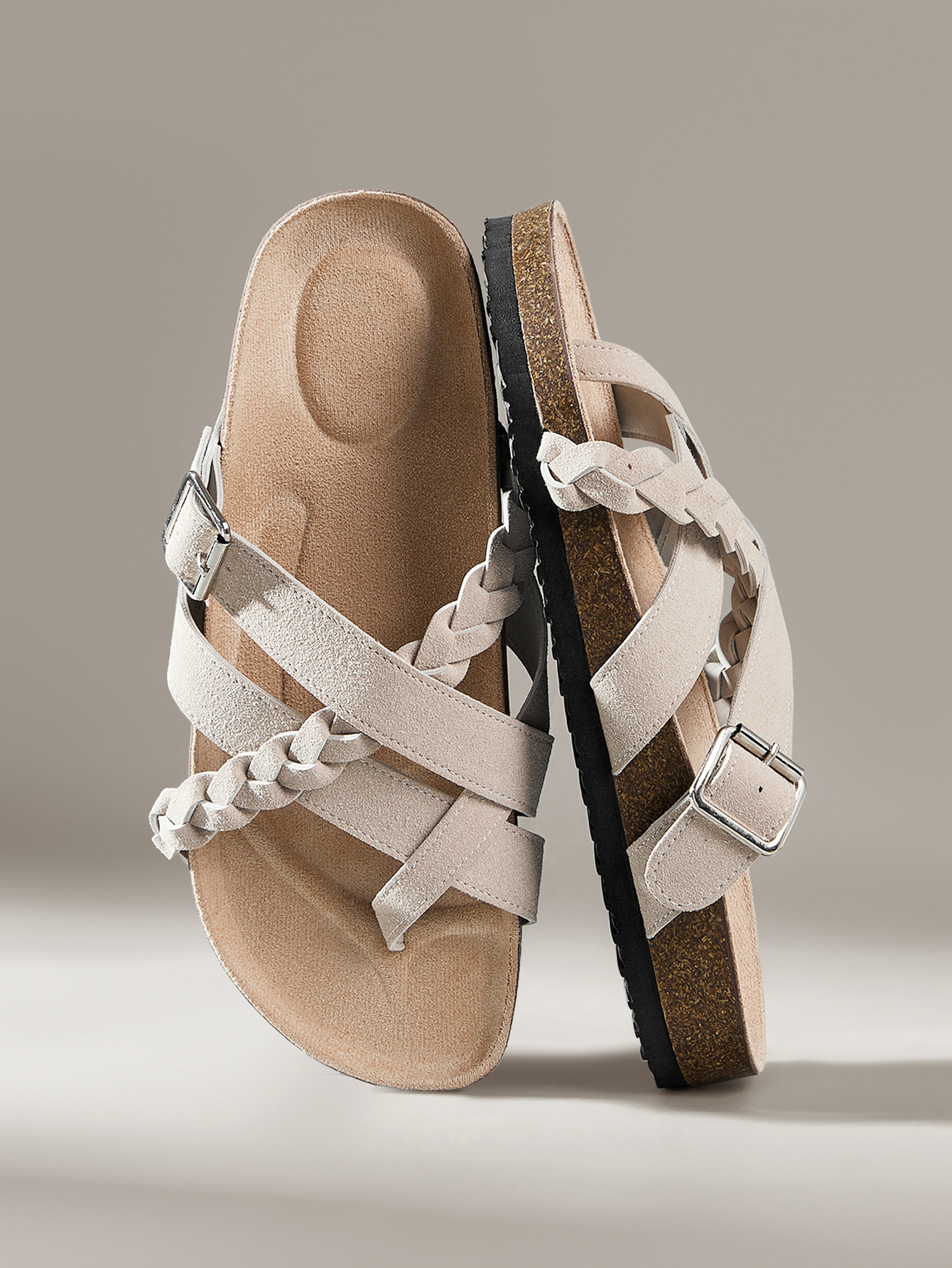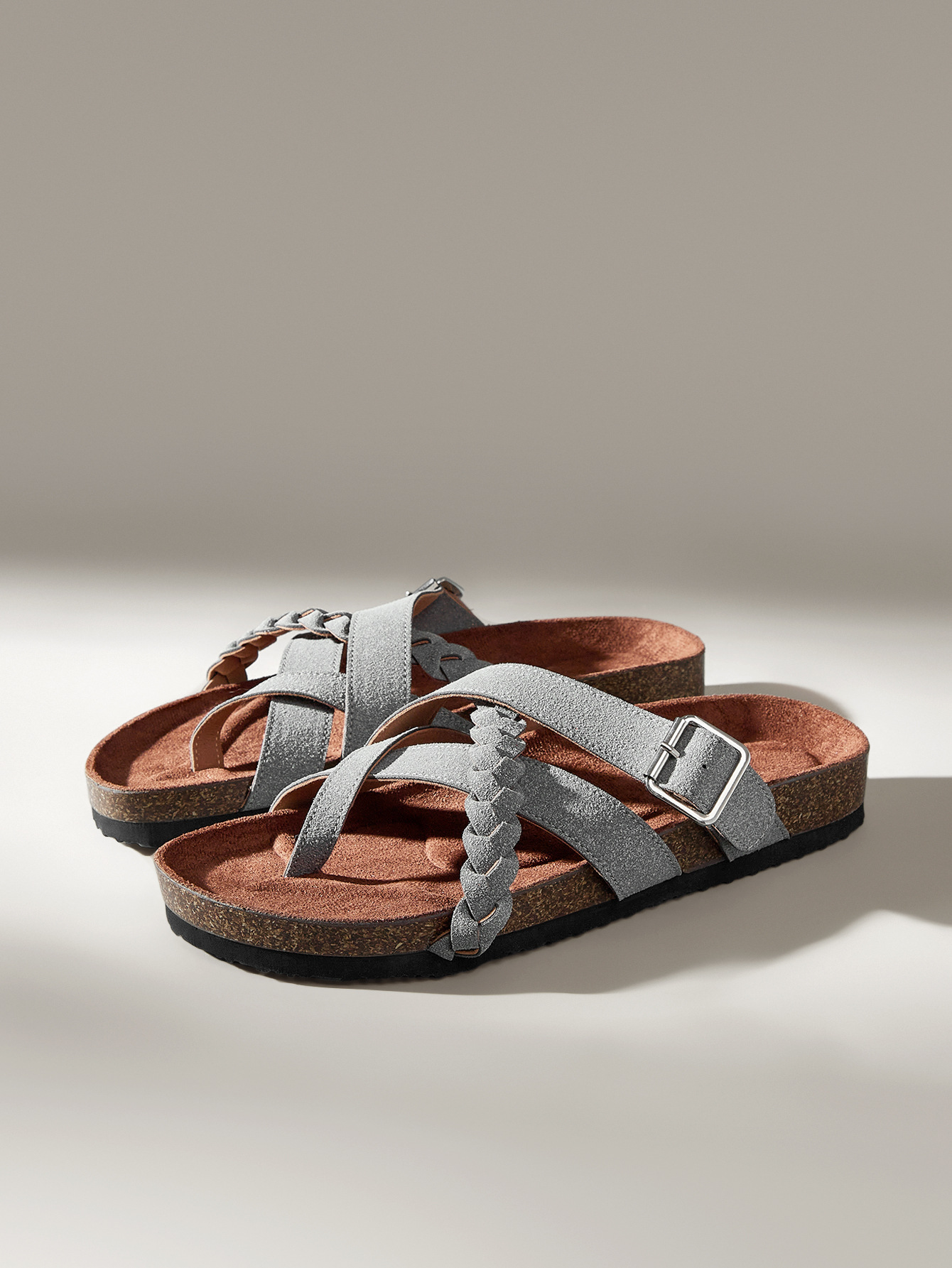 Женские летние сандалии на плоской подошве с толстой пробковой подошвой для улицы, пляжные сандалии с перекрестными ремешками и открытым носком, 2025 год