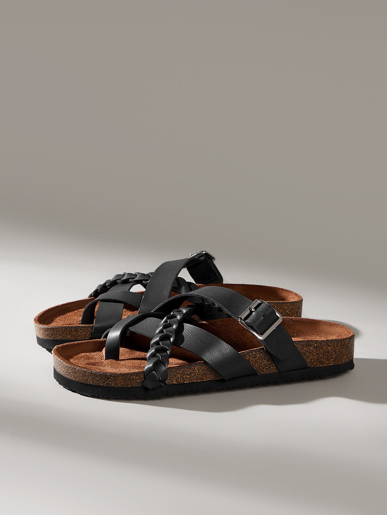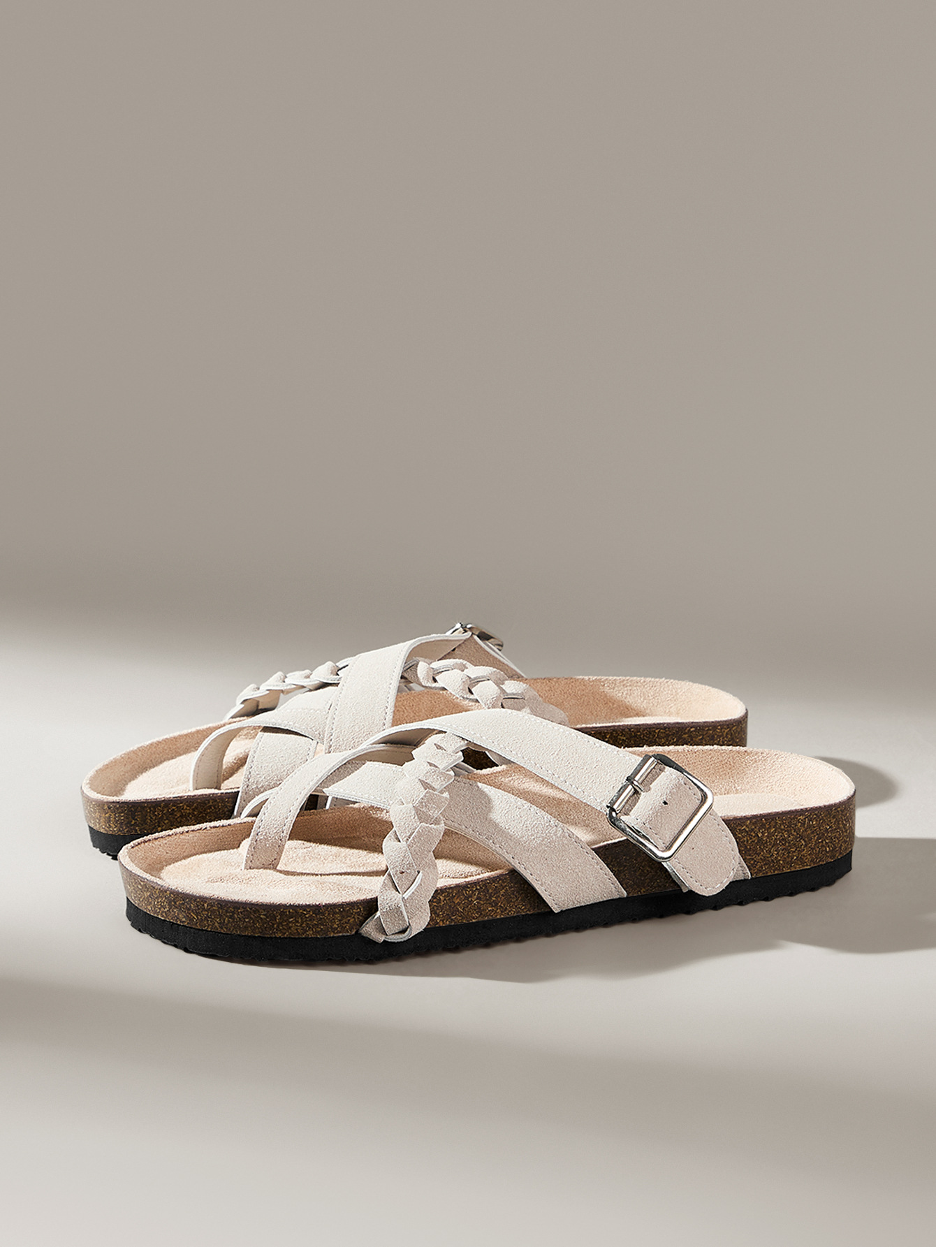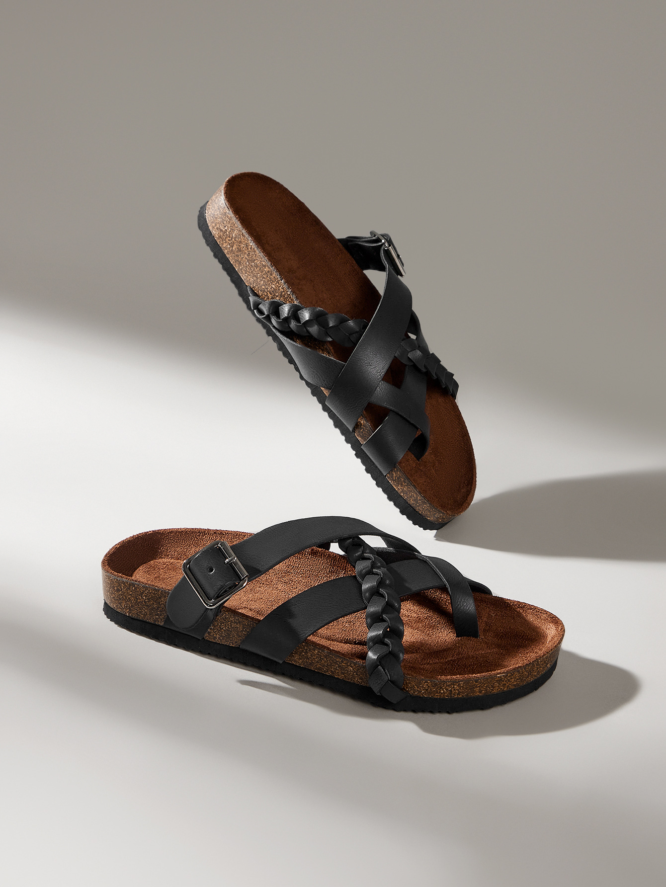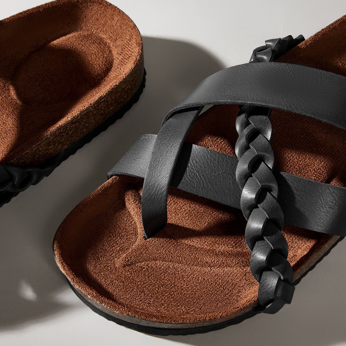 Женские летние сандалии на плоской подошве с толстой пробковой подошвой для улицы, пляжные сандалии с перекрестными ремешками и открытым носком, 2025 год