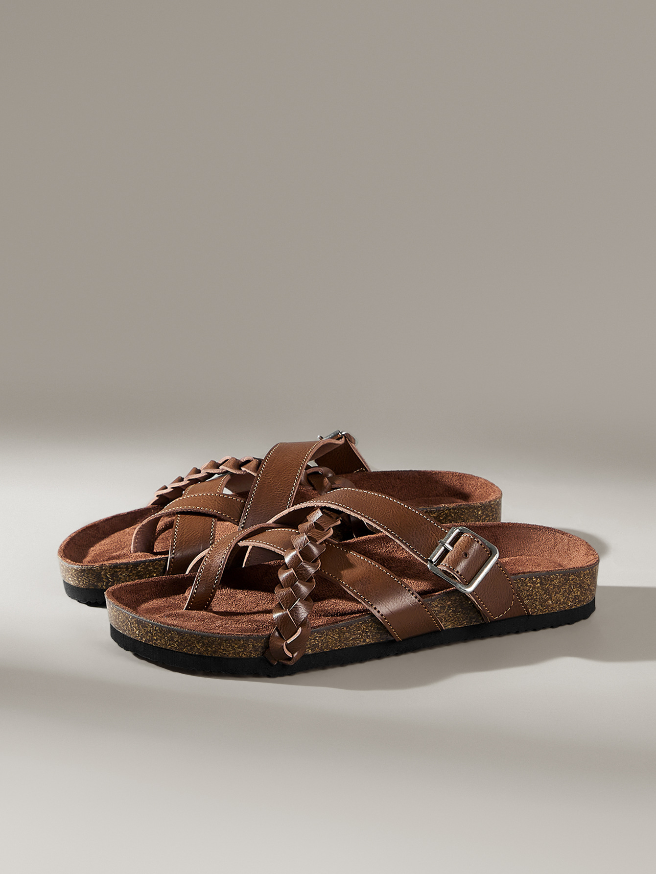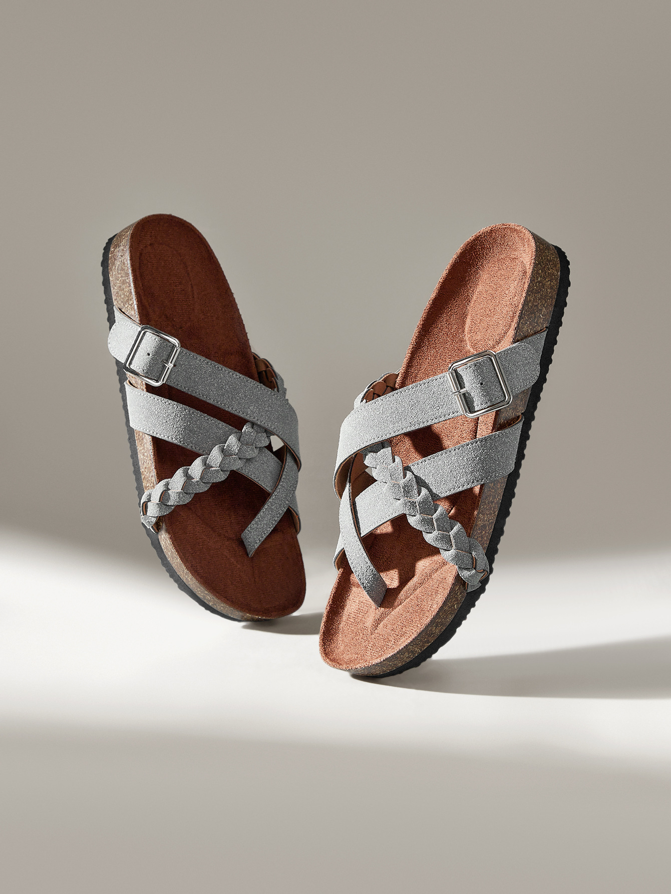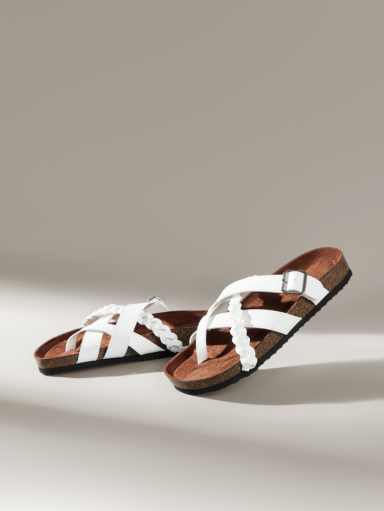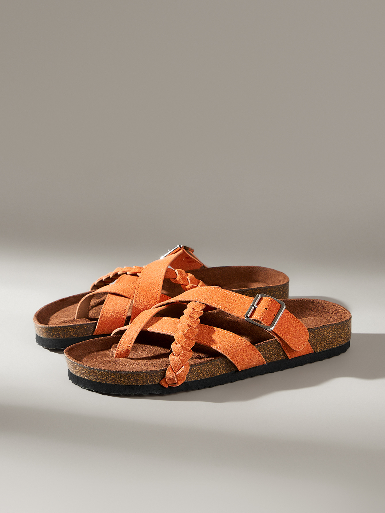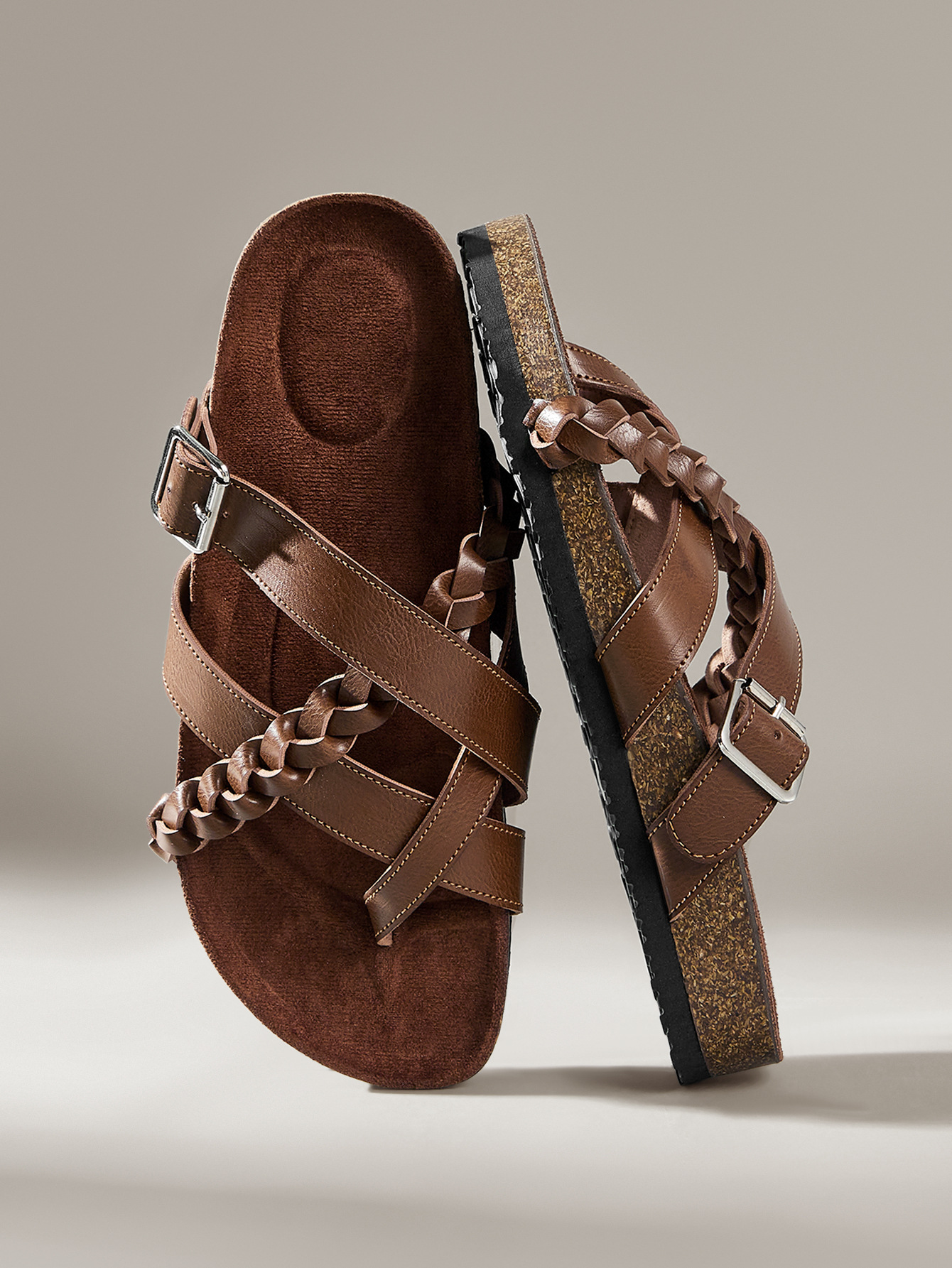 Женские летние сандалии на плоской подошве с толстой пробковой подошвой для улицы, пляжные сандалии с перекрестными ремешками и открытым носком, 2025 год