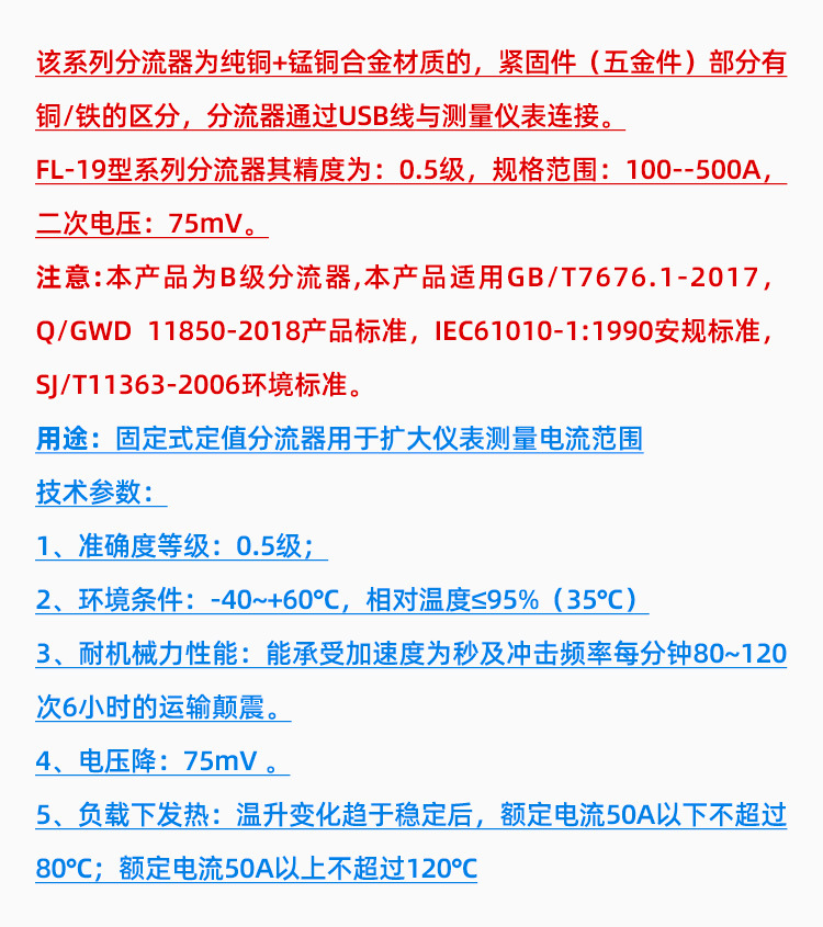 Peizheng FL-19 Амперметр постоянного тока, шунтовый пробоотборник из чистой меди, точность уровня 0,5, 50A100A-500A75 мВ