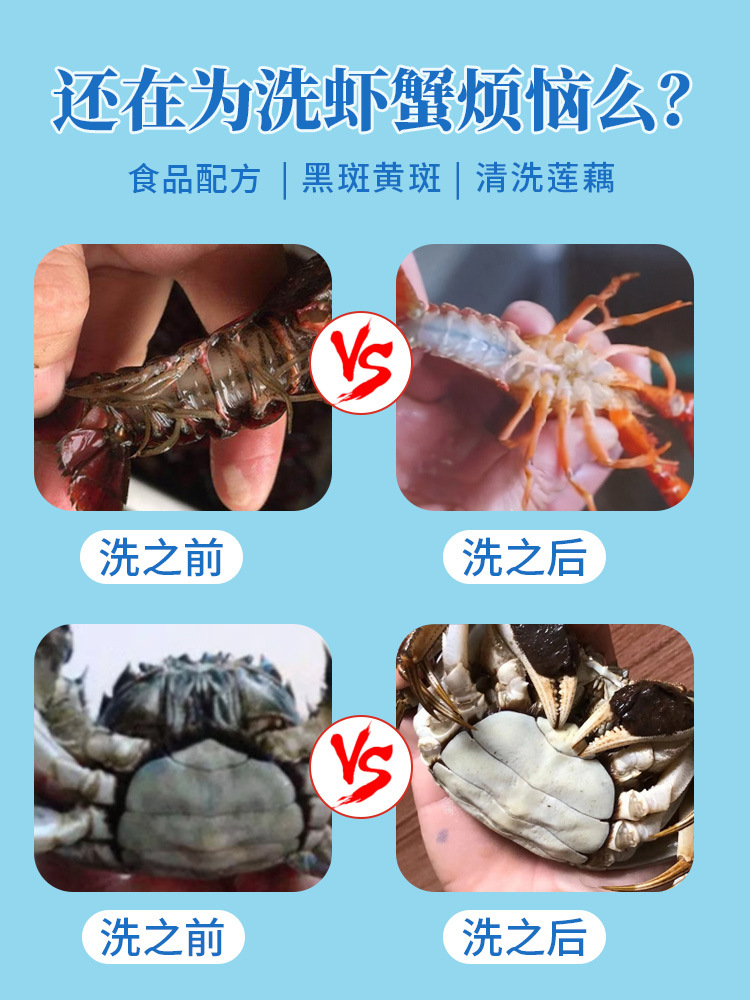 Стиральный порошок для креветок, средство для чистки раков, съедобный биологический фермент для удаления ржавчины, соль для чистки омаров, удаление корня лотоса, удаление черной ржавчины с креветок и крабов.
