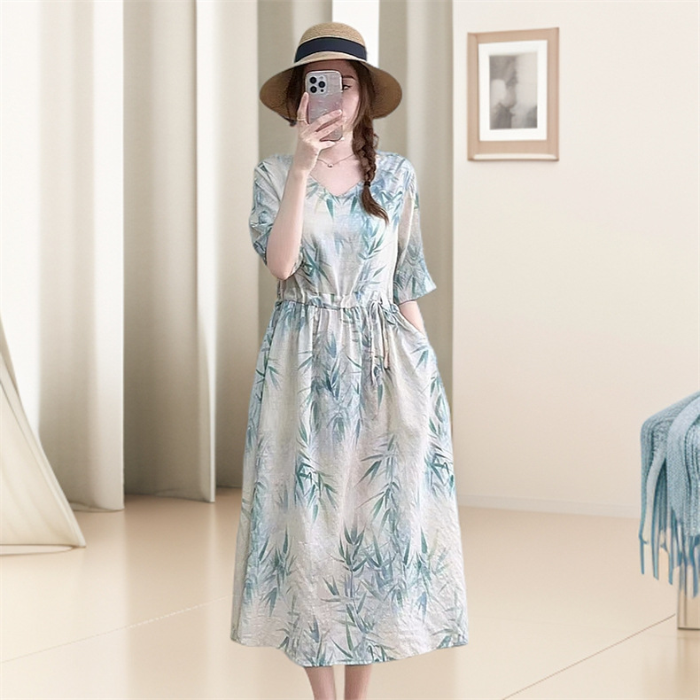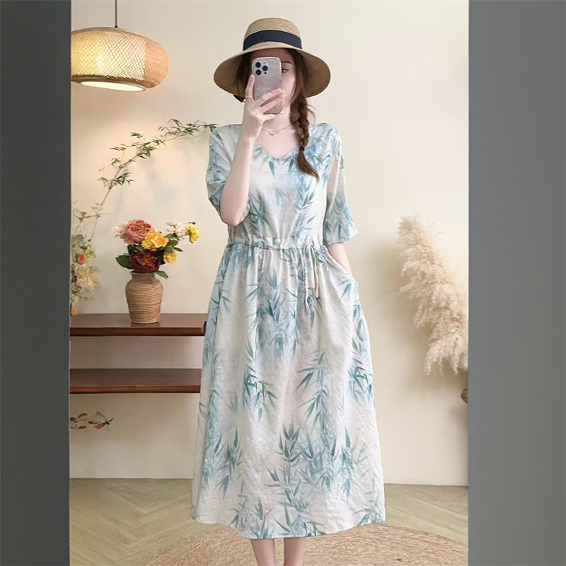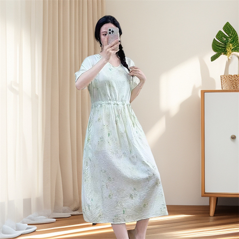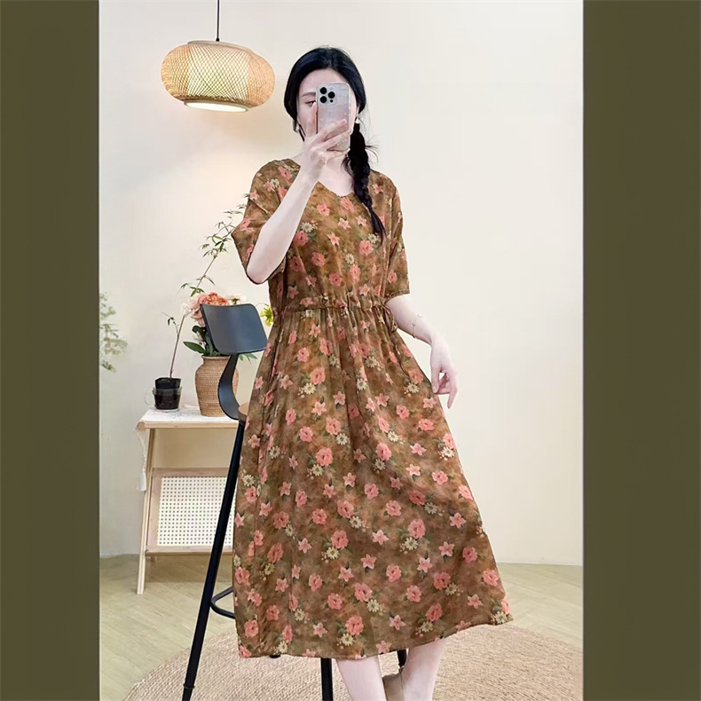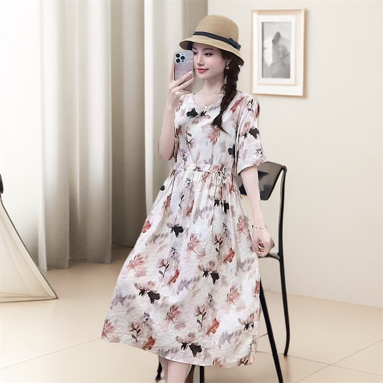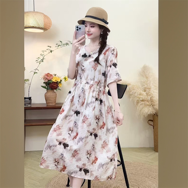 2025 новое платье с длинными рукавами, модное новое платье с цветочным принтом, большой размер, юбка средней длины, закрывающая живот, для похудения