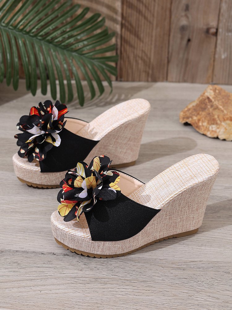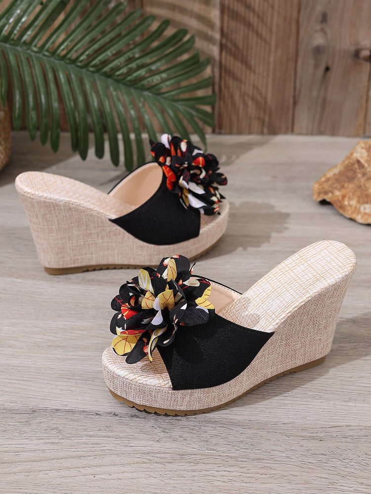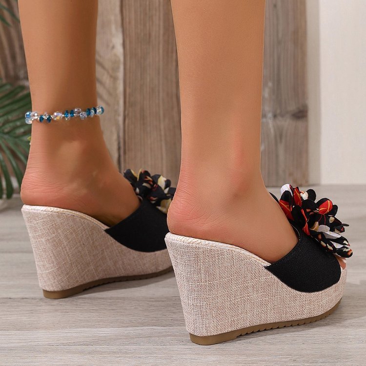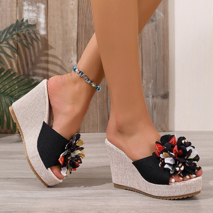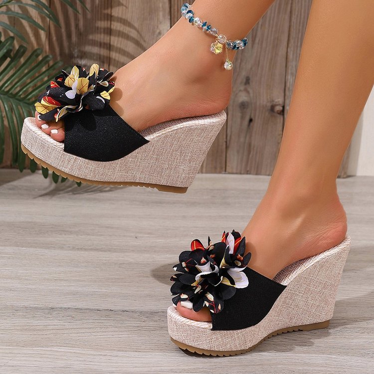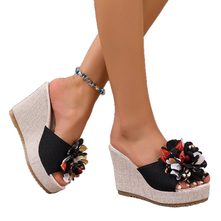 Летние платформенные цветочные кроссовки больших размеров на танкетке для женщин 2025, новые, оптовая торговля, открытые босоножки на толстой подошве с открытым носком.