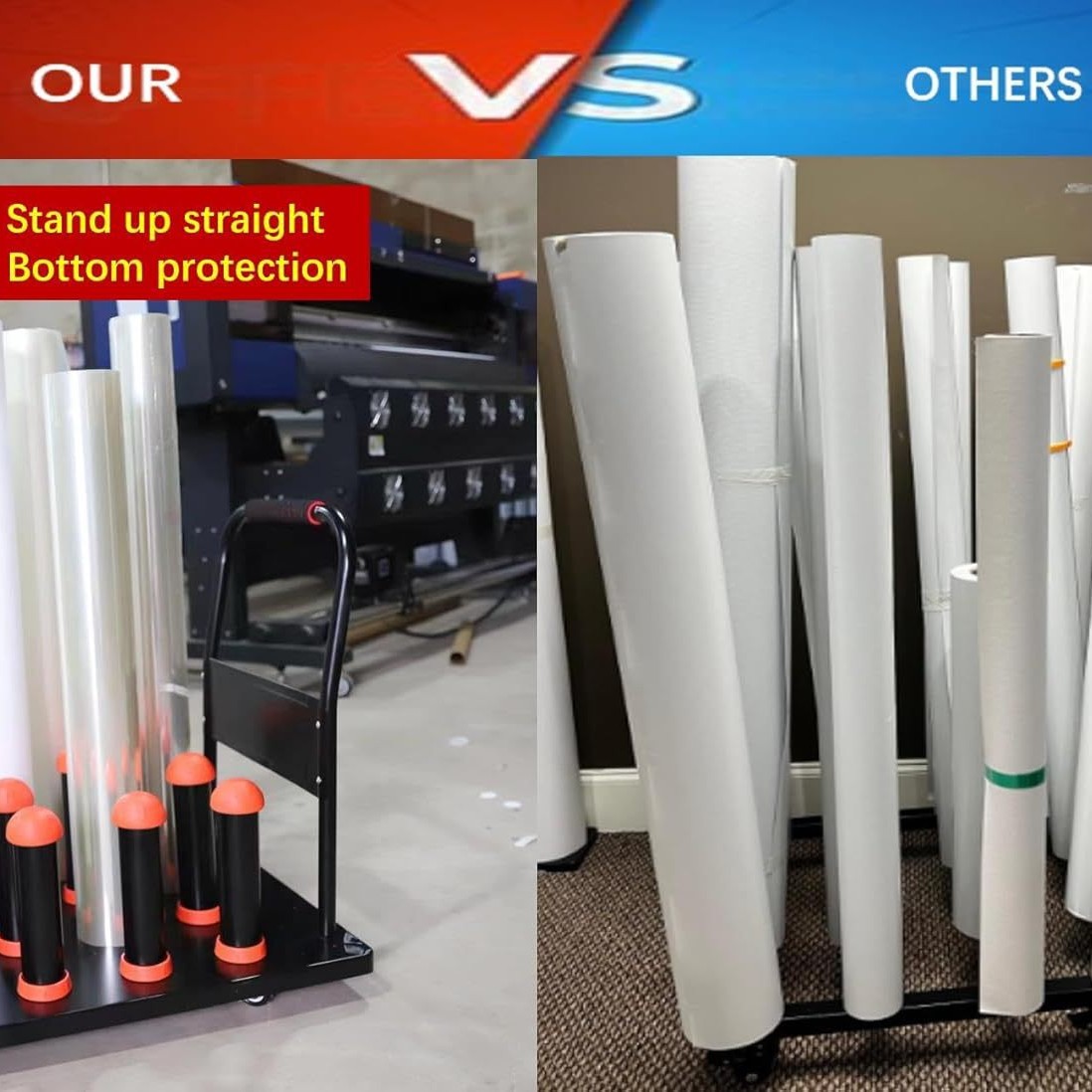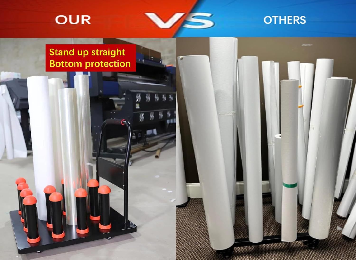 Тележка для хранения виниловых рулонов HSW с ручкой, 16 рулонов, сверхмощный держатель для рулонов цифровых носителей, вмещает 3 дюйма