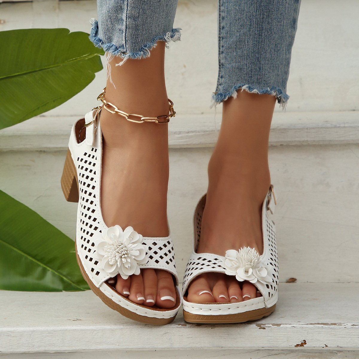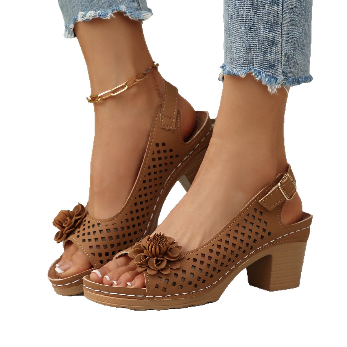Женские летние босоножки на высоком каблуке больших размеров, трансграничная мода 2025 года, европейский и американский стиль, толстый каблук, пряжка
