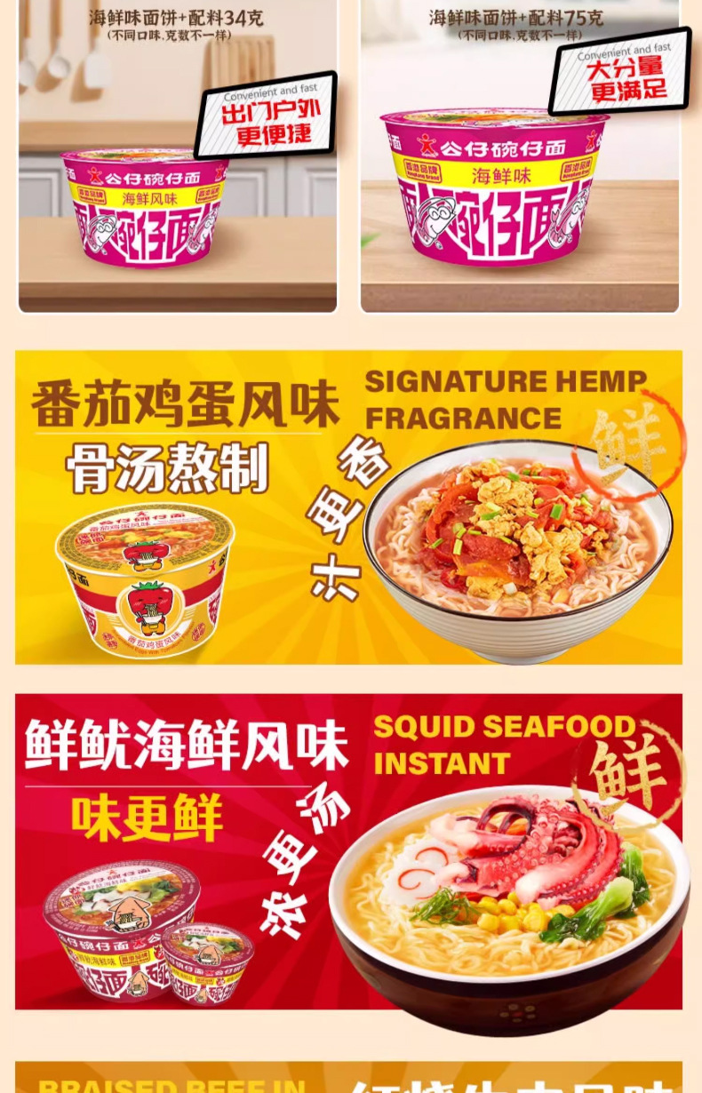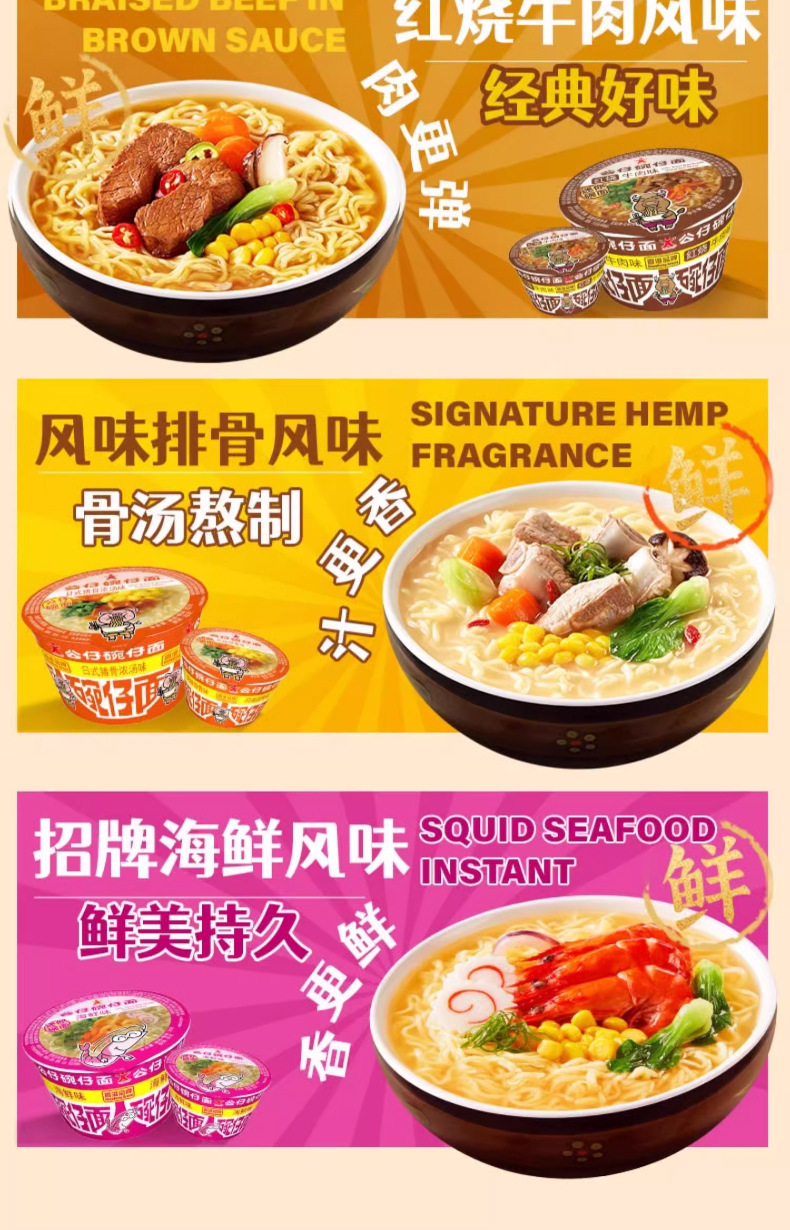 Гонконгская мини-кукольная миска для лапши, чашка для закусок, быстрорастворимая лапша, семейное ведро, смешанный вкус морепродуктов
