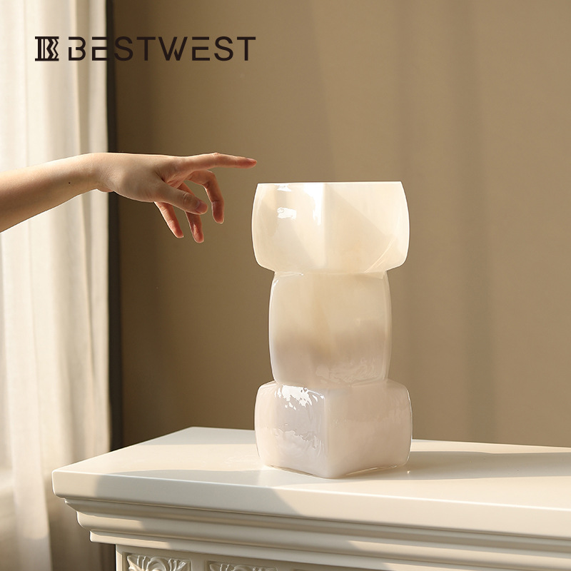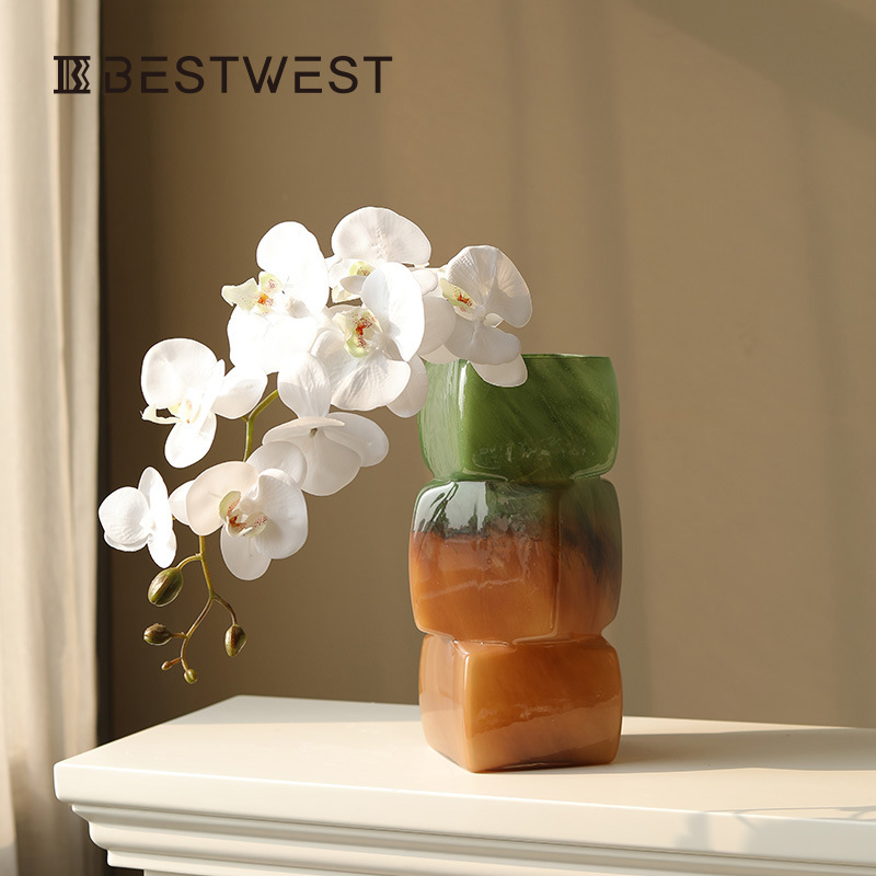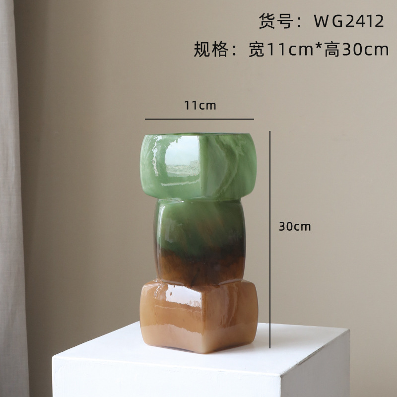Винтажная стеклянная ваза с легкой роскошью и высококачественным ощущением, подходящая для гостиной и обеденного стола, сосуд для цветочной композиции в водной культуре с изысканным дизайном и нишевым стилем.