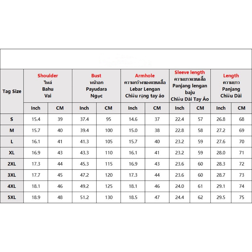 S; M; L; XL; 2XL; 3XL; 4XL; 5XL