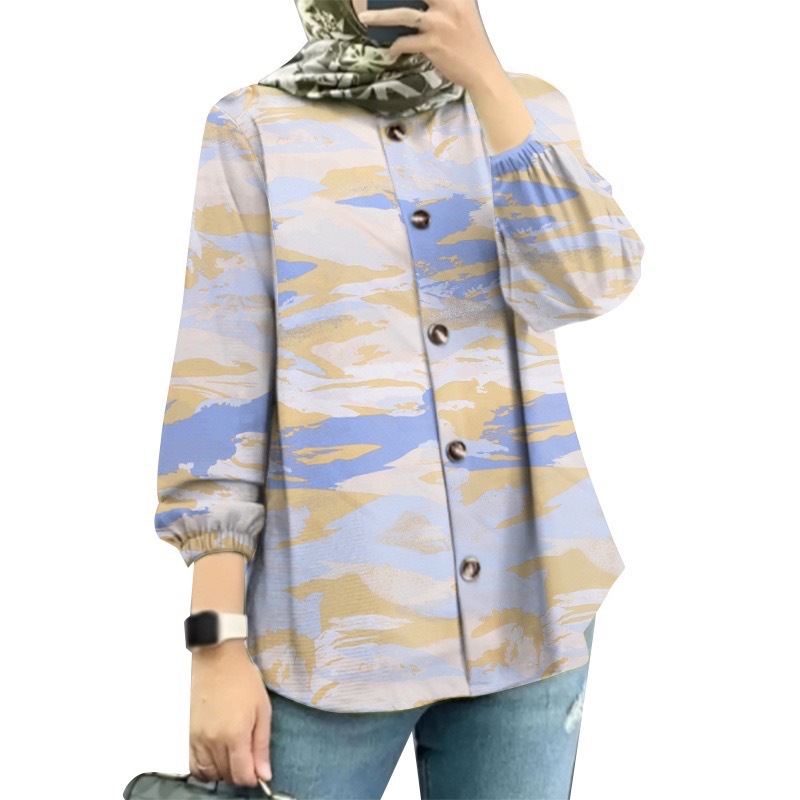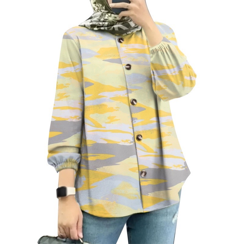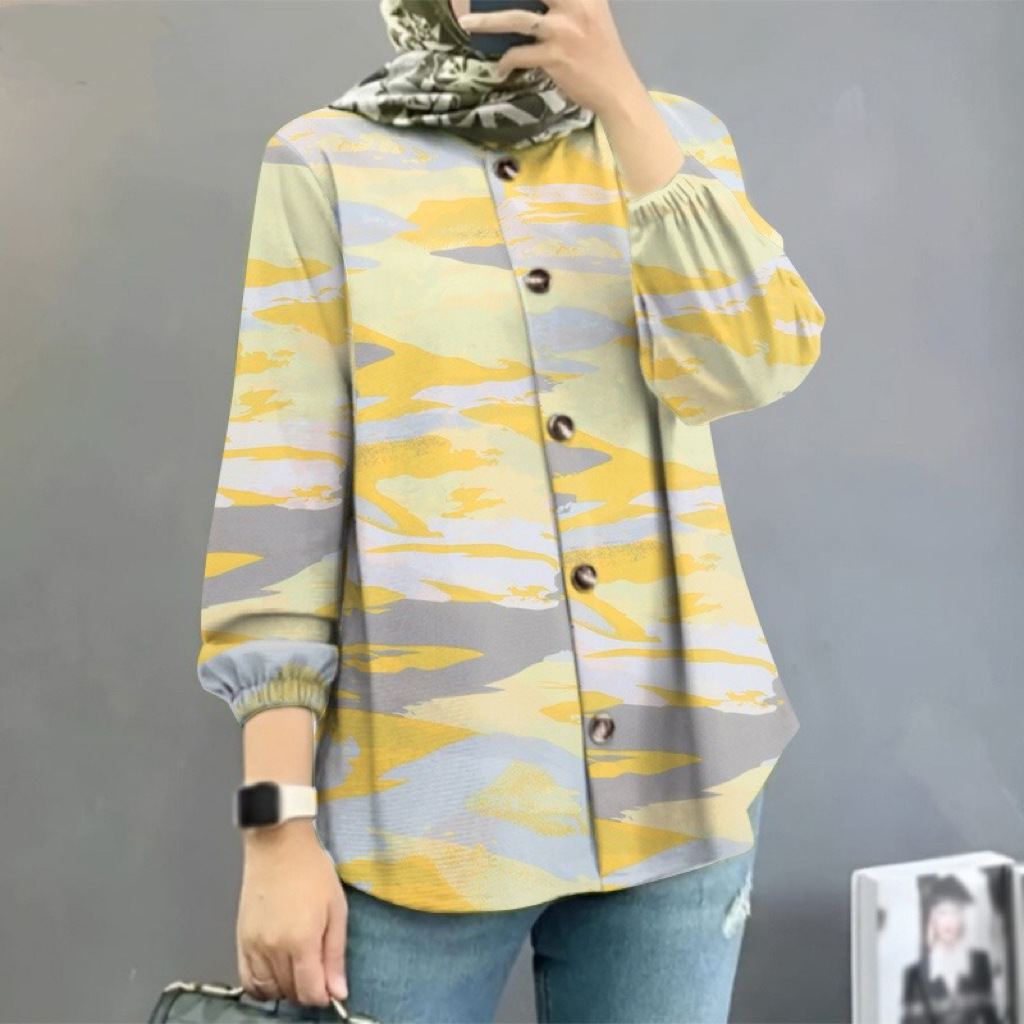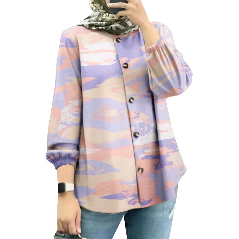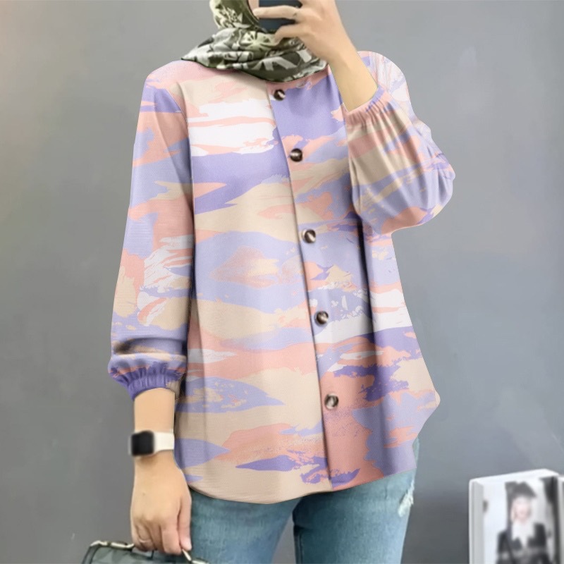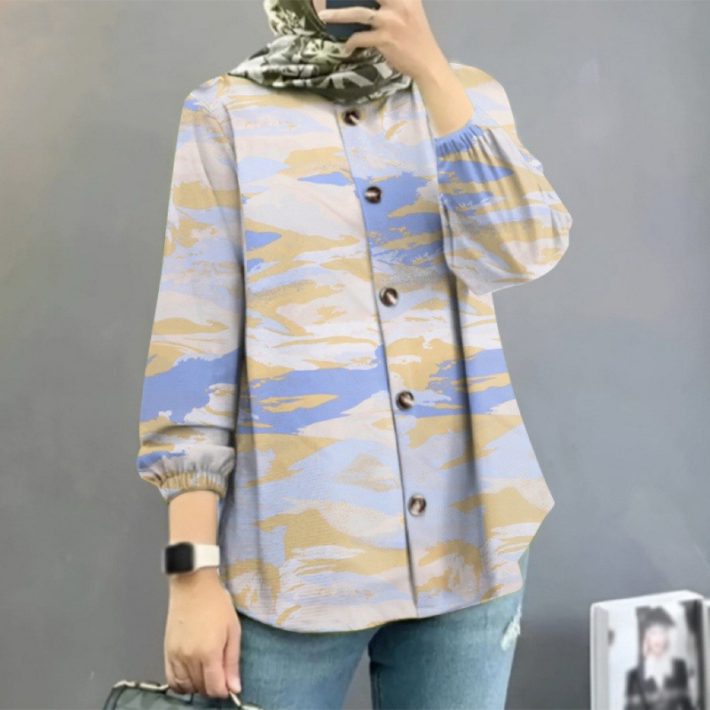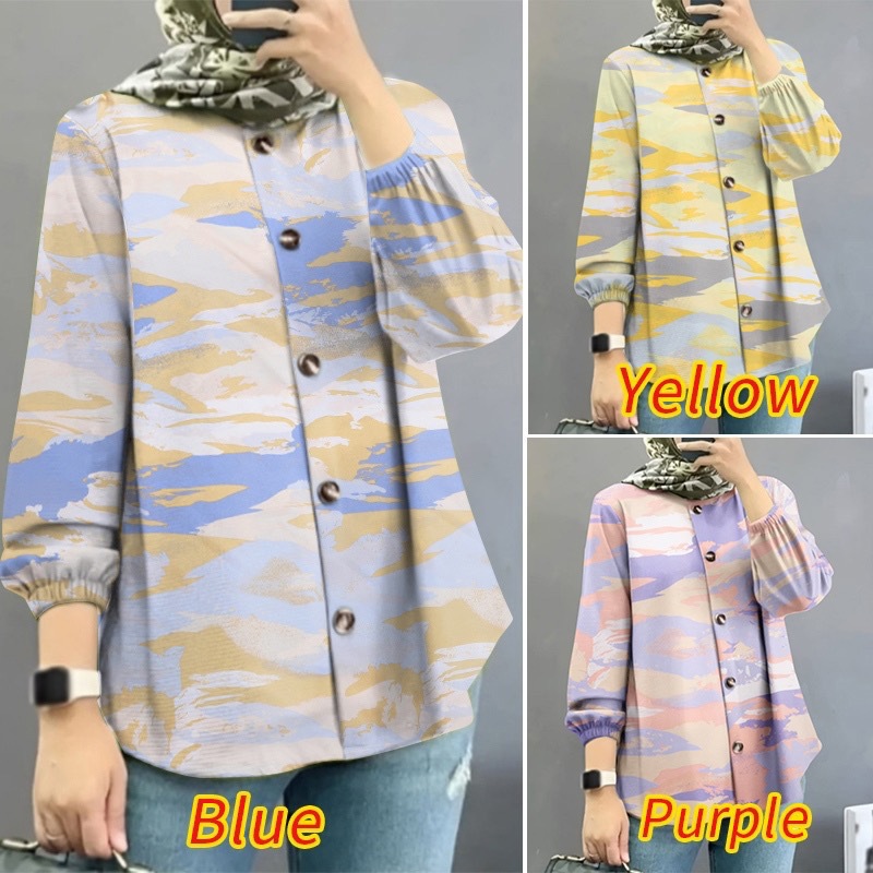 Кросс-бордерная женская мусульманская рубашка с цветочным принтом Amazon Ближний Восток Малайзия 2024, модные пышные рукава, оптовая партия от производителя