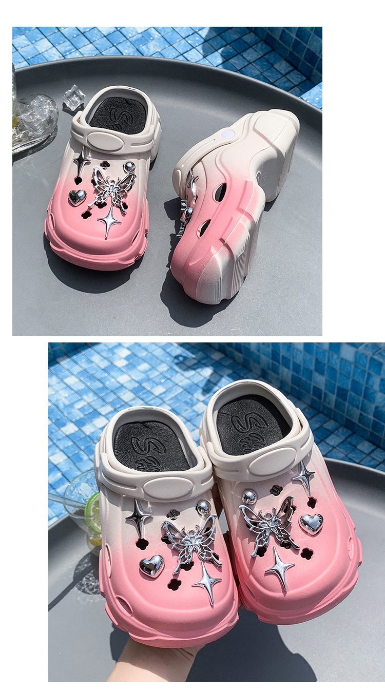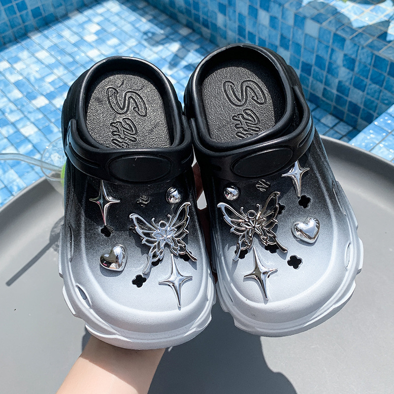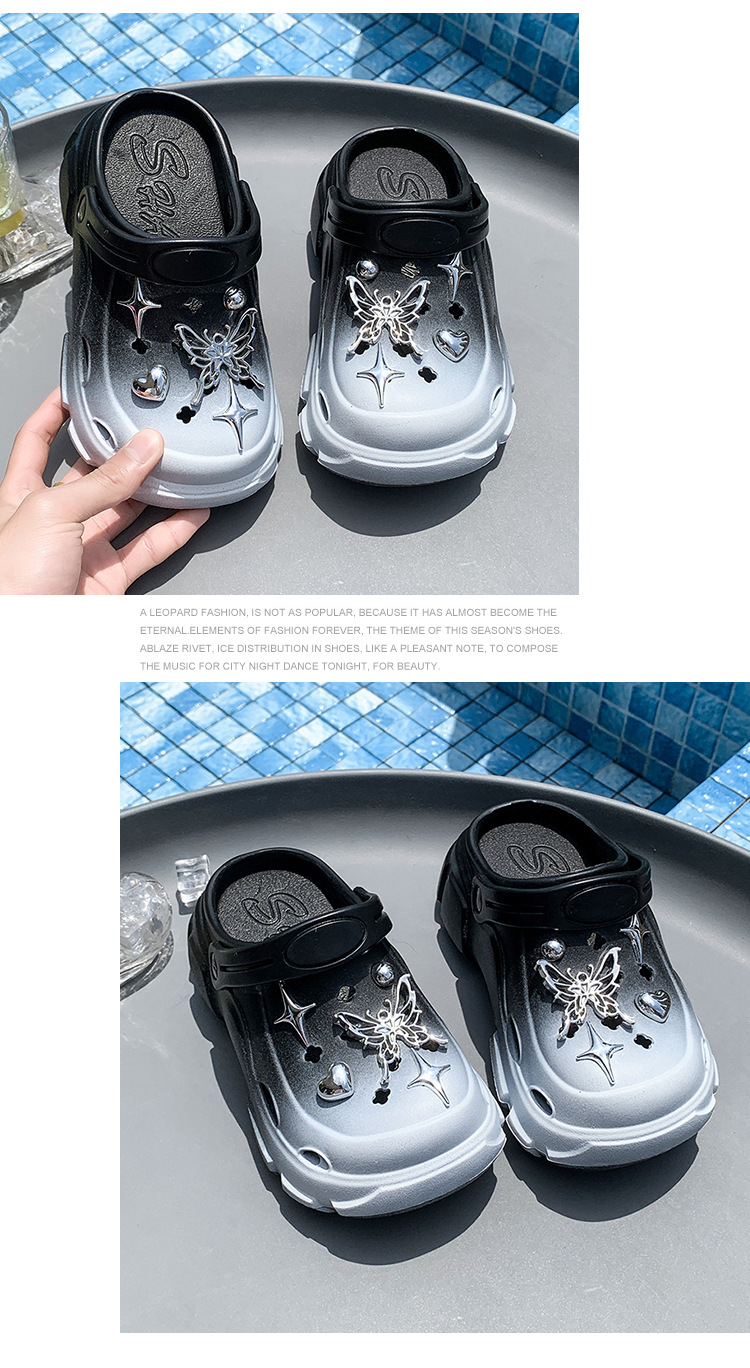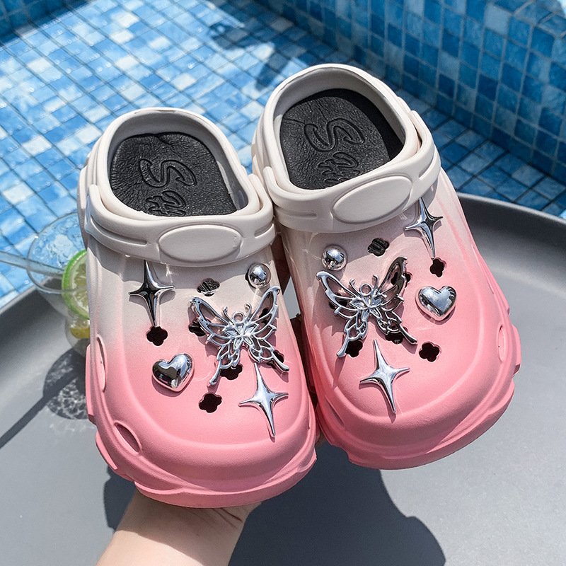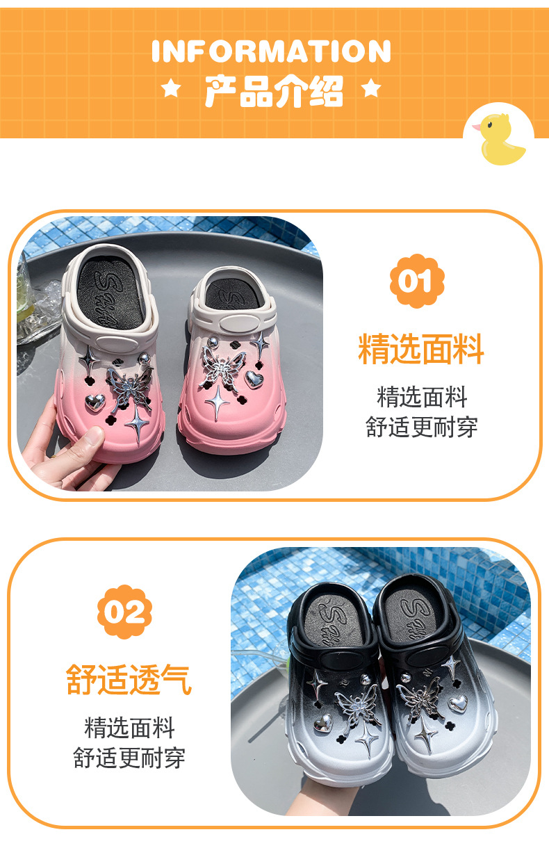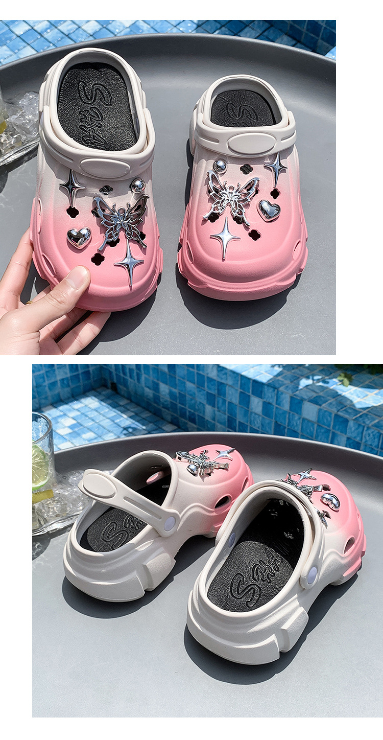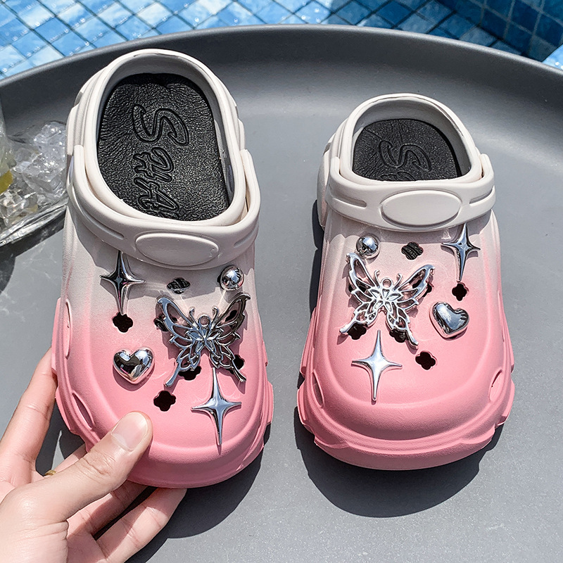 Дети 2025 лето новый градиент дикие мужчины и женщины детские тапочки серебряная бабочка звезды дырочная обувь нескользкие сандалии