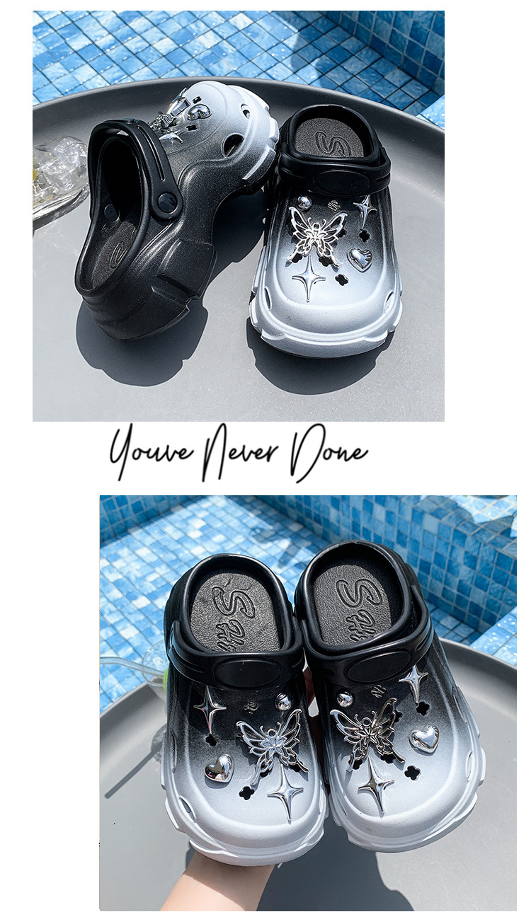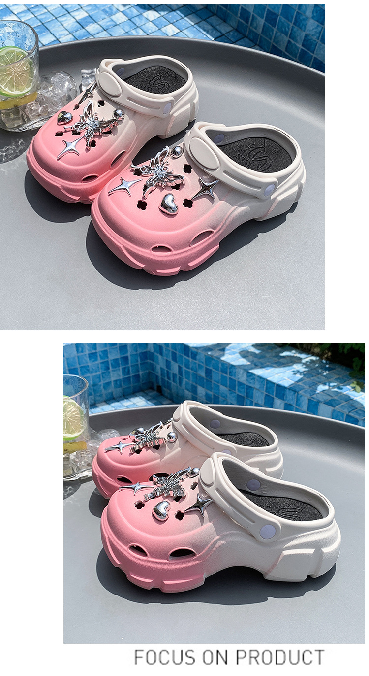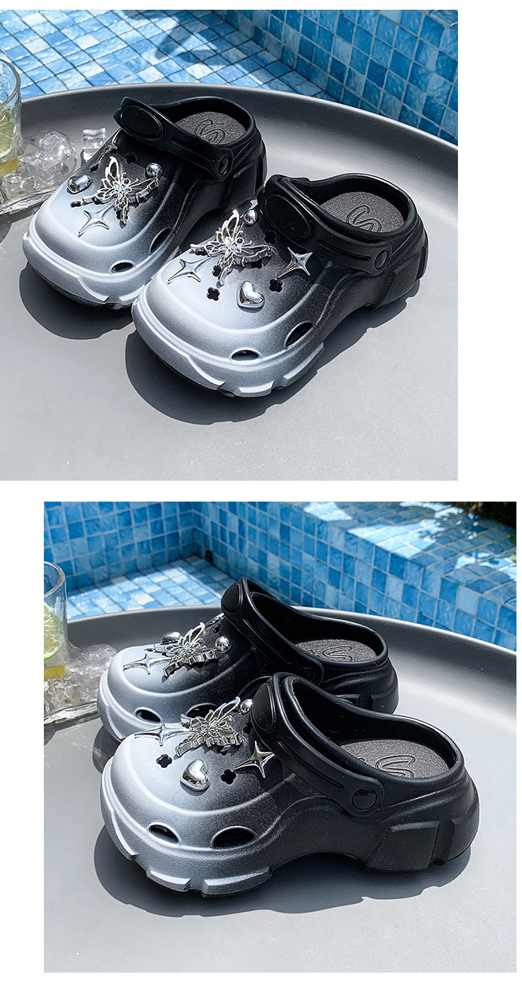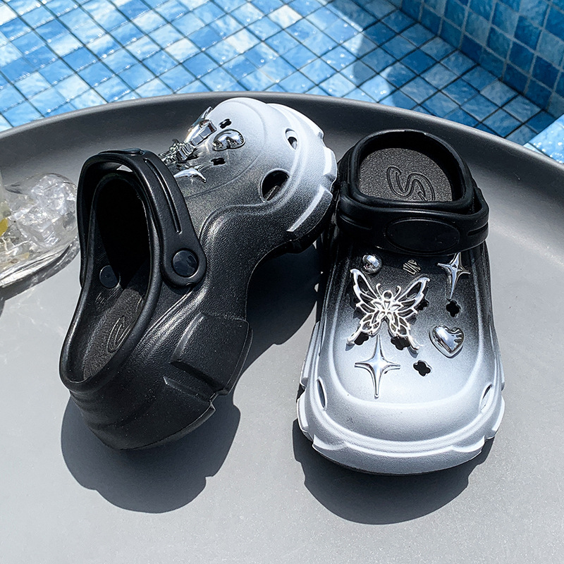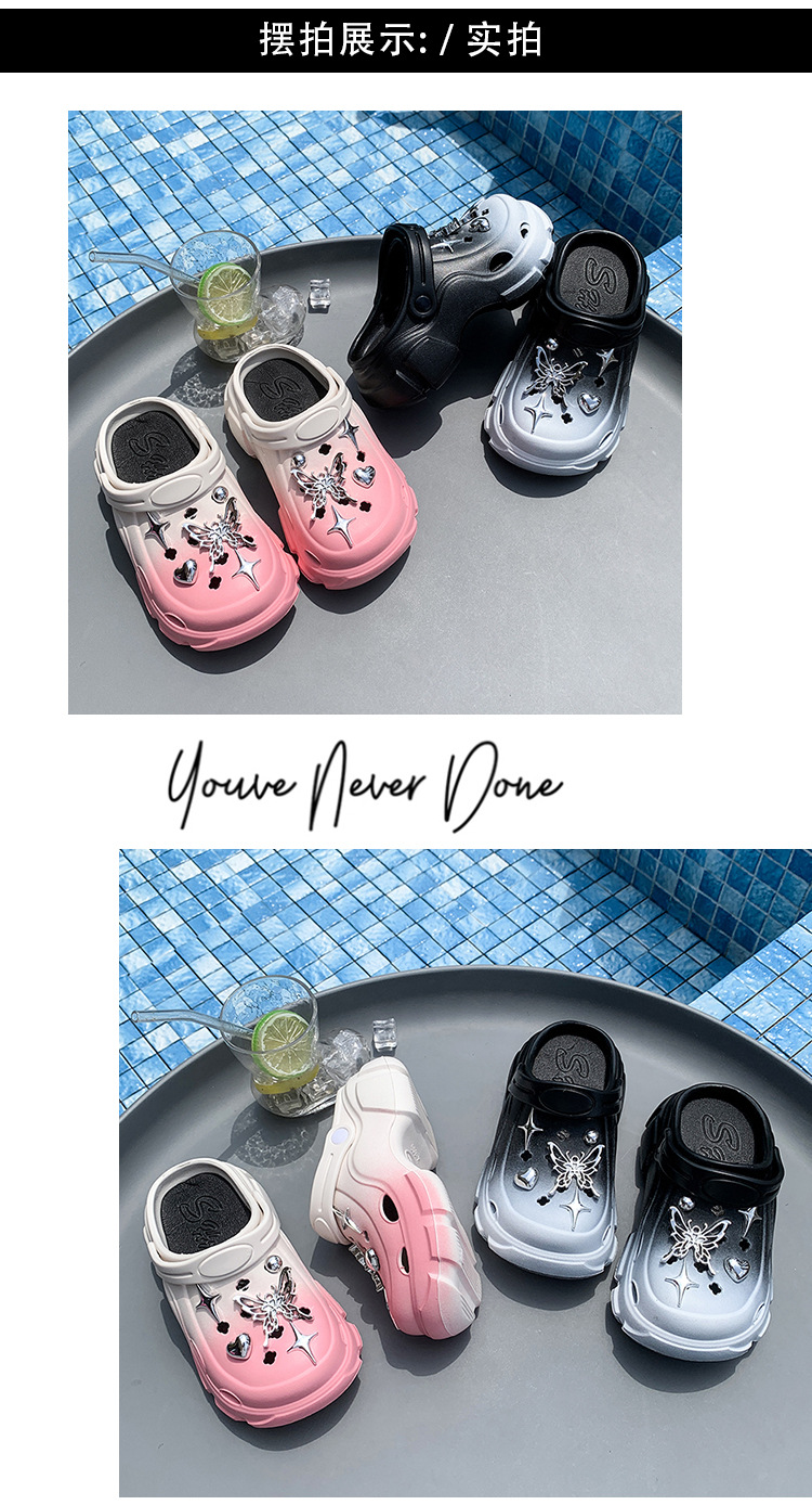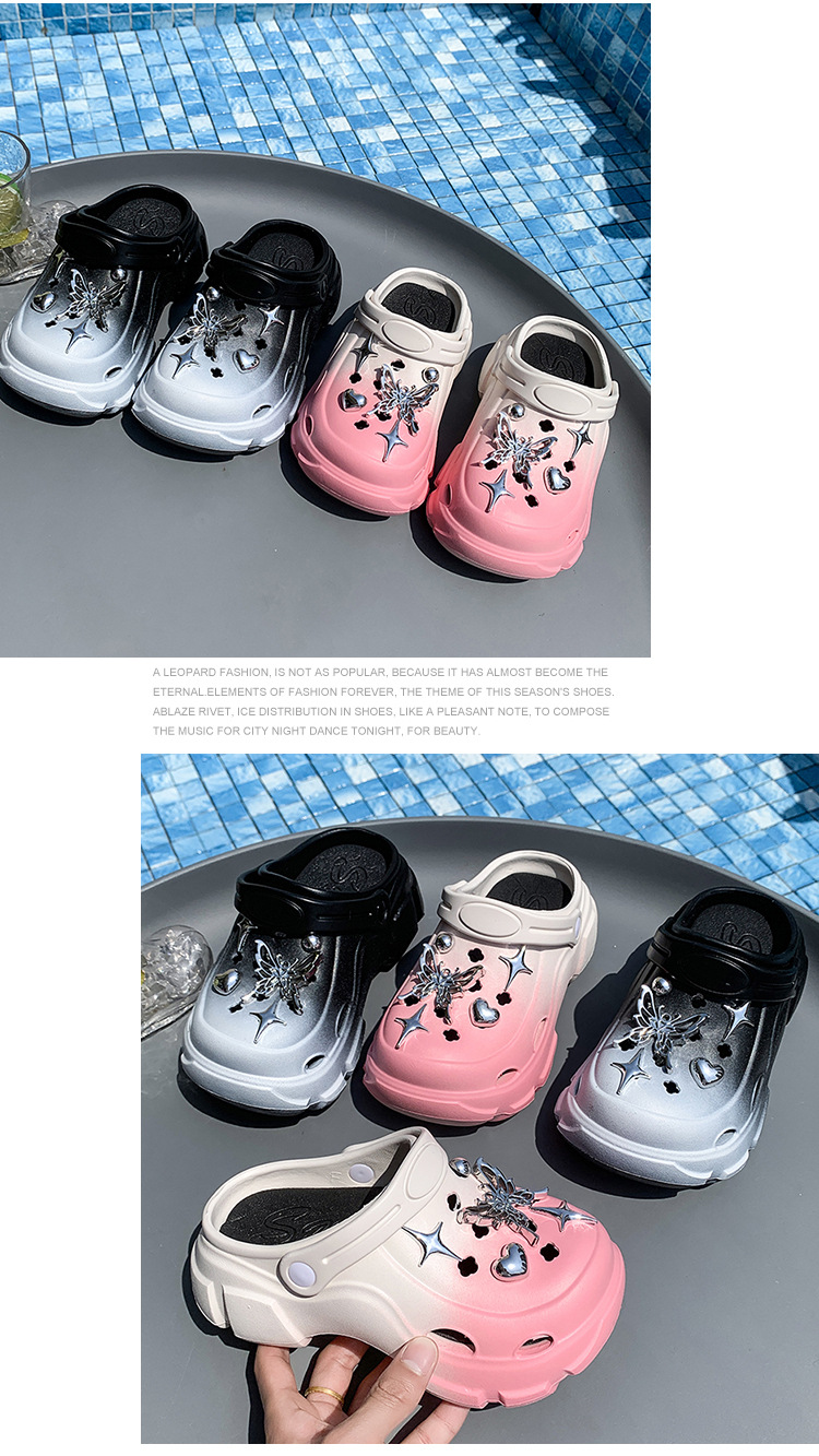 Дети 2025 лето новый градиент дикие мужчины и женщины детские тапочки серебряная бабочка звезды дырочная обувь нескользкие сандалии