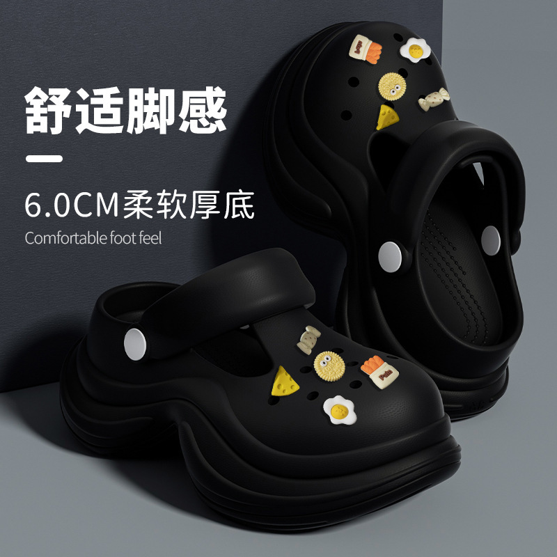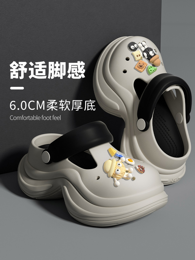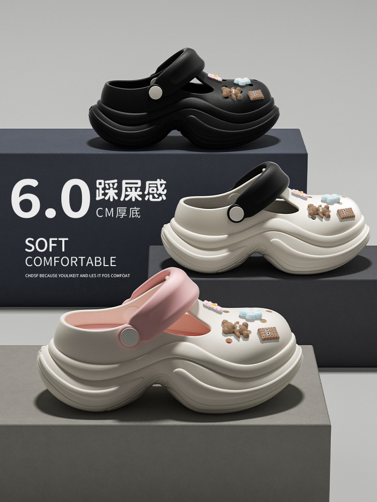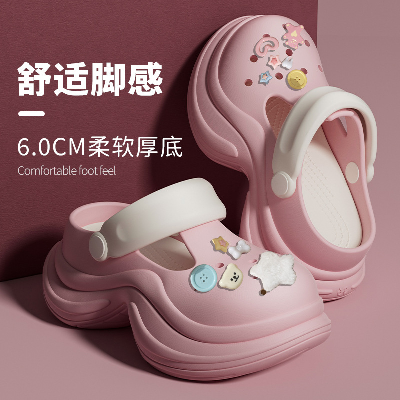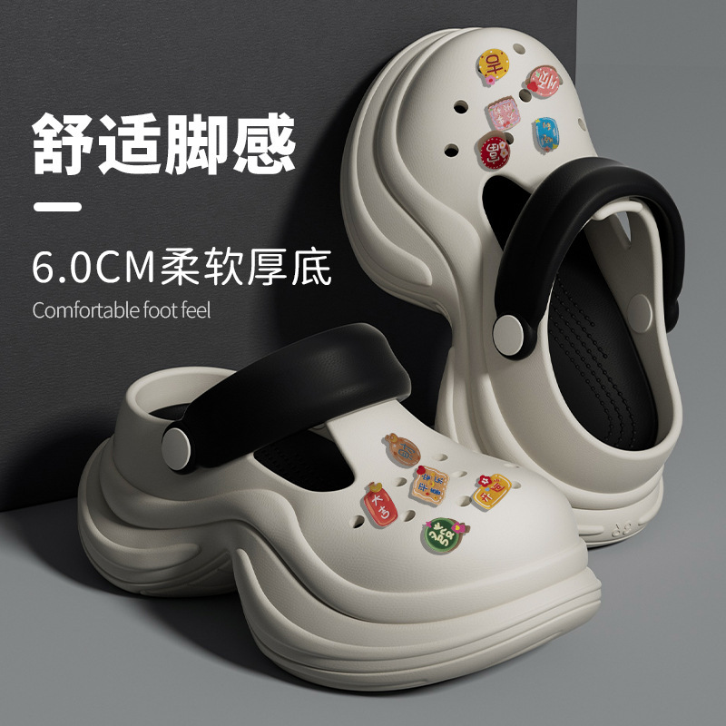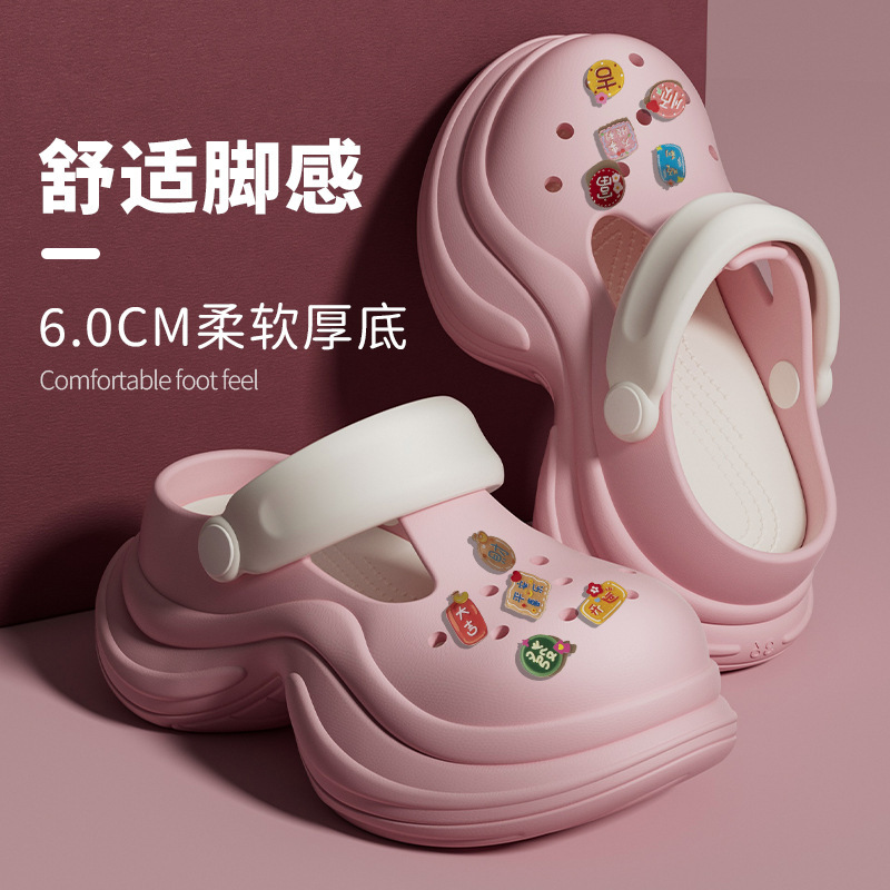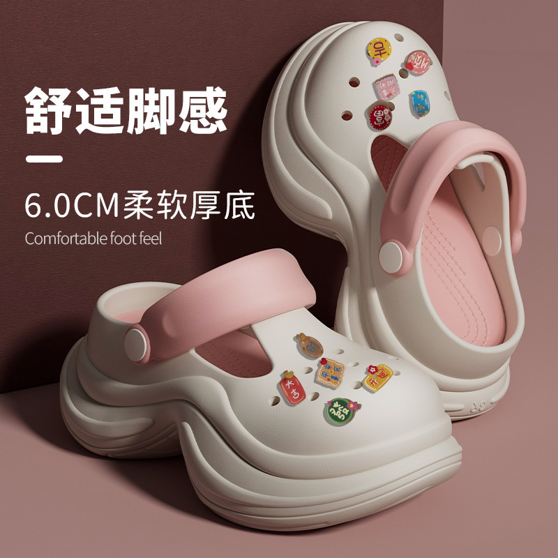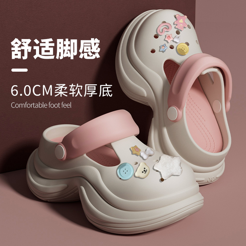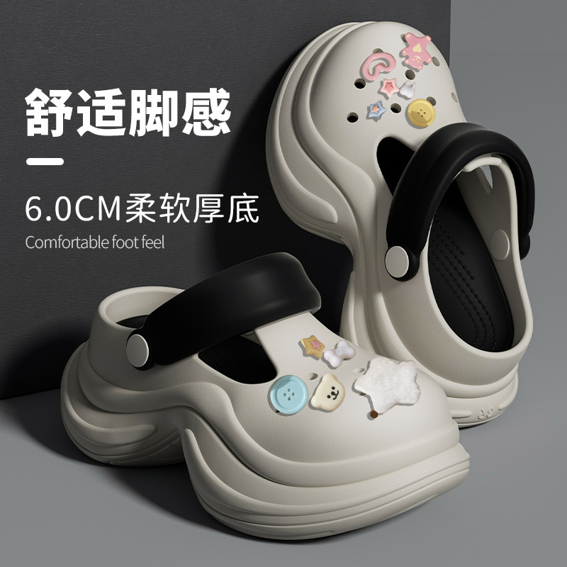 Пещерные туфли женские летние натурные толстые подошвы, чтобы увеличить нескользящие и вонючие пляжные сандалии 2025 новый аксессуар сандалии