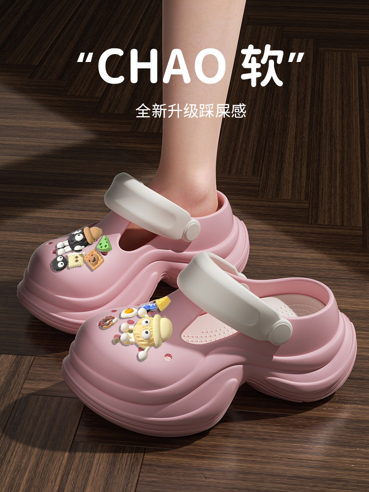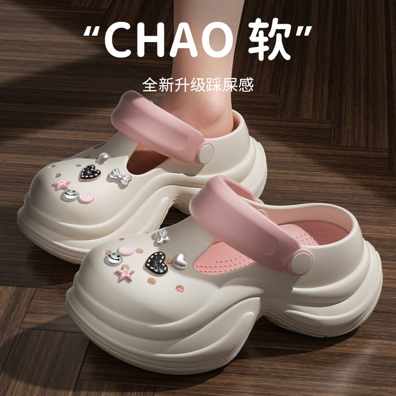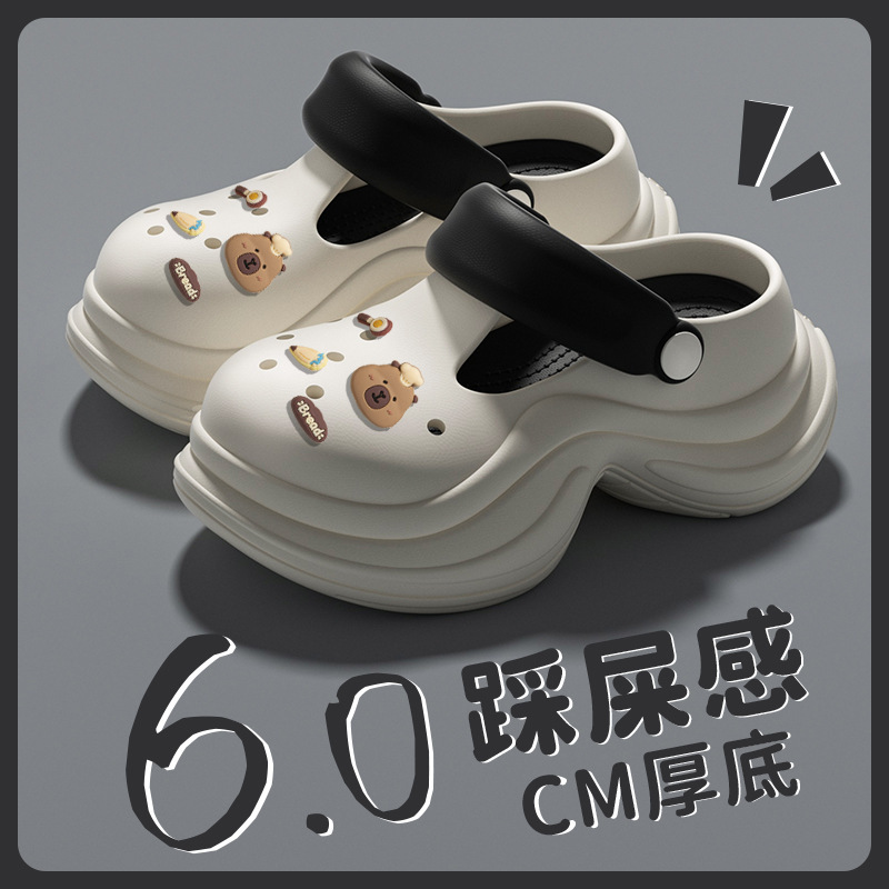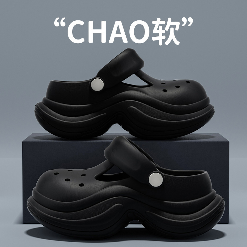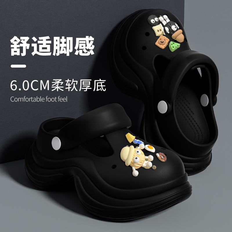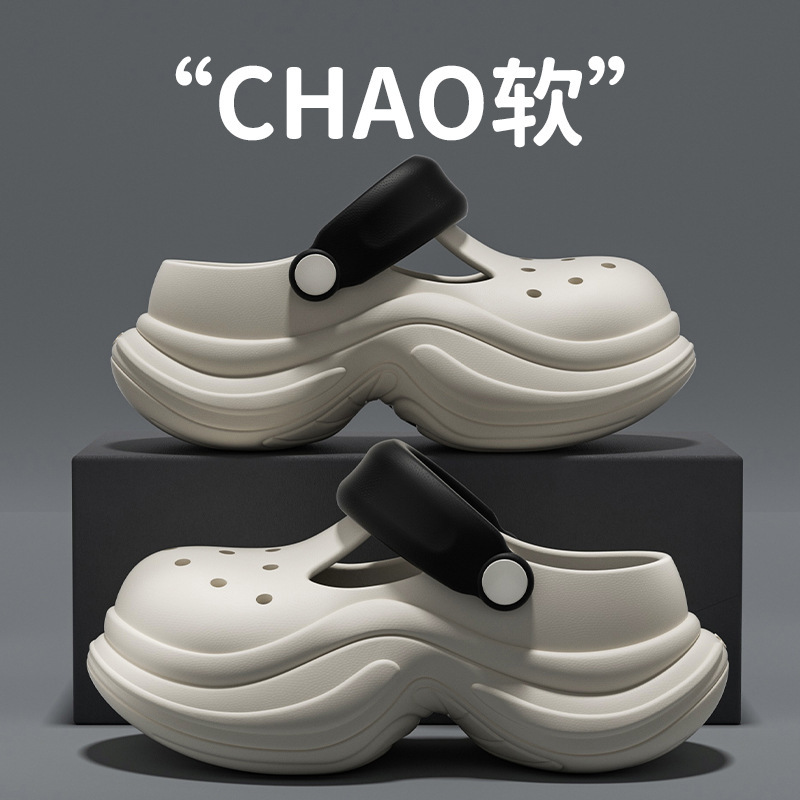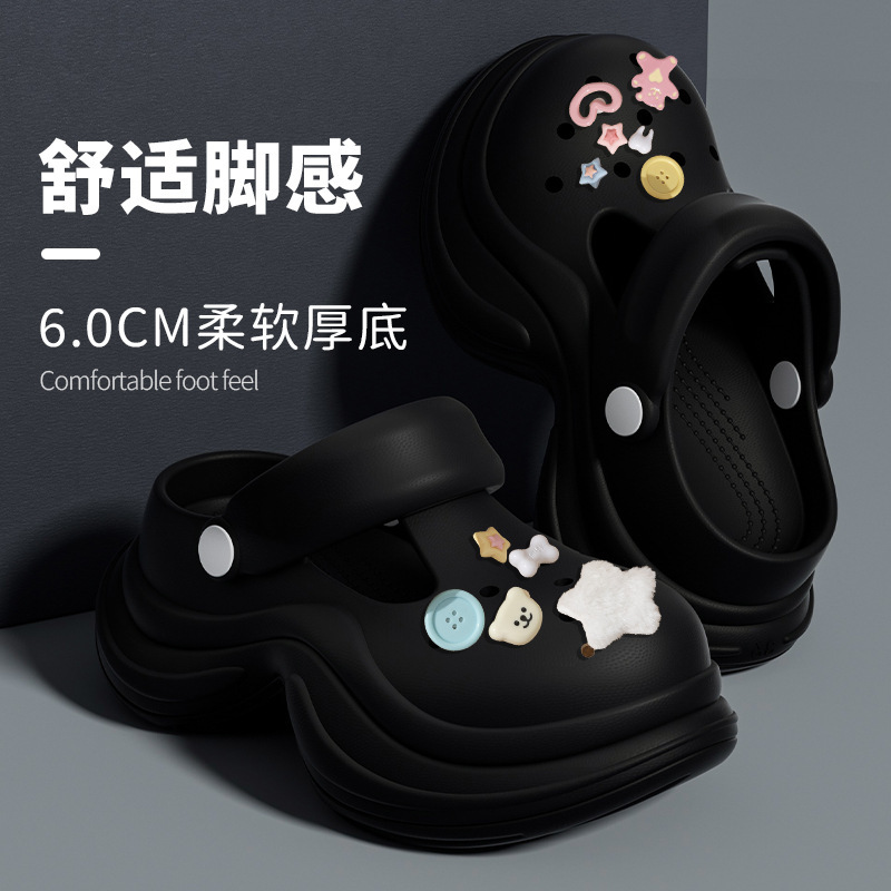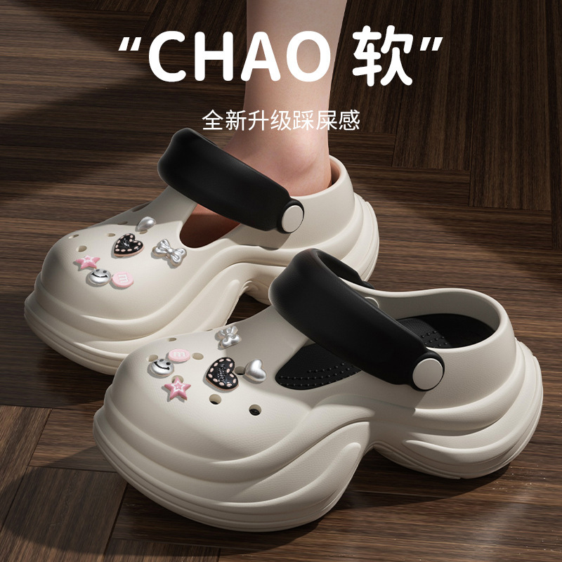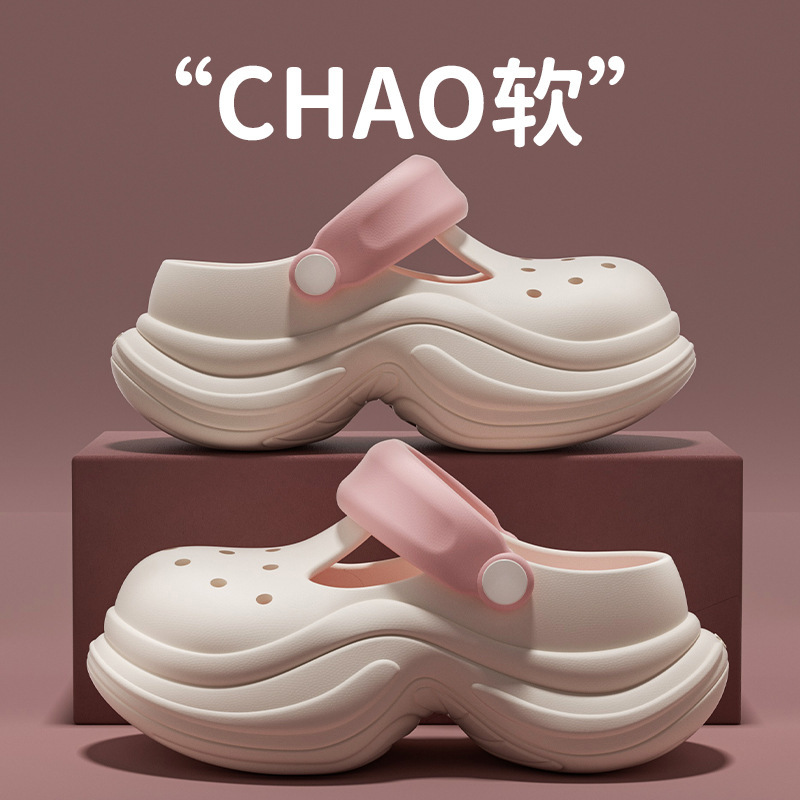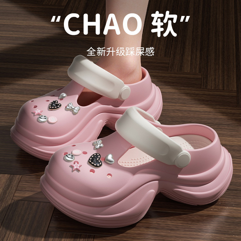 Пещерные туфли женские летние натурные толстые подошвы, чтобы увеличить нескользящие и вонючие пляжные сандалии 2025 новый аксессуар сандалии