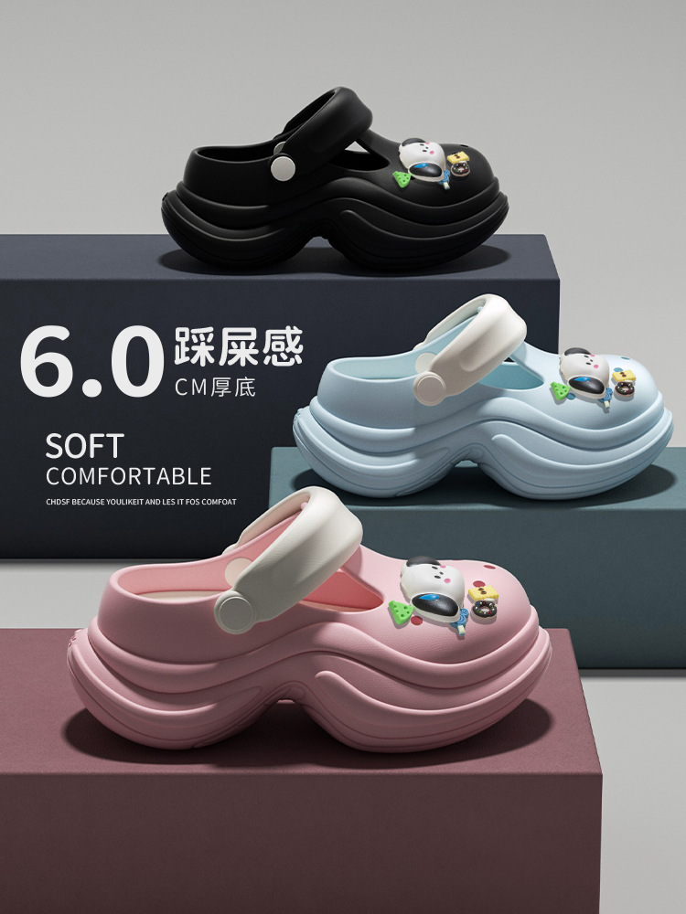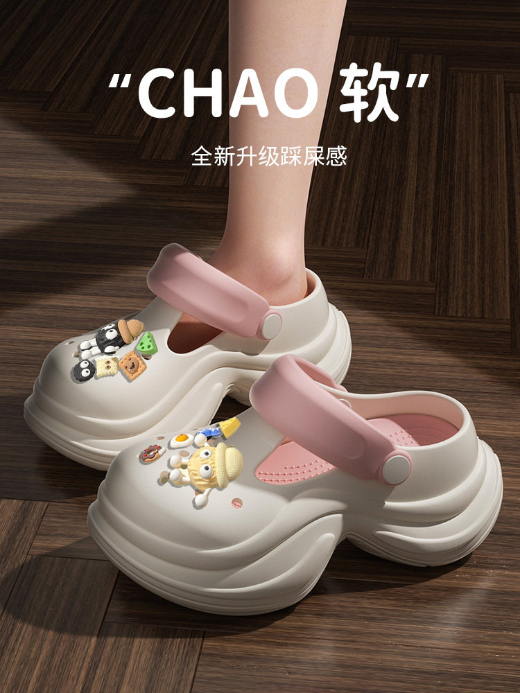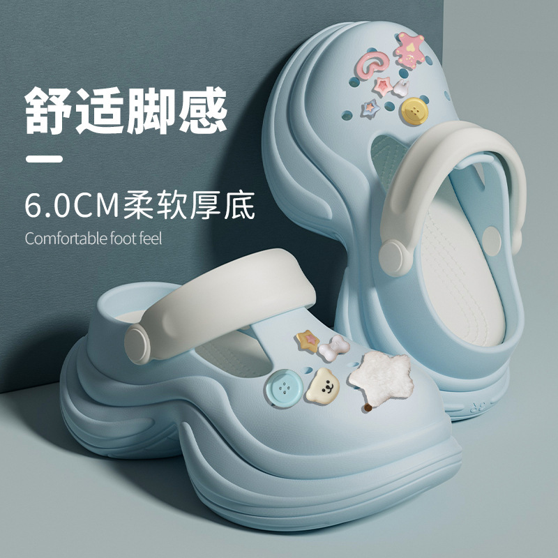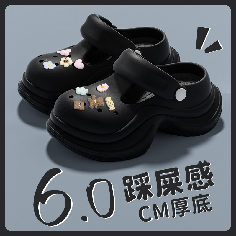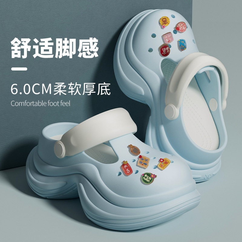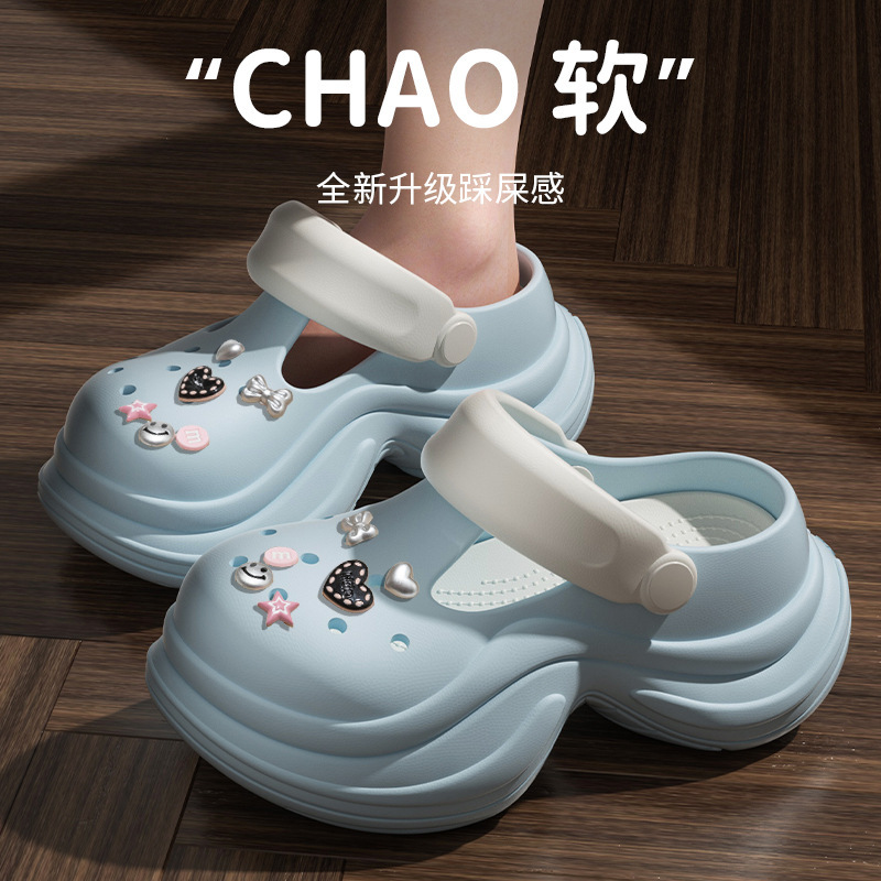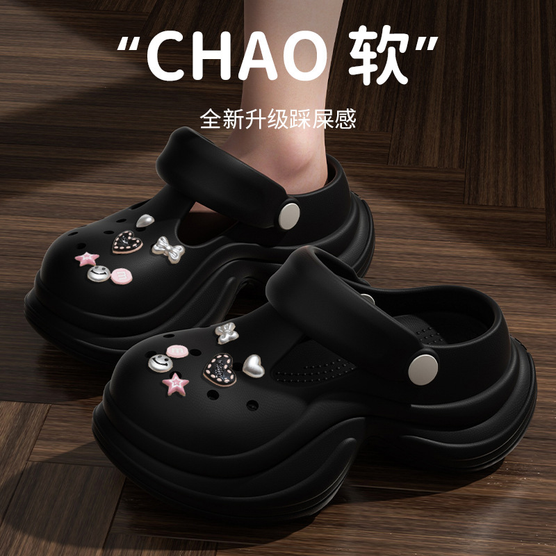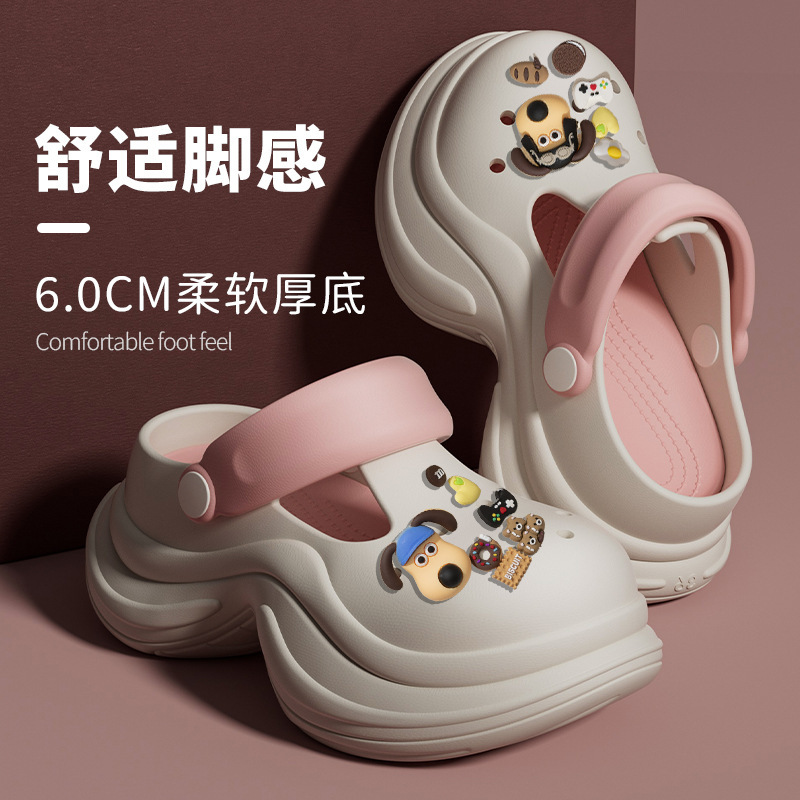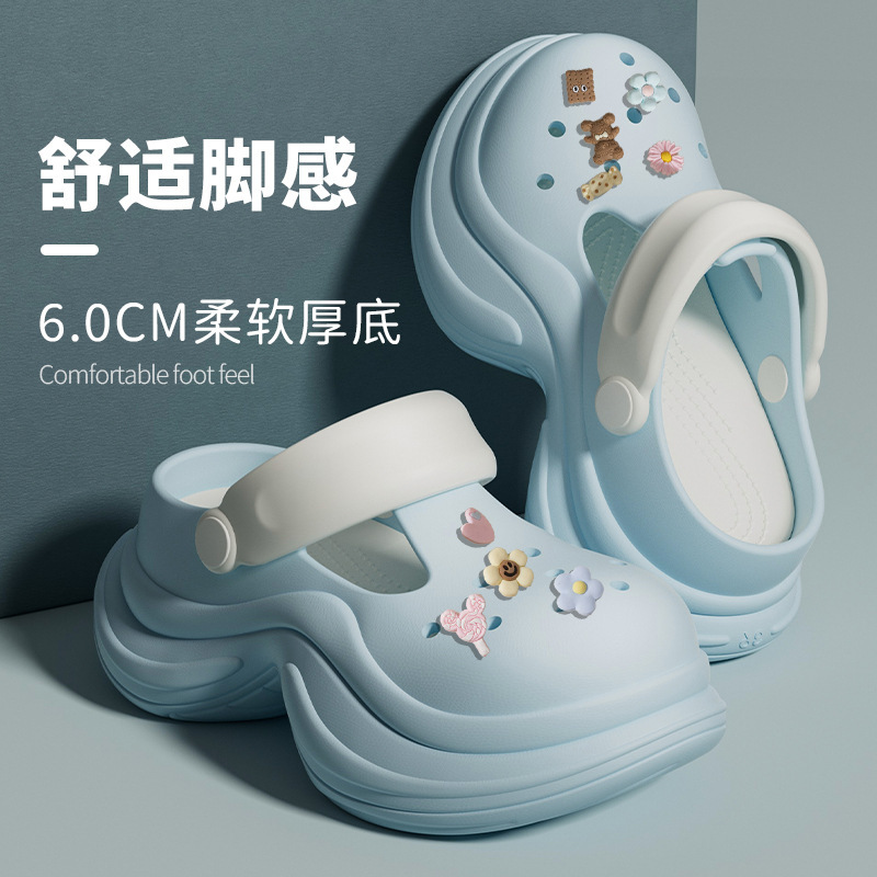 Пещерные туфли женские летние натурные толстые подошвы, чтобы увеличить нескользящие и вонючие пляжные сандалии 2025 новый аксессуар сандалии