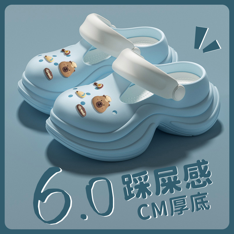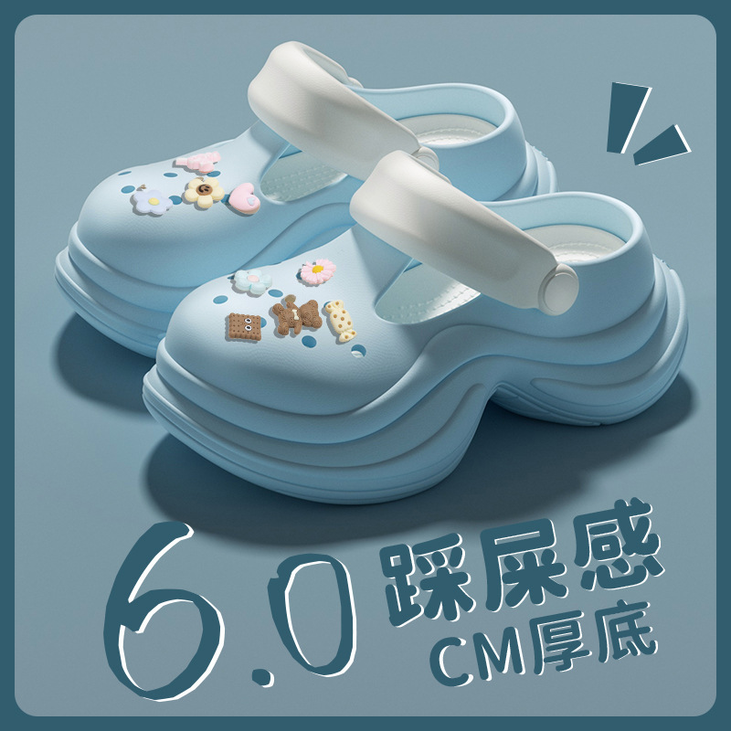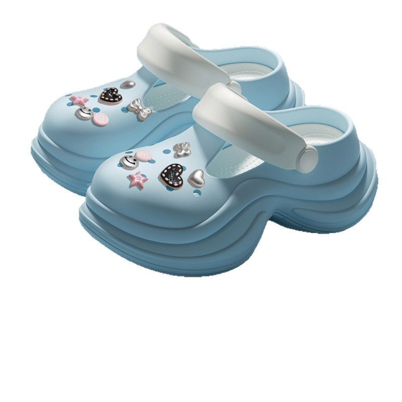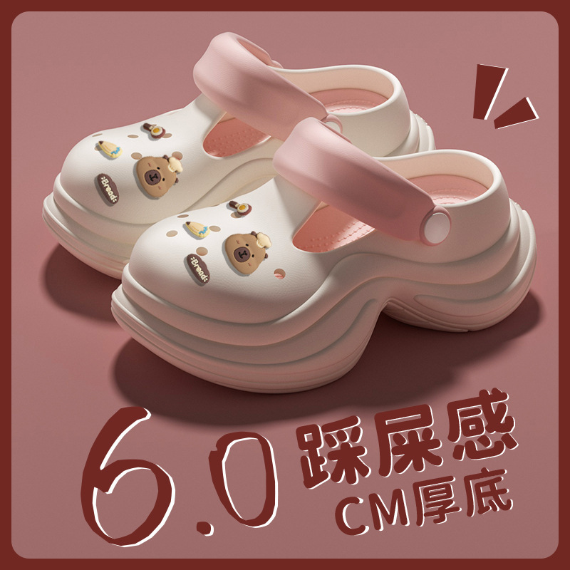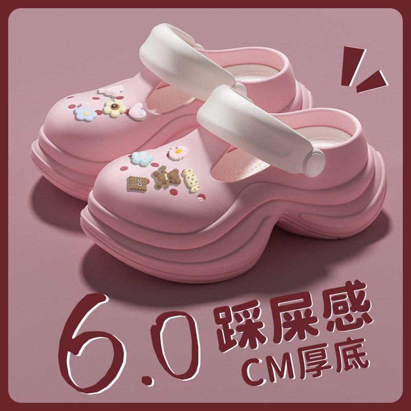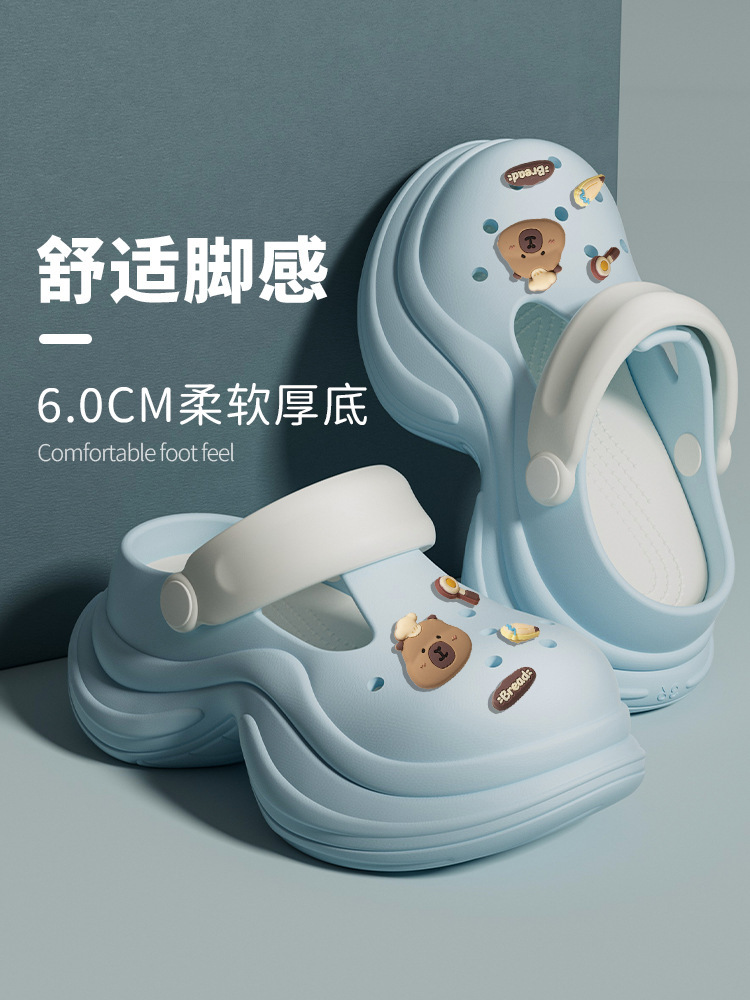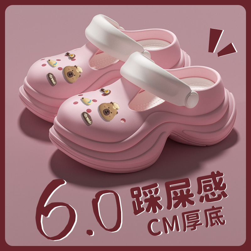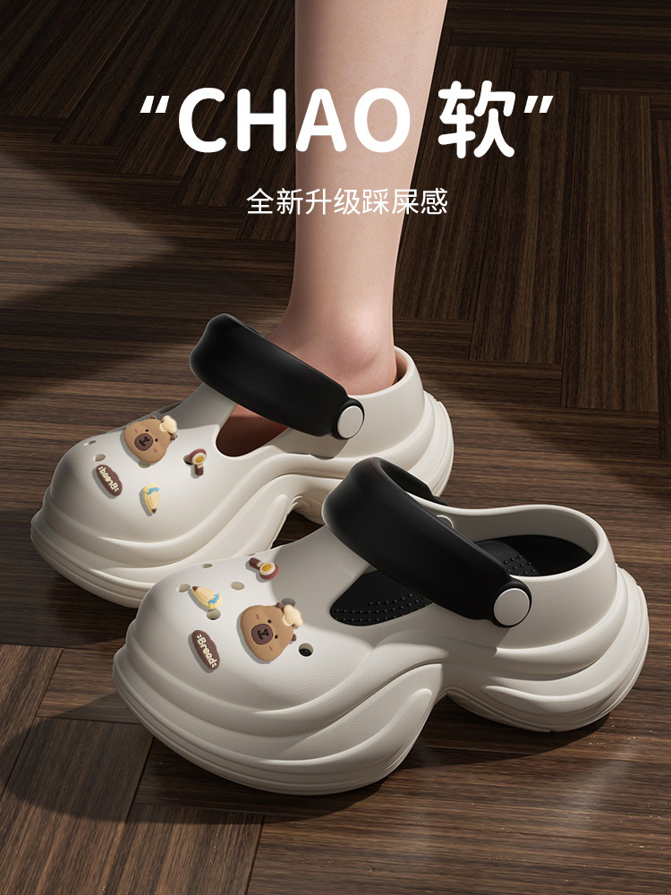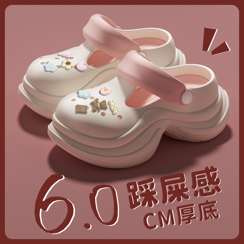 Пещерные туфли женские летние натурные толстые подошвы, чтобы увеличить нескользящие и вонючие пляжные сандалии 2025 новый аксессуар сандалии