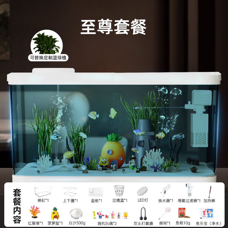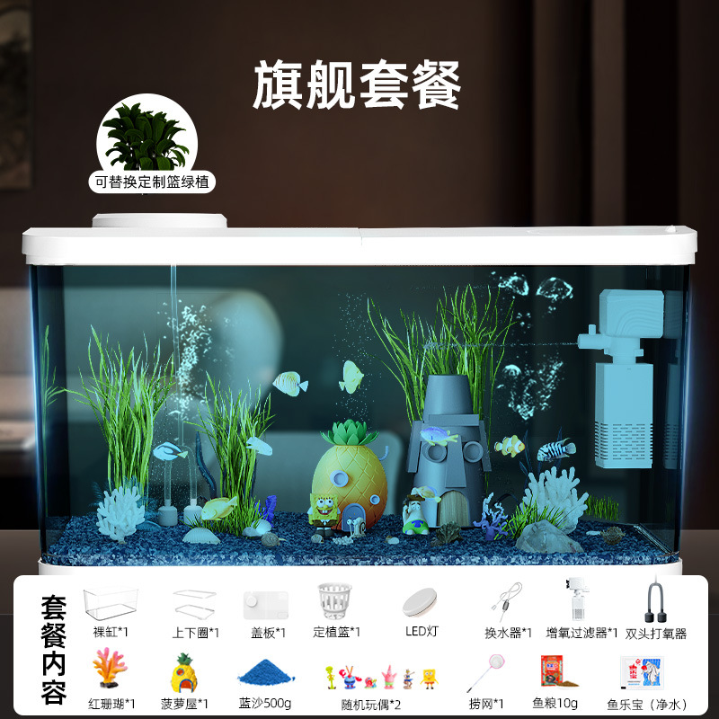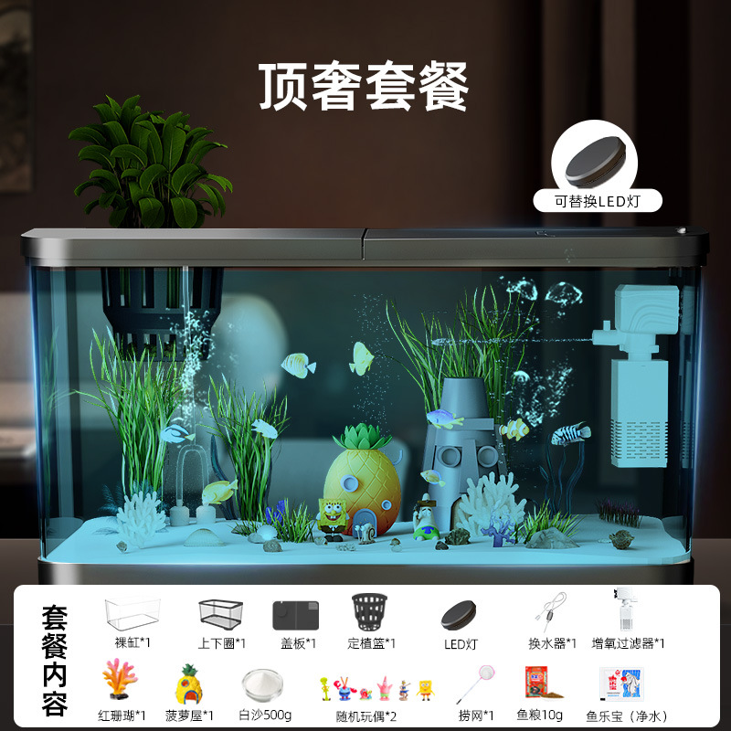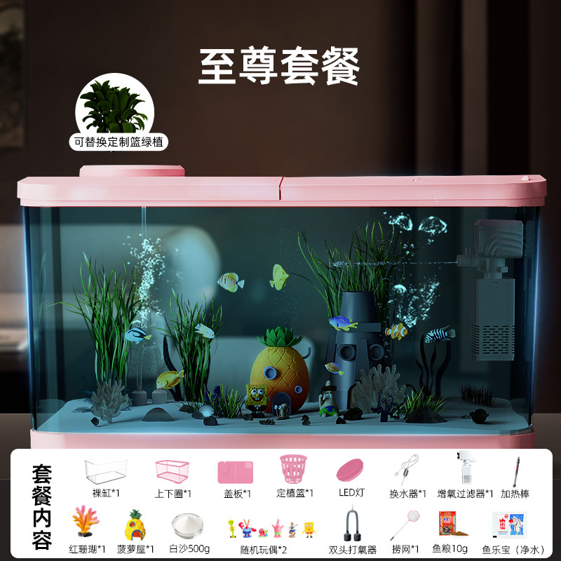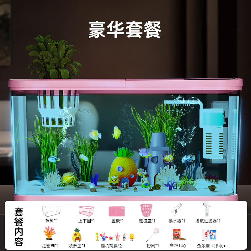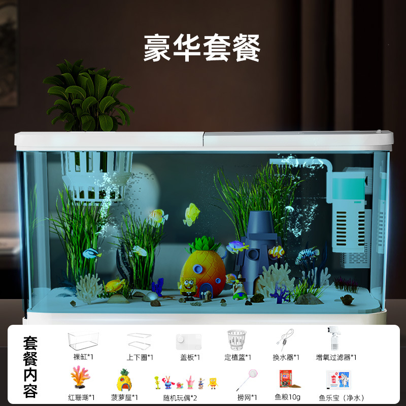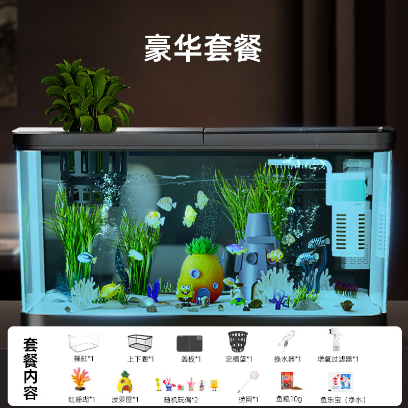 Аквариум с фильтрацией и оксигенацией, все в одном, экологический ландшафтный дизайн, небольшая гостиная, бытовой акриловый настольный декоративный аквариум с золотыми рыбками