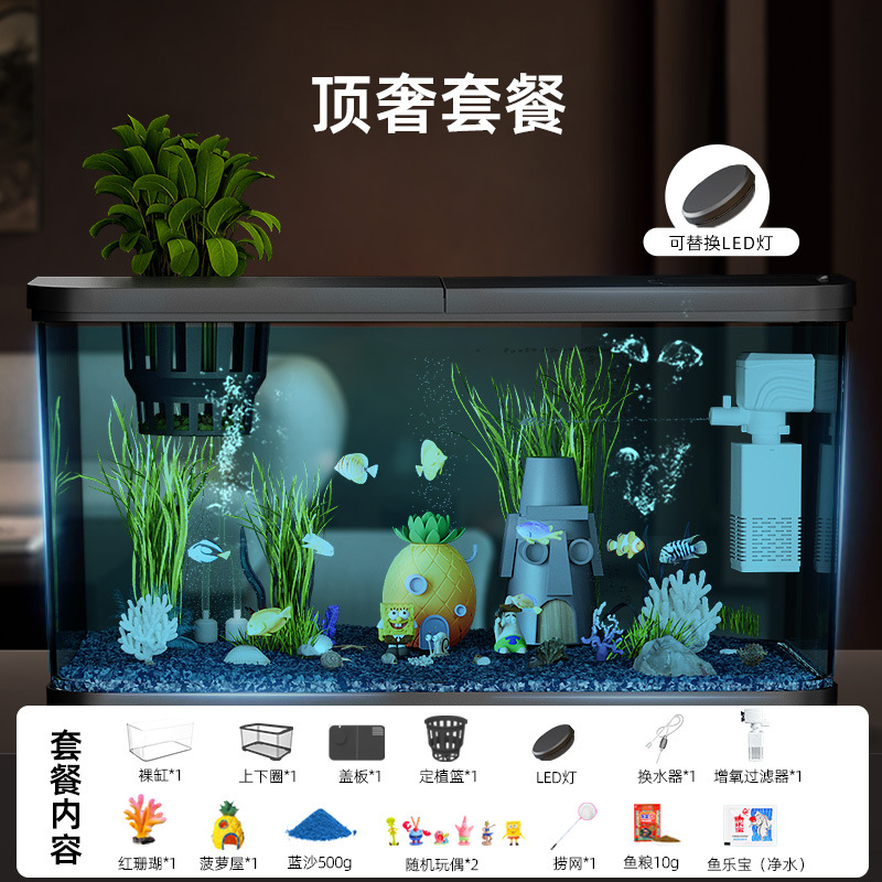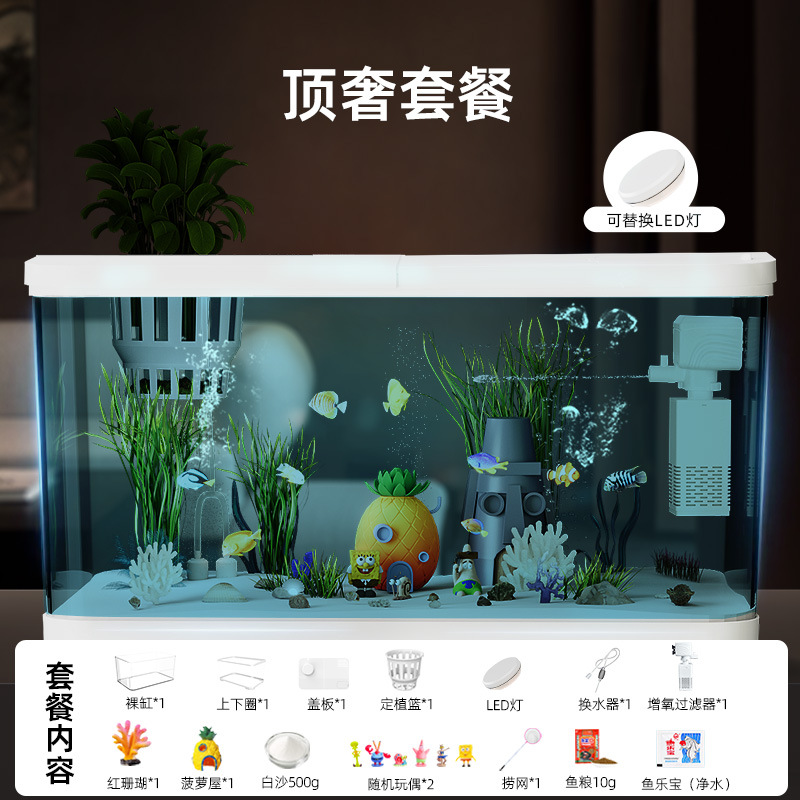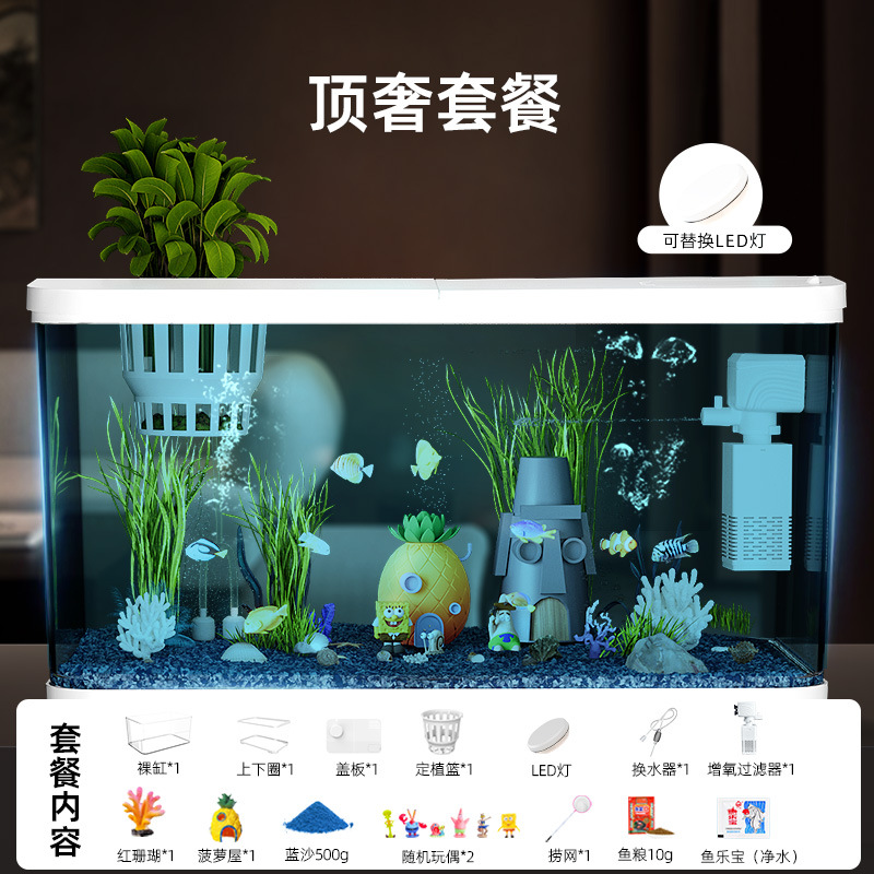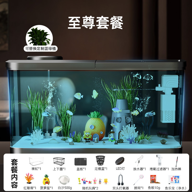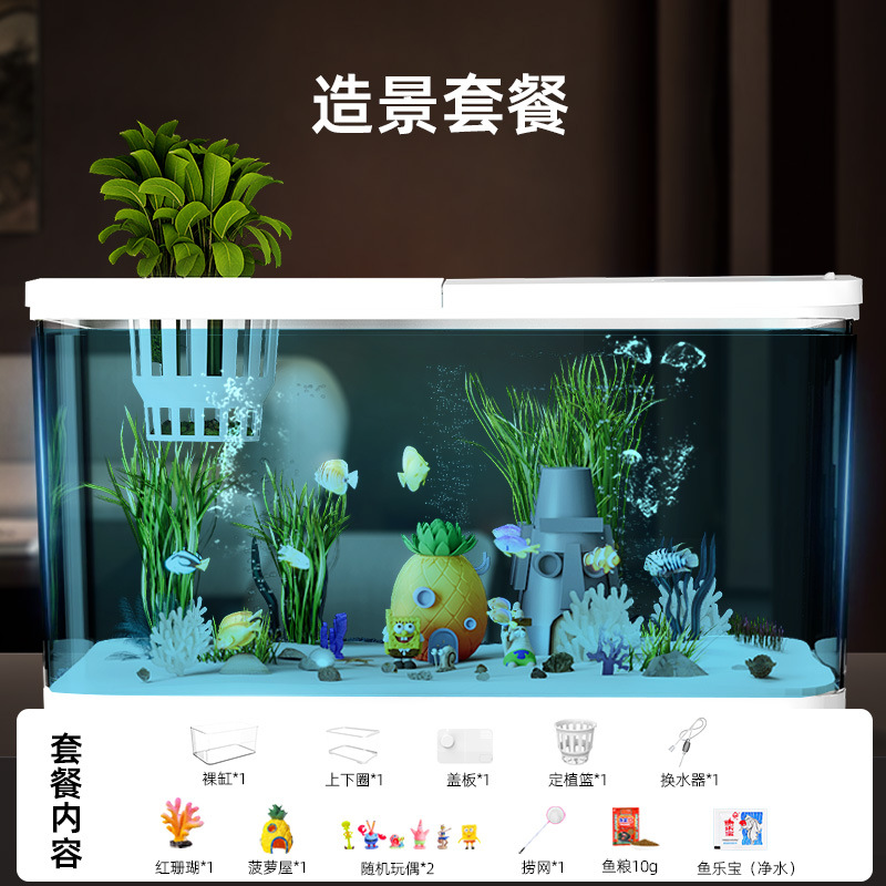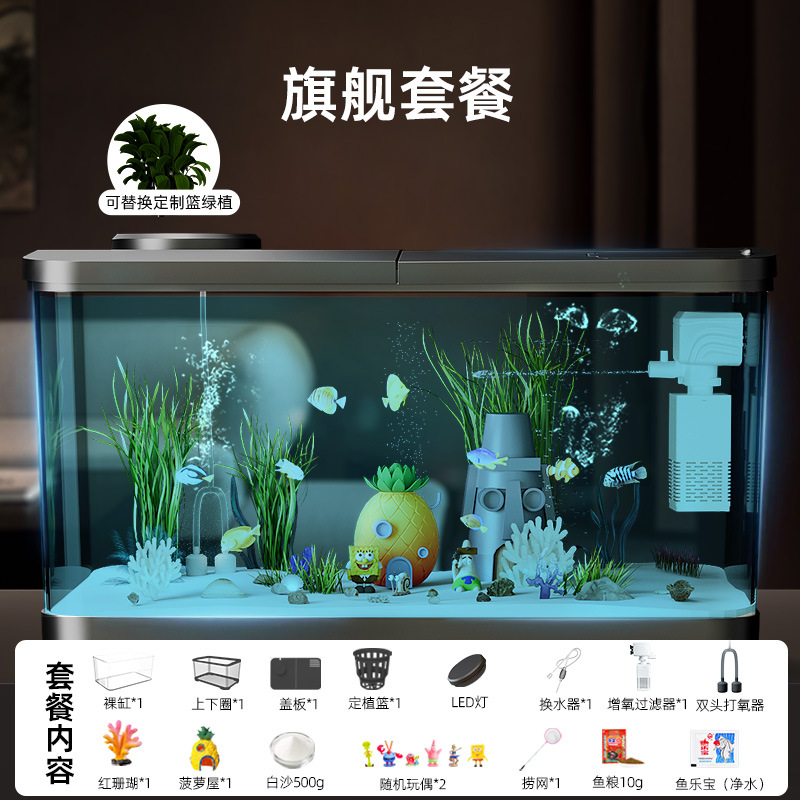 Аквариум с фильтрацией и оксигенацией, все в одном, экологический ландшафтный дизайн, небольшая гостиная, бытовой акриловый настольный декоративный аквариум с золотыми рыбками
