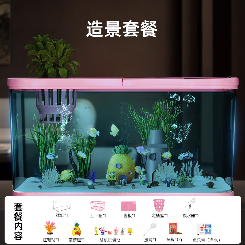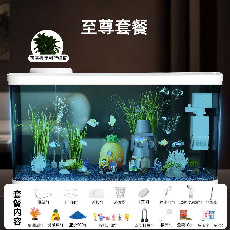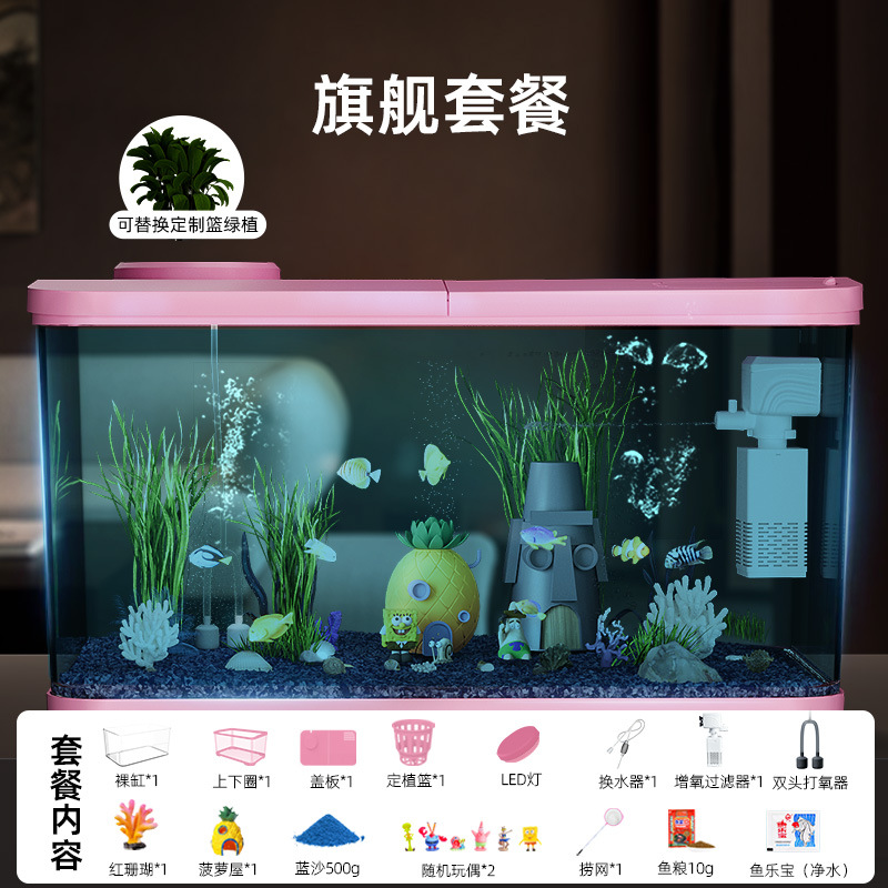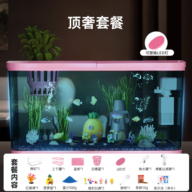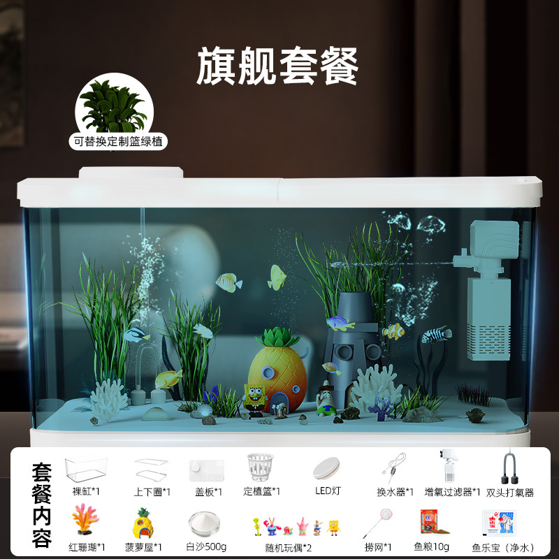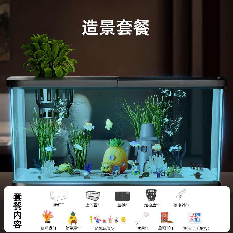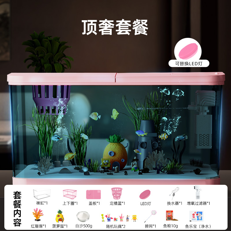 Аквариум с фильтрацией и оксигенацией, все в одном, экологический ландшафтный дизайн, небольшая гостиная, бытовой акриловый настольный декоративный аквариум с золотыми рыбками
