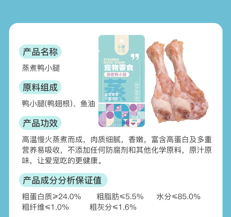 Куриная печень на пару 40г*1 упаковка; Куриная грудка на пару, 40 г*1 упаковка; Грудка утки на пару, 40 г*1 упаковка; Ломтики бонита на пару, 15 г*1 упаковка; Тушеная утиная ножка, 40 г * 1 упаковка