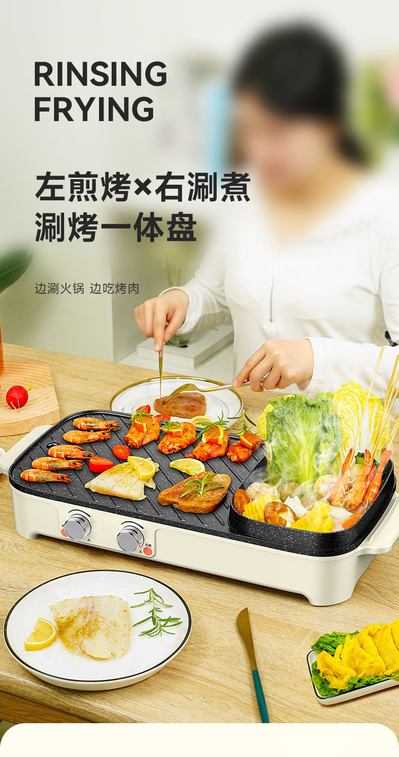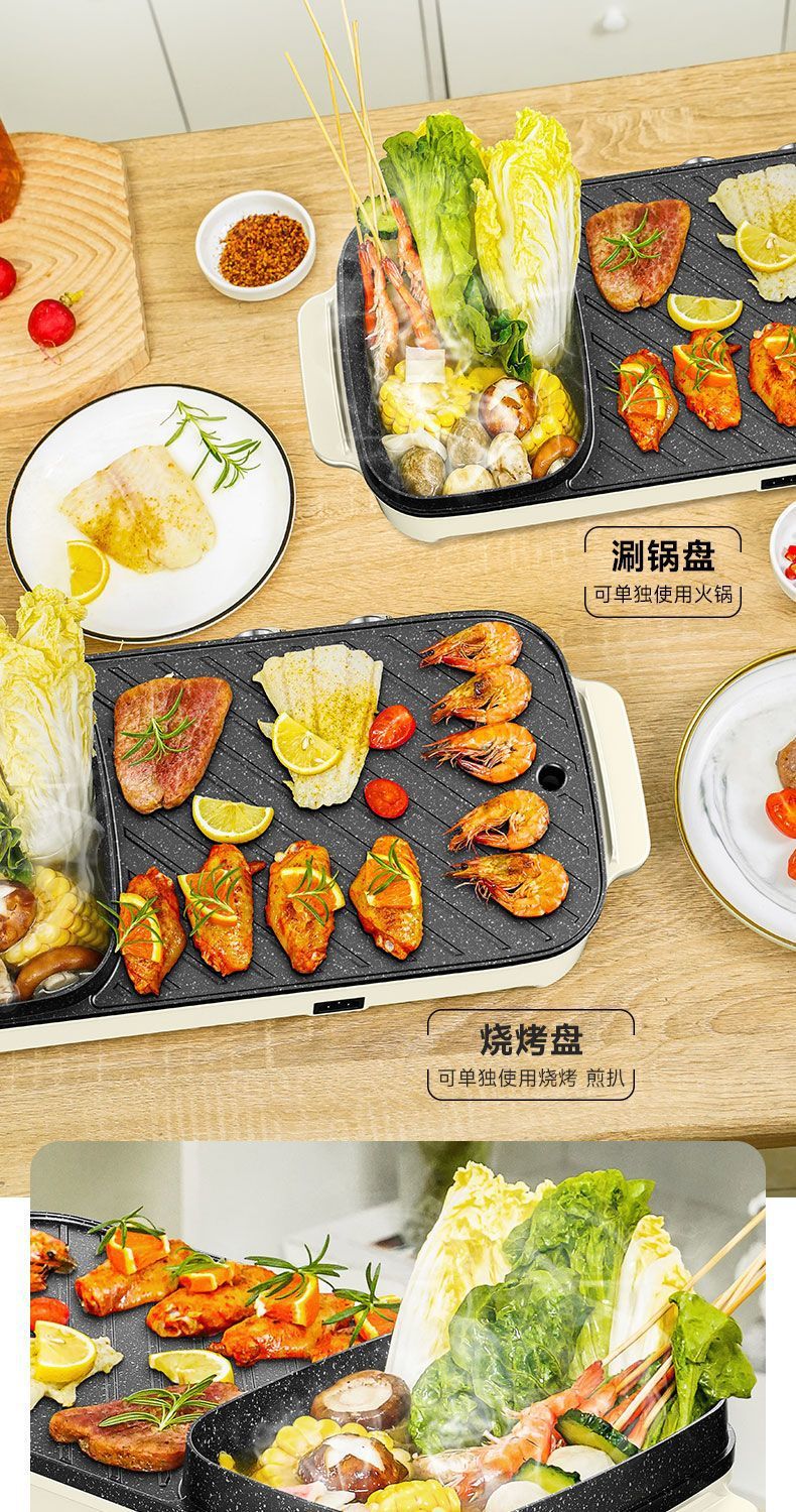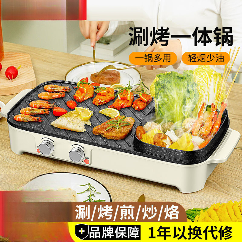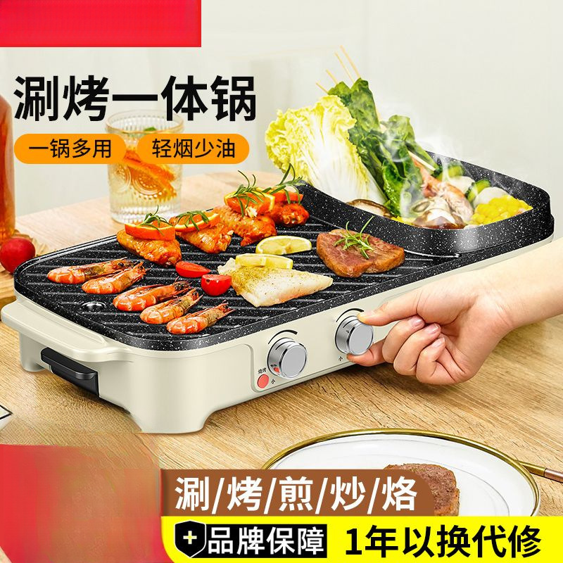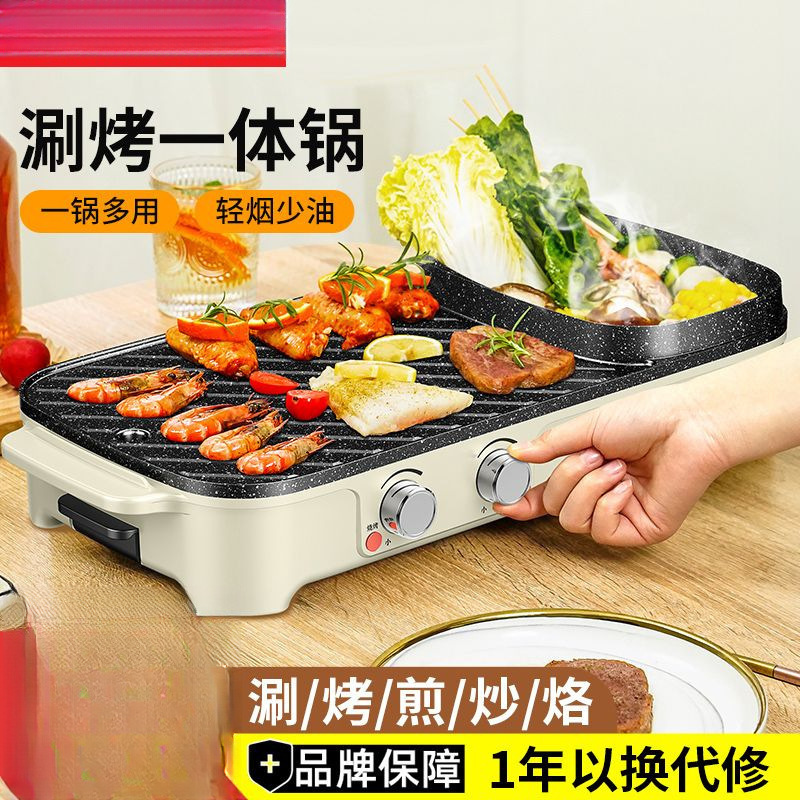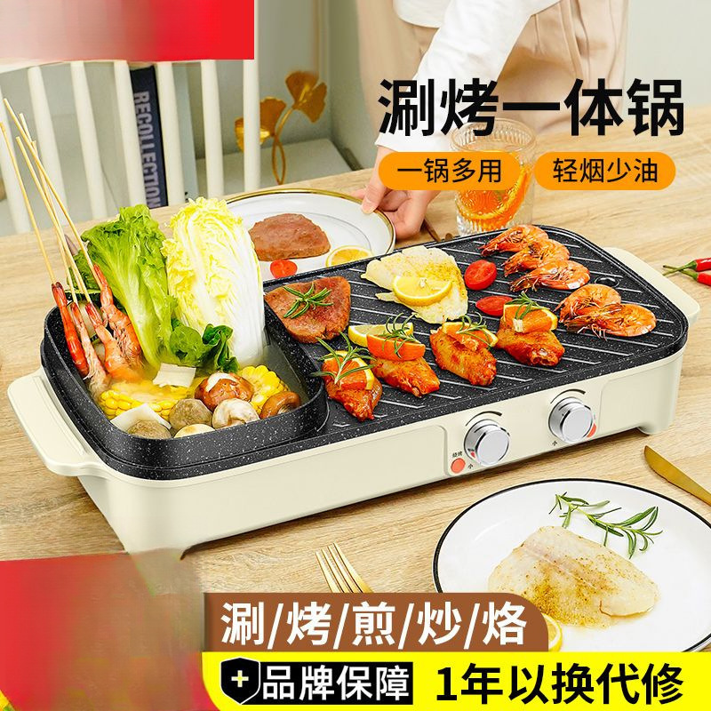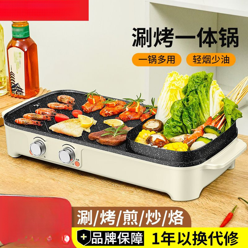 Многофункциональная гриль-комбинация с двойным управлением и горячая кастрюля для домашнего использования, электрическая кастрюля, домашний бездымный гриль для барбекю в корейском стиле, электрическая сковорода-гриль для барбекю.