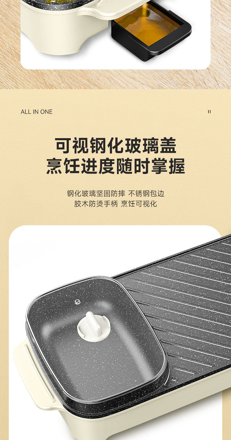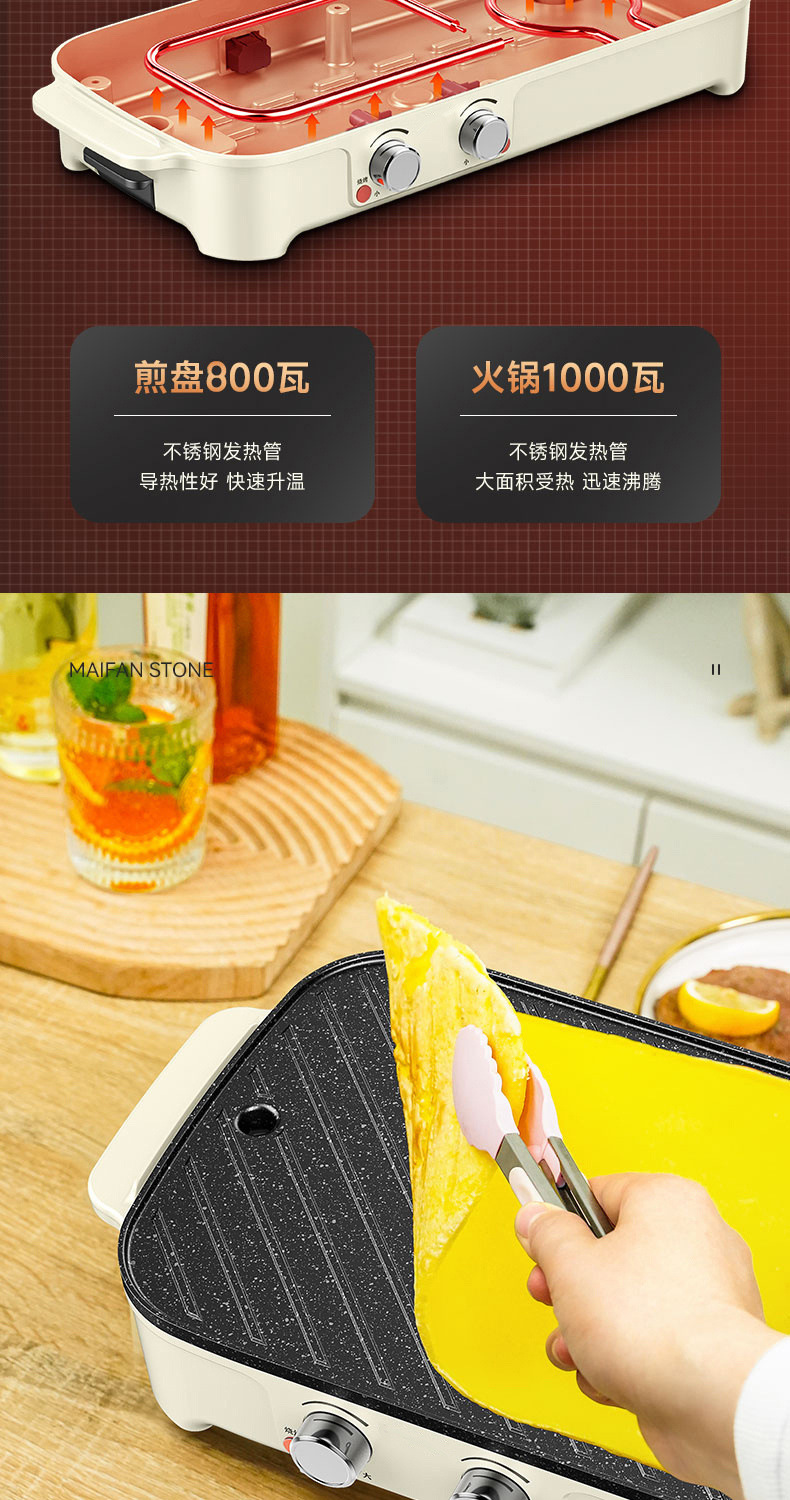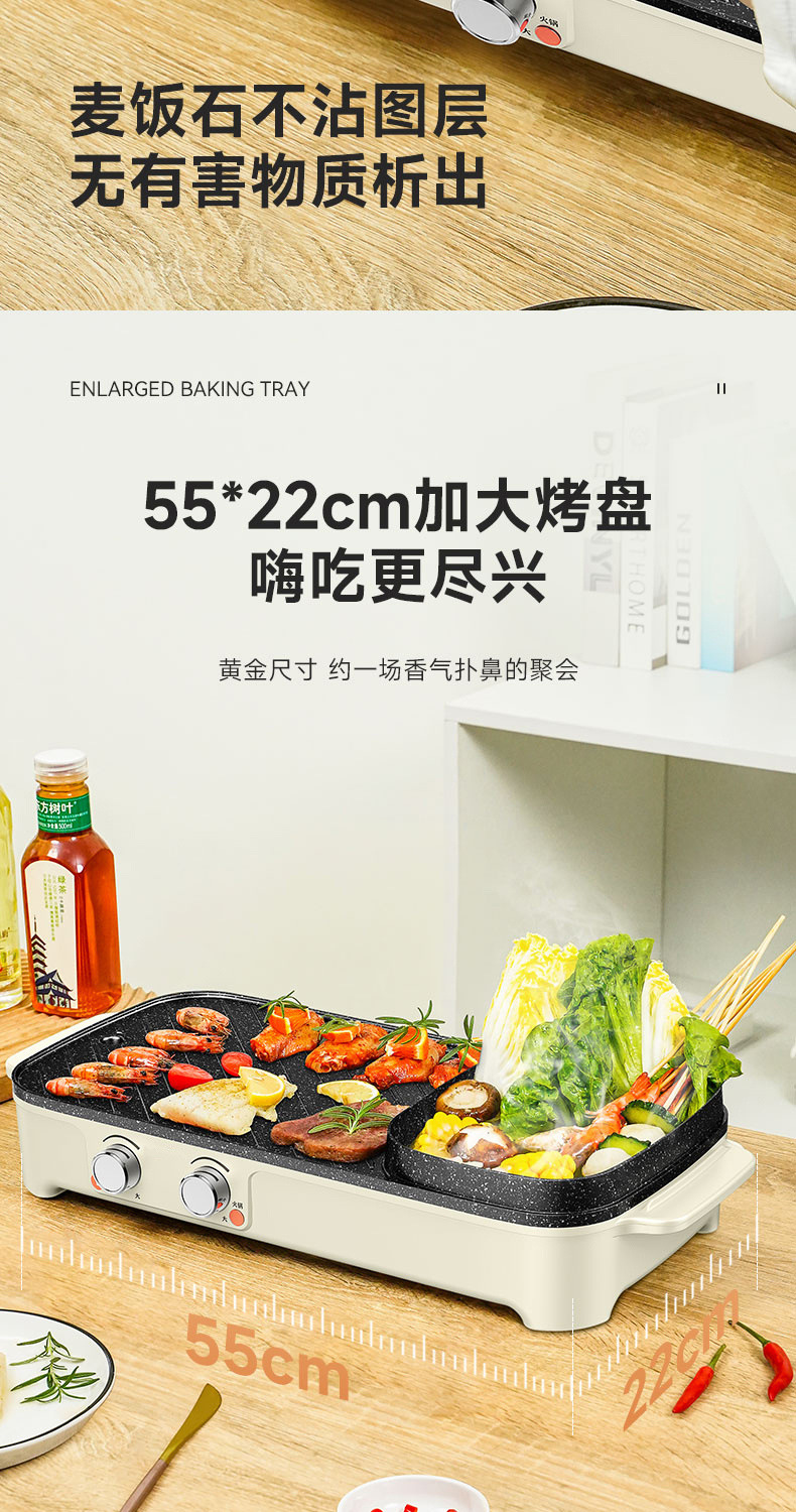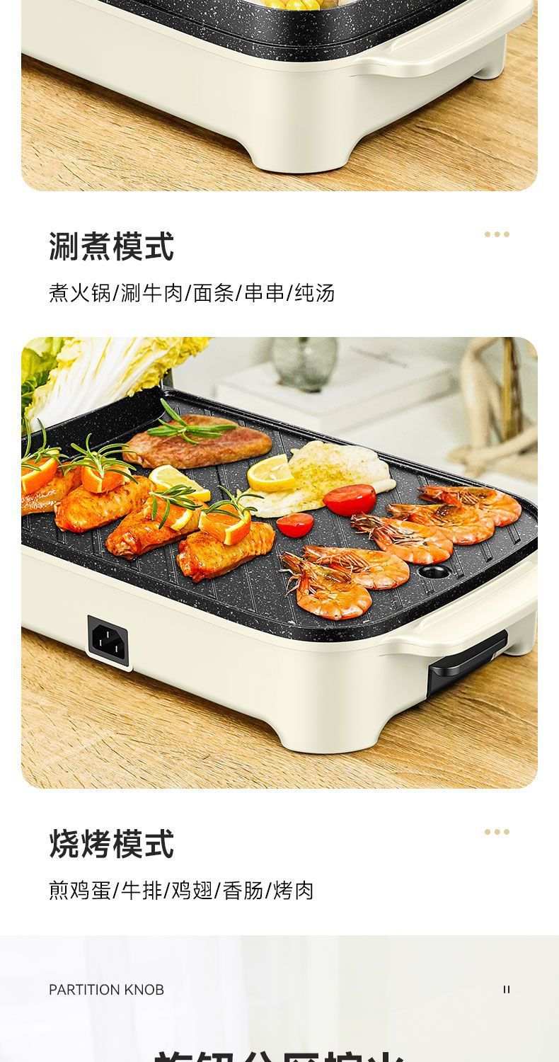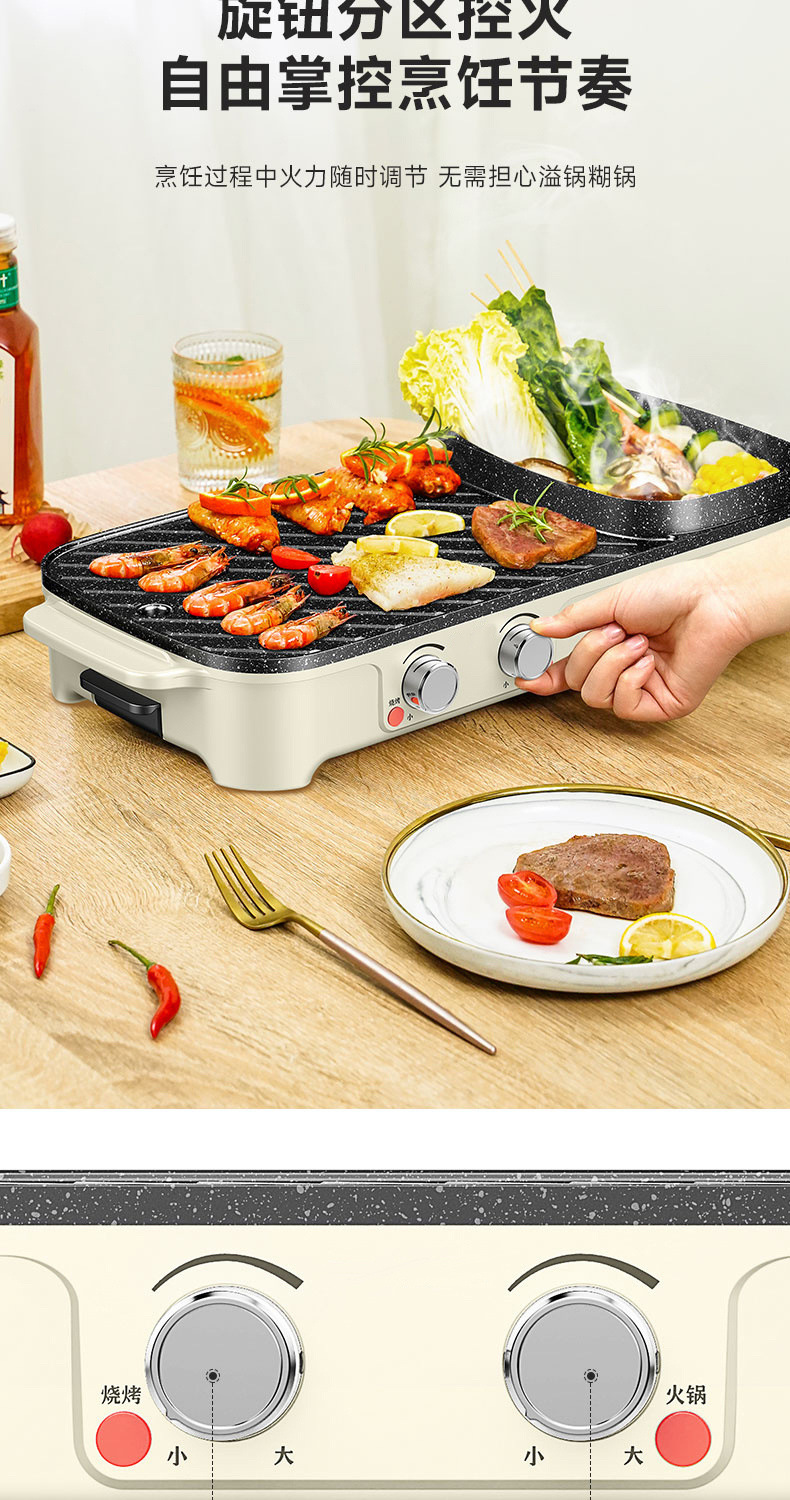 Многофункциональная гриль-комбинация с двойным управлением и горячая кастрюля для домашнего использования, электрическая кастрюля, домашний бездымный гриль для барбекю в корейском стиле, электрическая сковорода-гриль для барбекю.