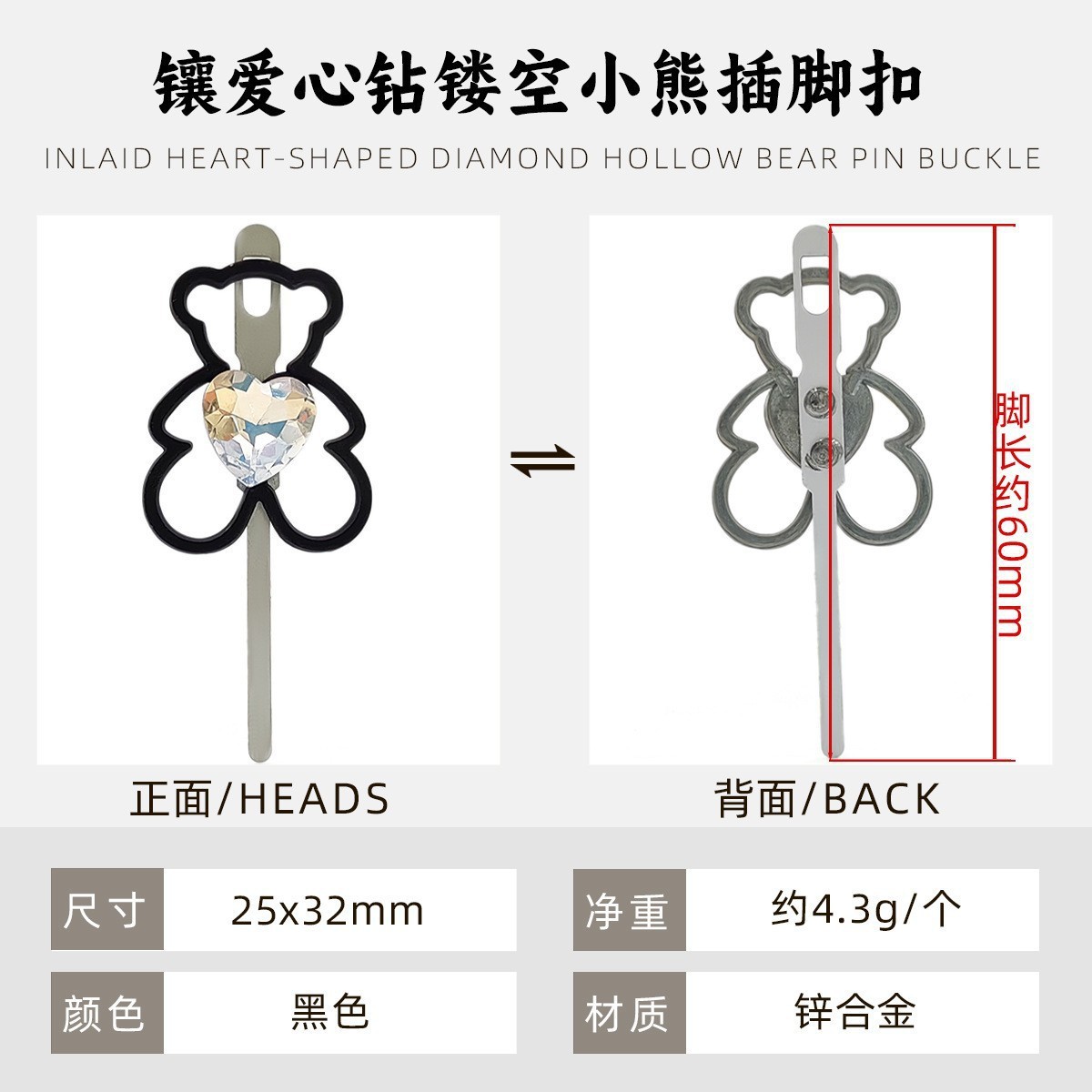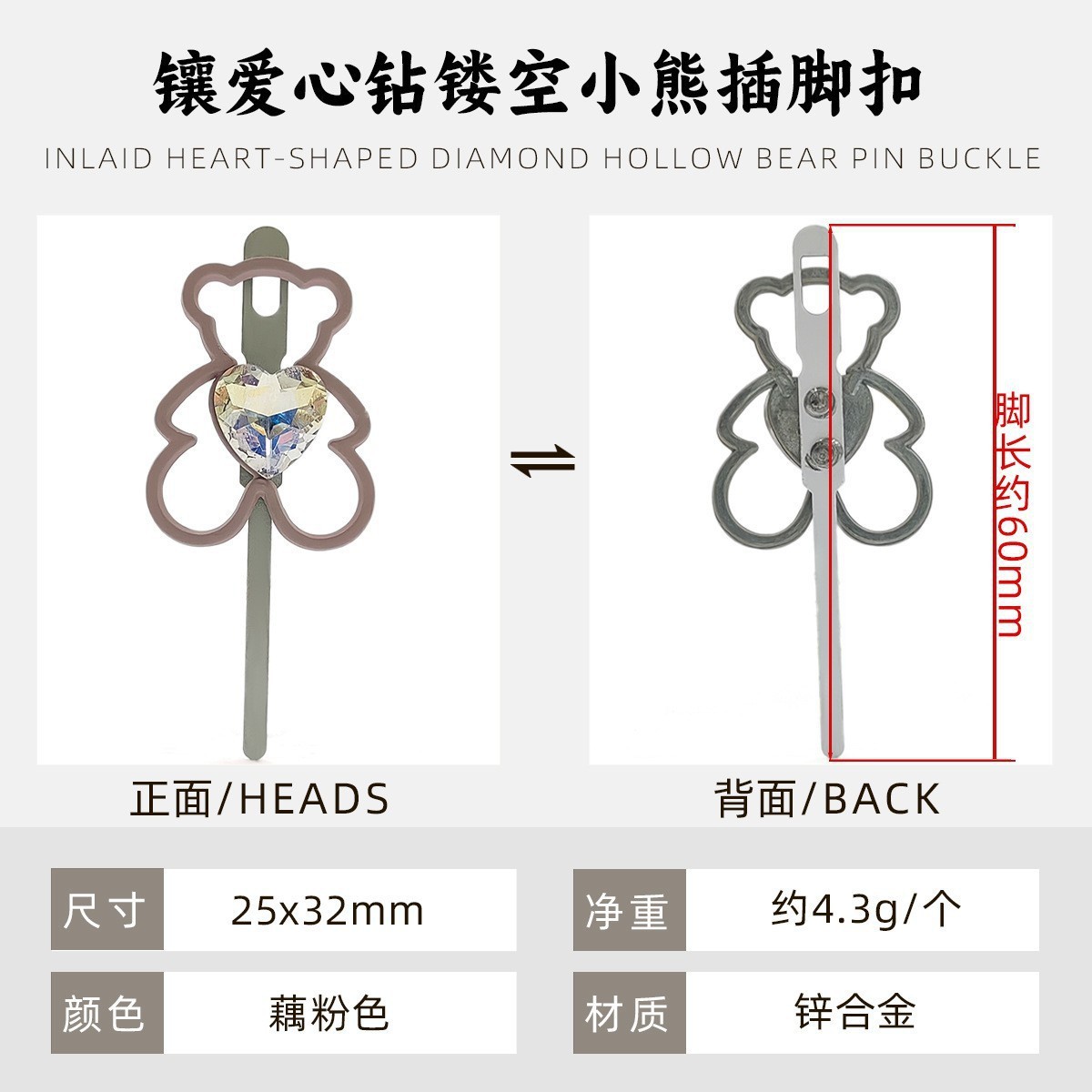 Прямые поставки с фабрики, в наличии, инкрустированные сердцем, полый медведь, овальный стразовый кролик, пряжка для детской обуви, ювелирные аксессуары из сплава