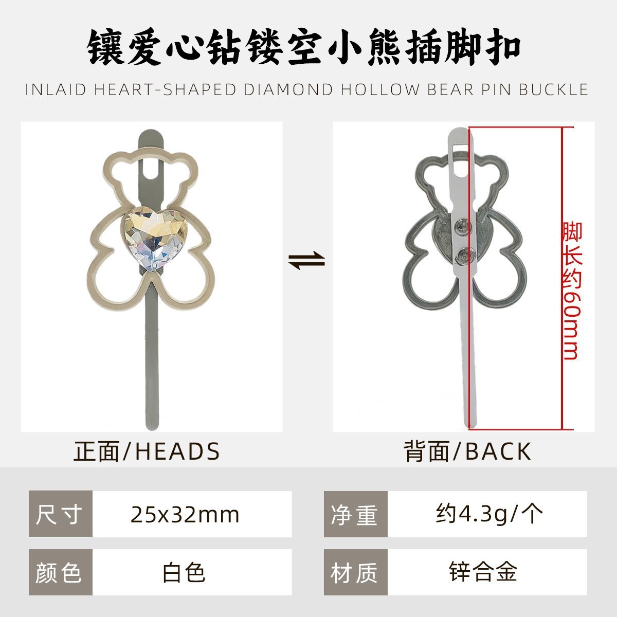 Голый медведь с инкрустацией голубого цвета, белый бриллиант, 25*32 мм, пряжка/шт.; Белое сердце, ромб, полый медведь, 25*32 мм, пряжка/шт.; Розовый инкрустированный белым любовным бриллиантом полый медведь 25*32 мм с пряжкой/шт.; Черный инкрустированный белым любовным бриллиантом полый медведь 25*32 мм с пряжкой/шт.; Белый живот и голова, ромбовидный кролик, 20*35 мм, пряжка/шт.; Кролик с коричневым животом и головой, ромбовидная пряжка 20*35 мм/шт.; Розовый живот и голова, ромбовидный кролик, 20*35 мм, пряжка/шт.; Черная голова с животом, ромбовидный кролик, 20*35 мм, пряжка/шт.