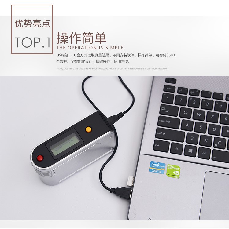 | 应用范围 | ∵ 油墨、油漆、烤漆、涂料、木制品、皮革制品等表面光泽测量。 USB接口,可存储3580个数据,连接电脑储存数据 | |