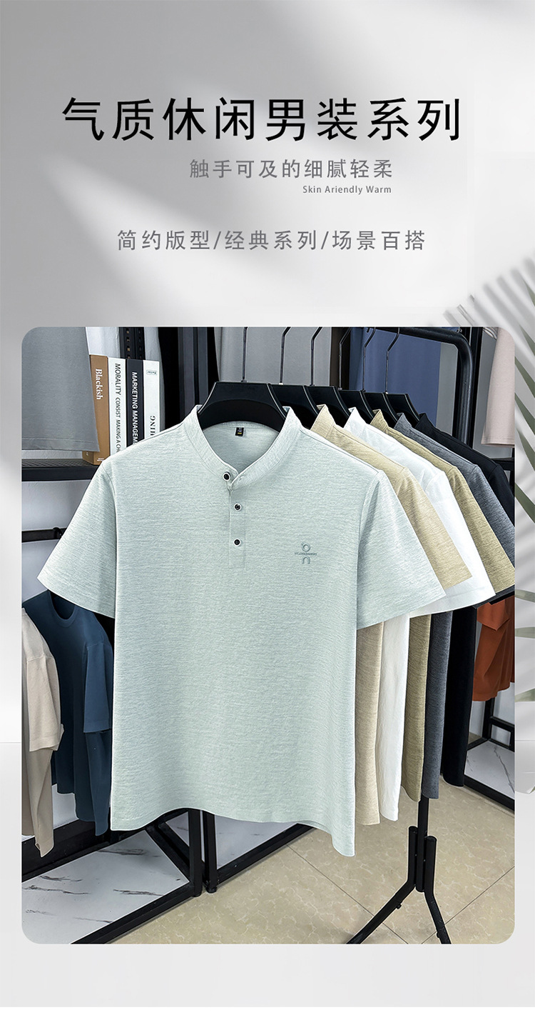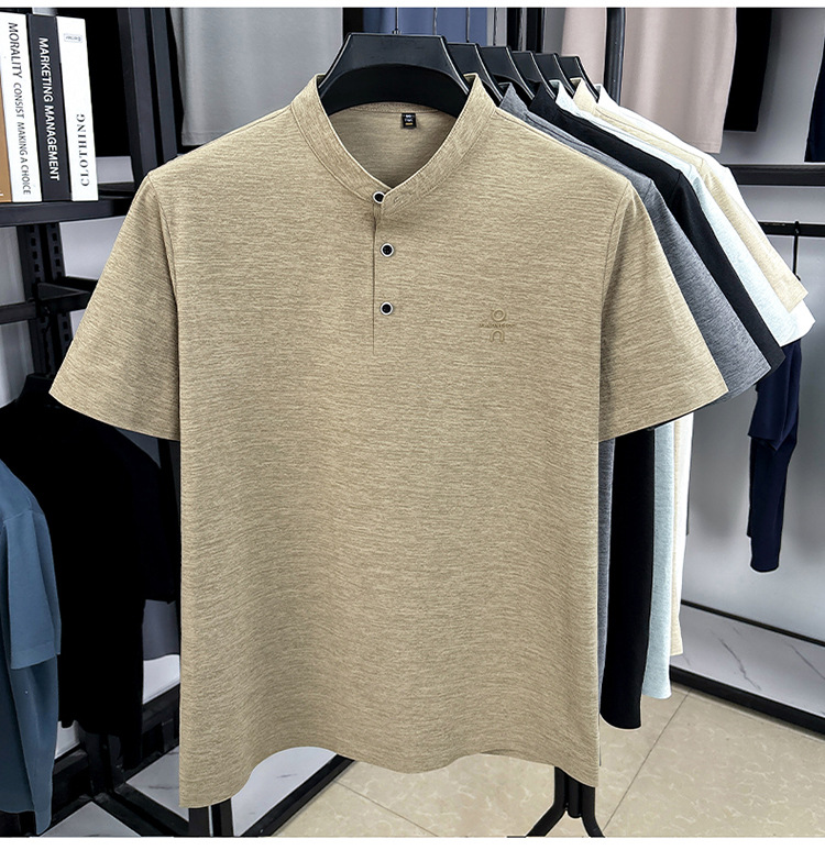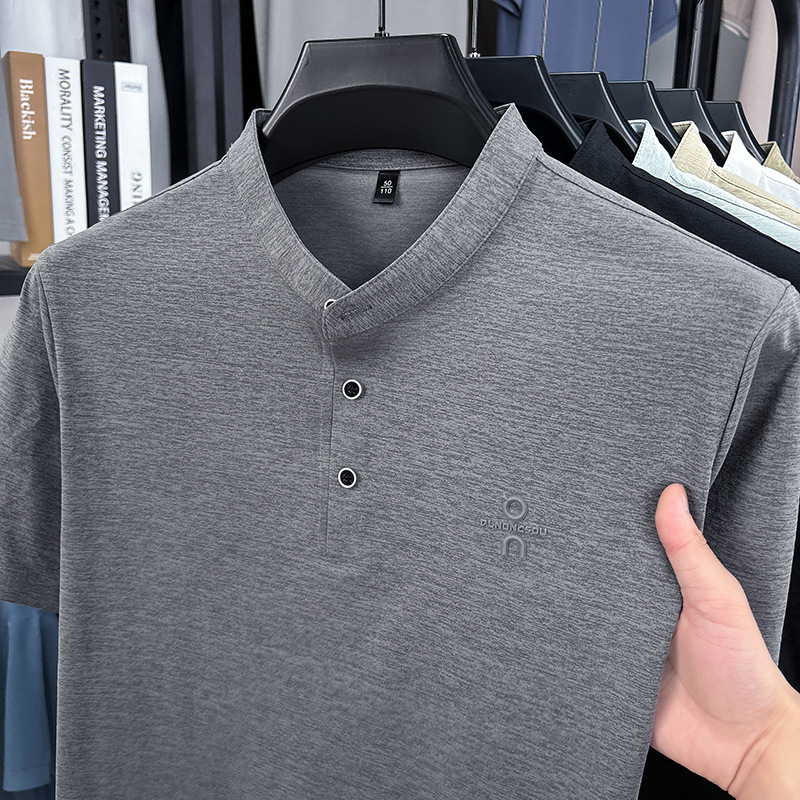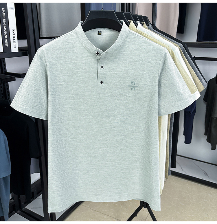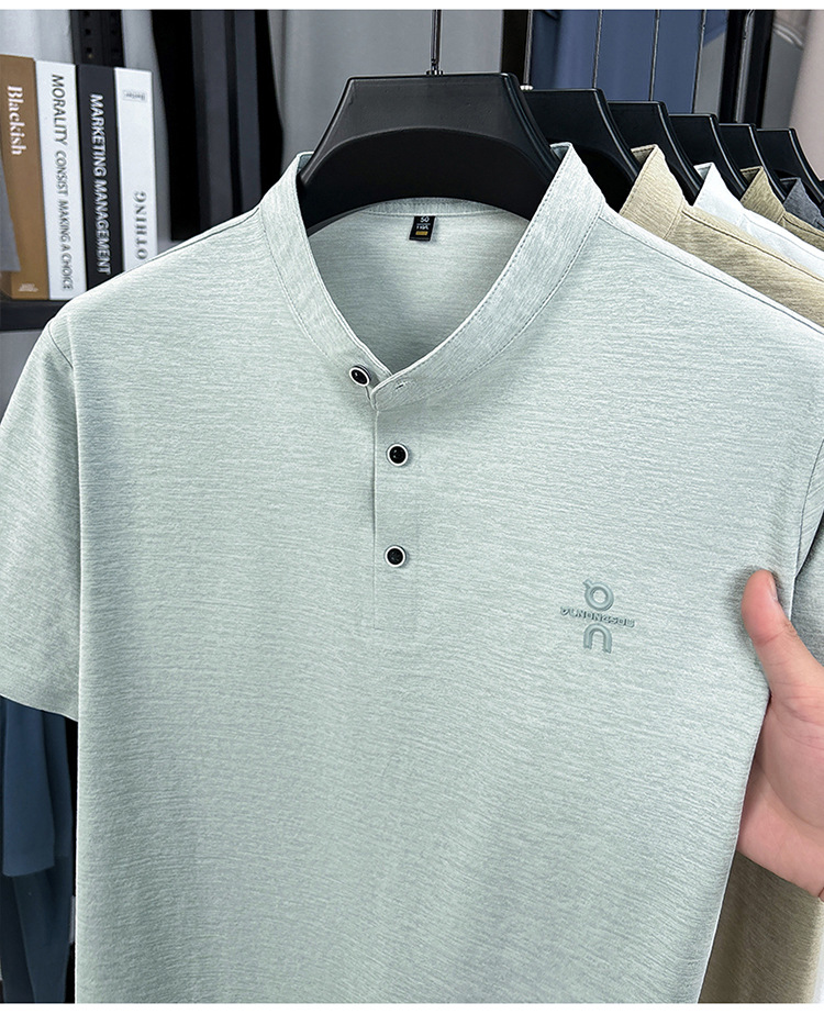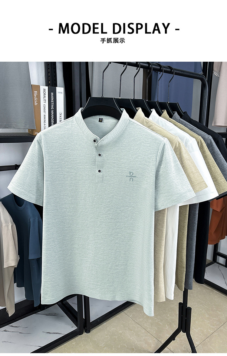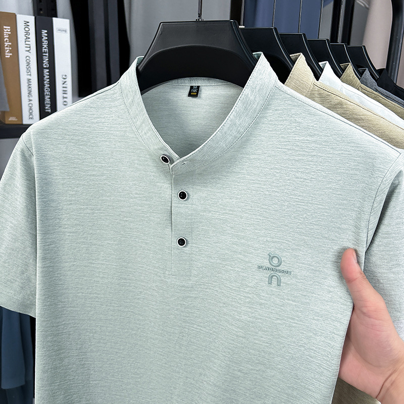 Мужская футболка с коротким рукавом, летняя 2025, поло с воротником-стойкой, однотонная, футболка для папы, полурукав