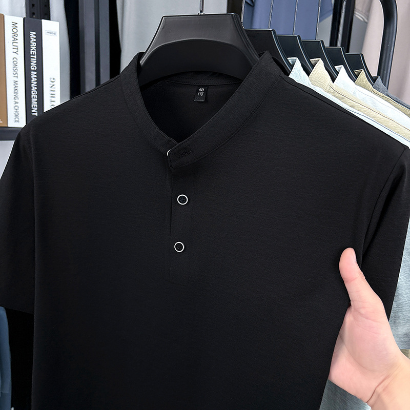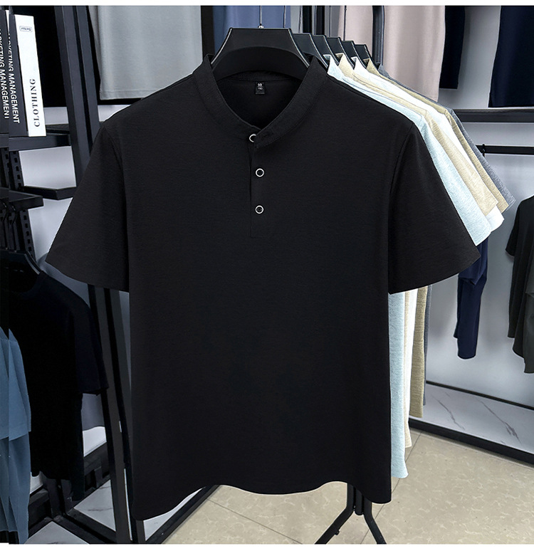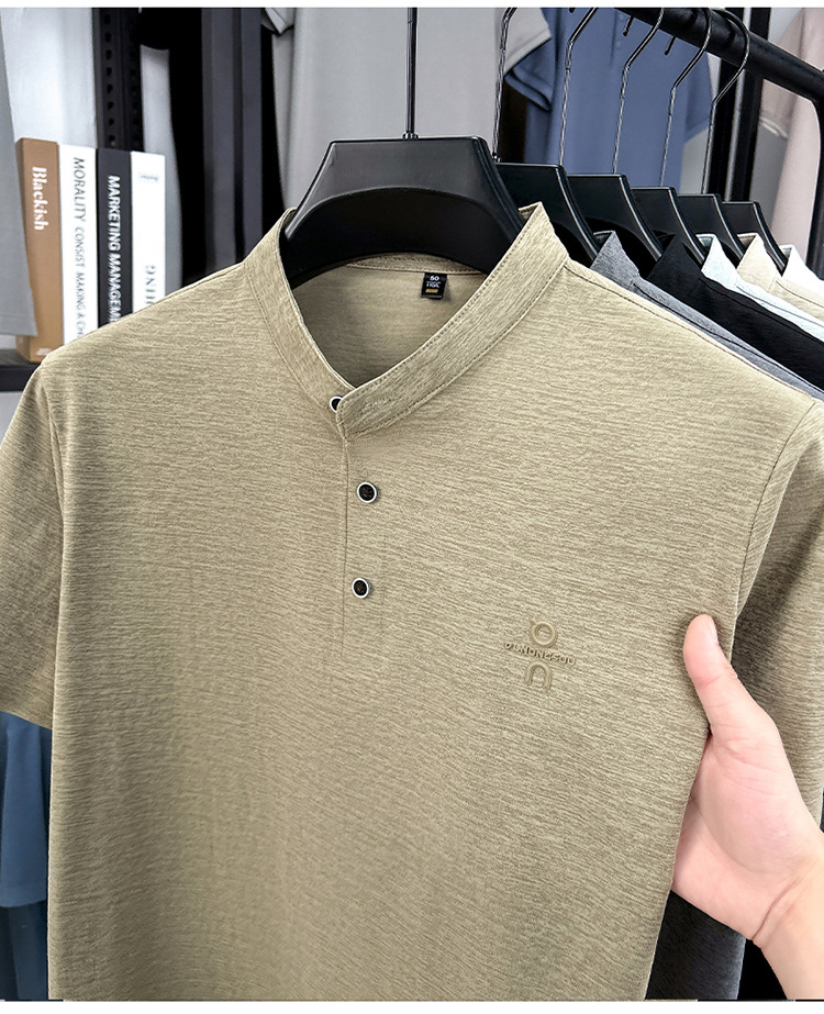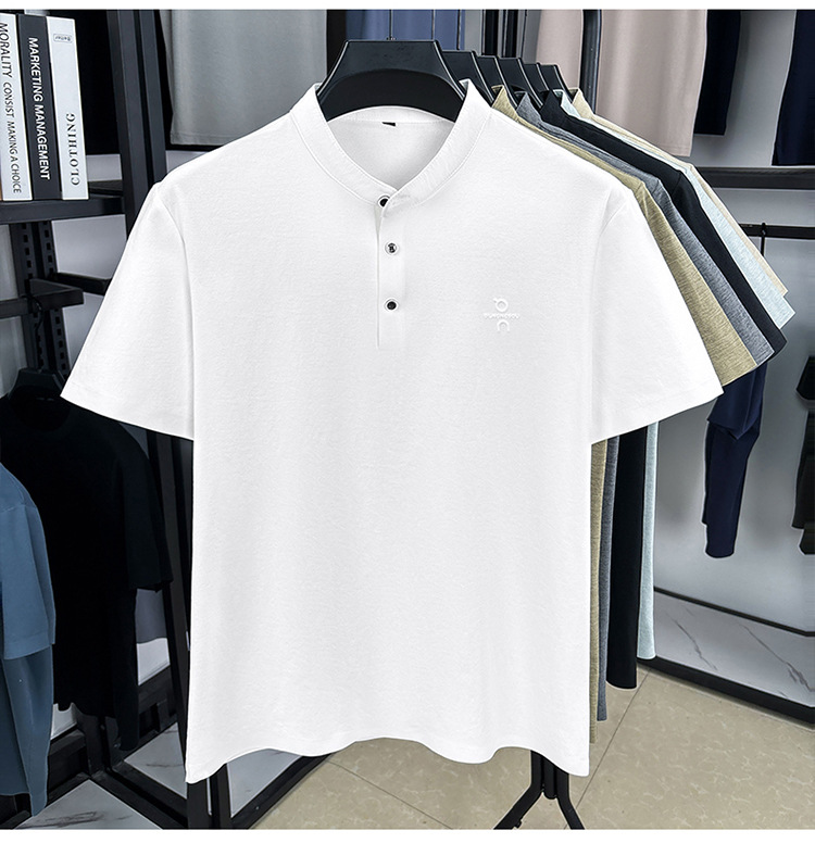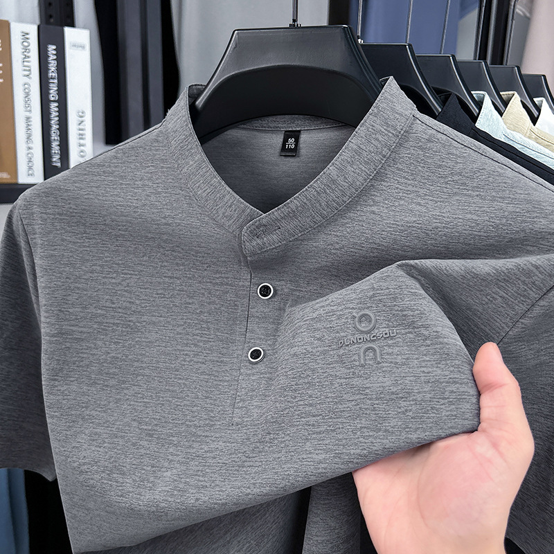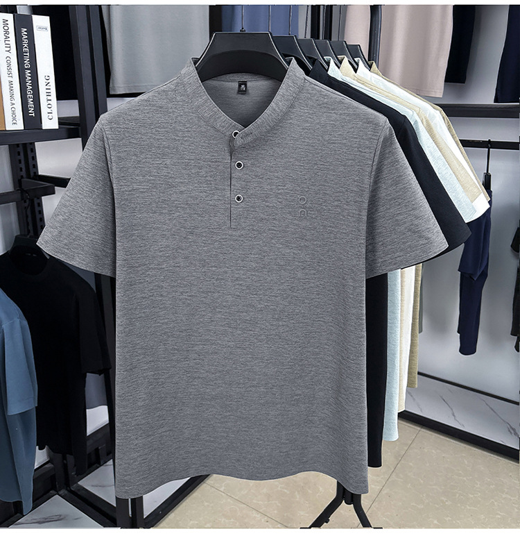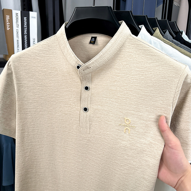 Мужская футболка с коротким рукавом, летняя 2025, поло с воротником-стойкой, однотонная, футболка для папы, полурукав