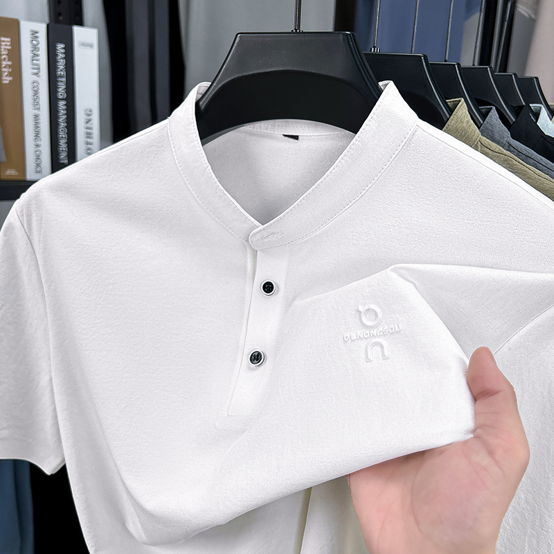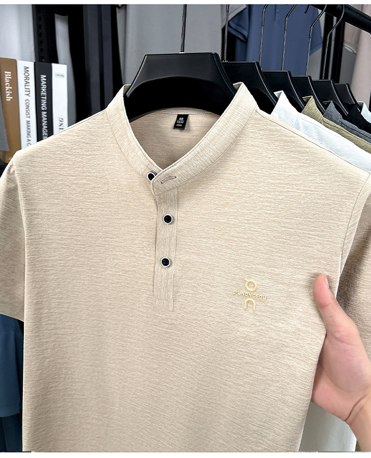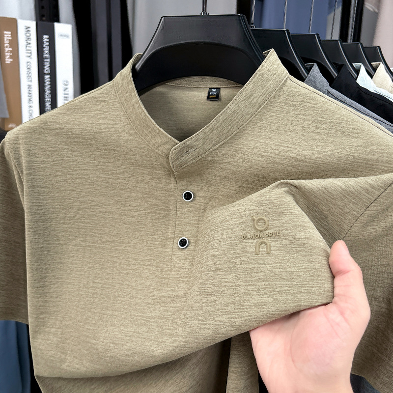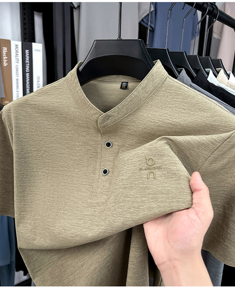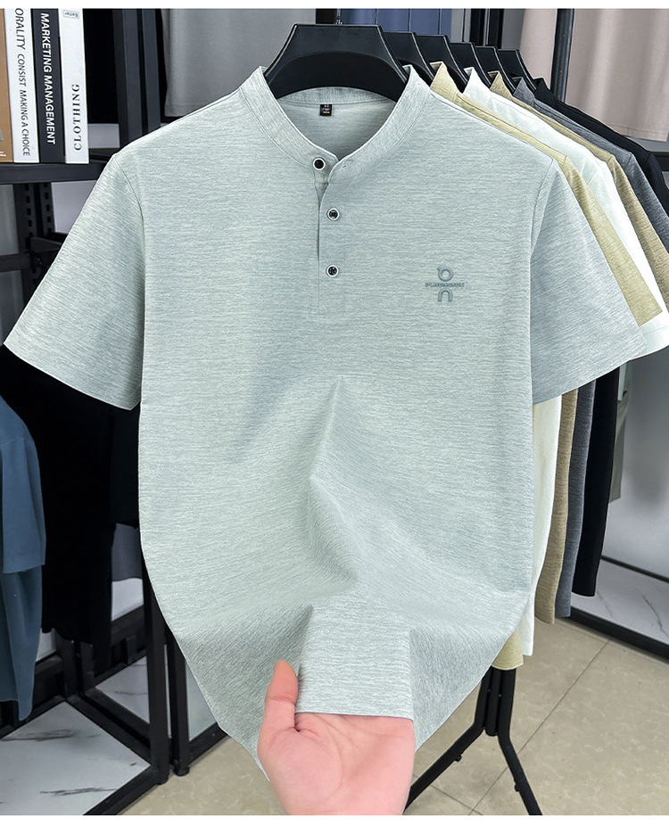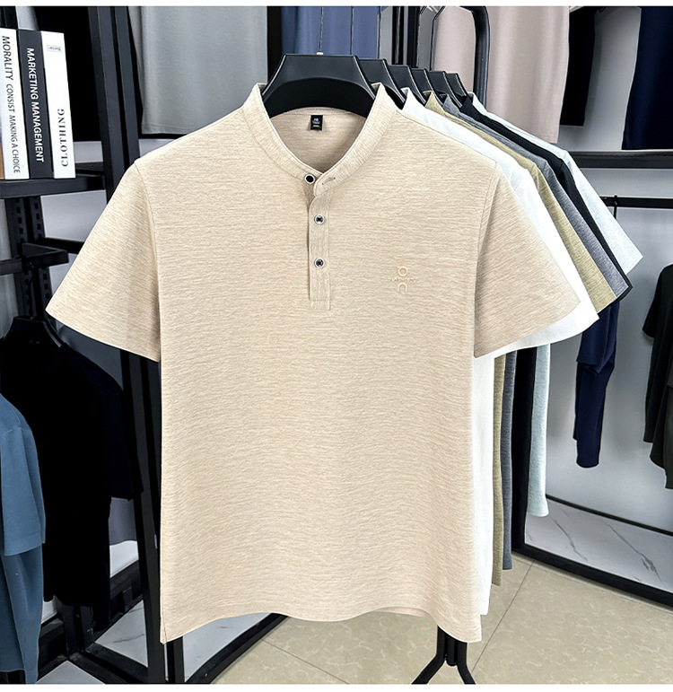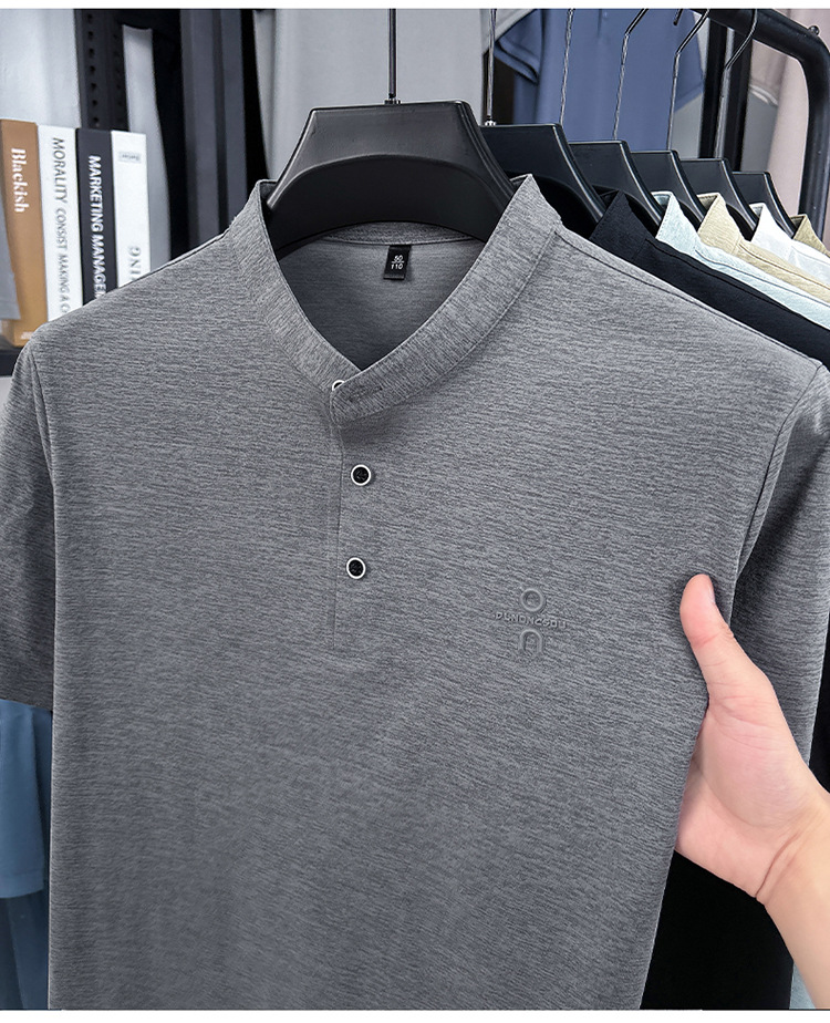 Мужская футболка с коротким рукавом, летняя 2025, поло с воротником-стойкой, однотонная, футболка для папы, полурукав