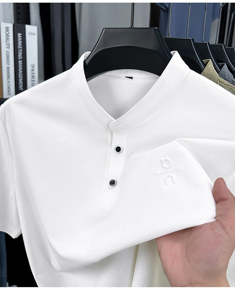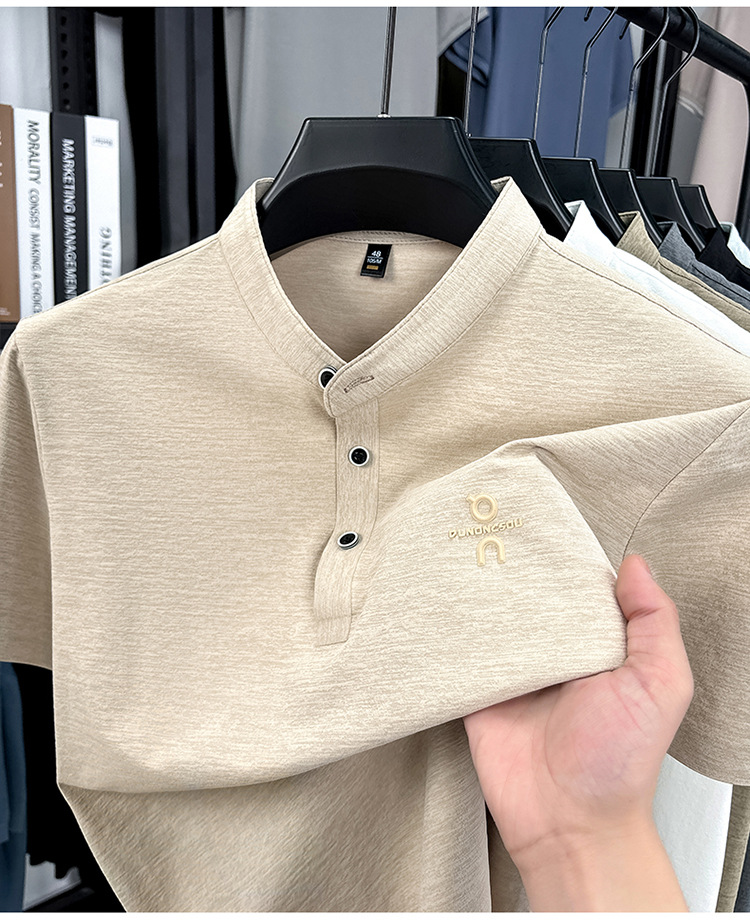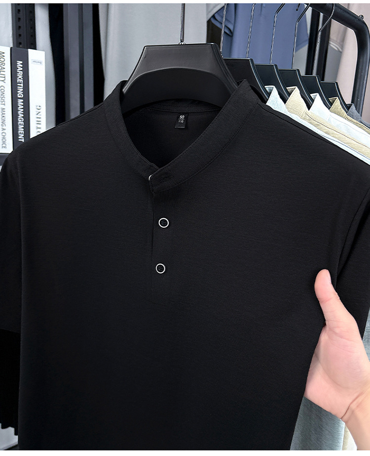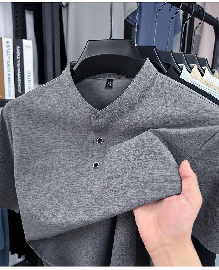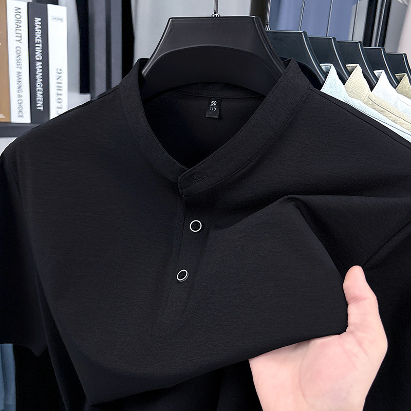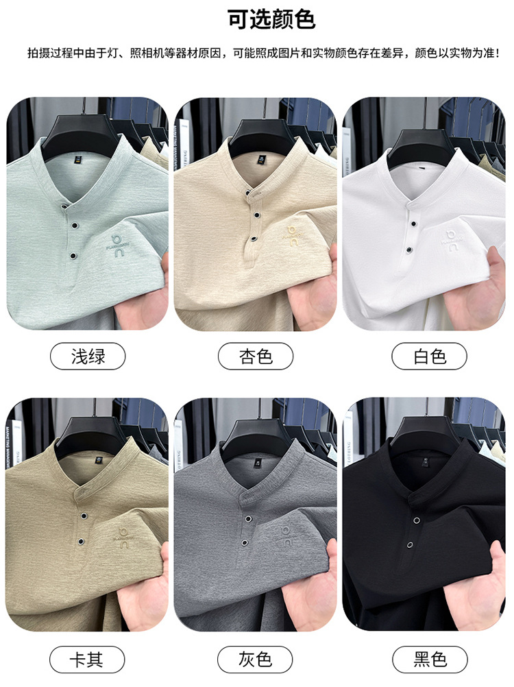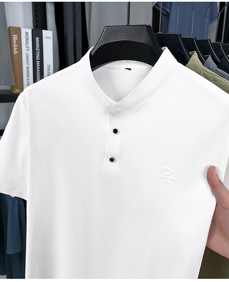 Мужская футболка с коротким рукавом, летняя 2025, поло с воротником-стойкой, однотонная, футболка для папы, полурукав