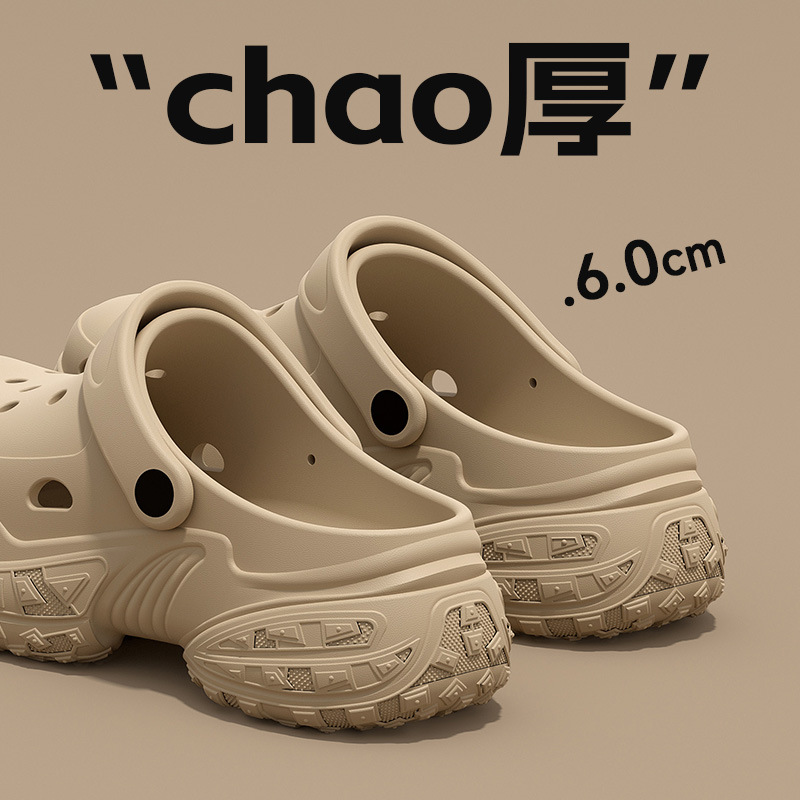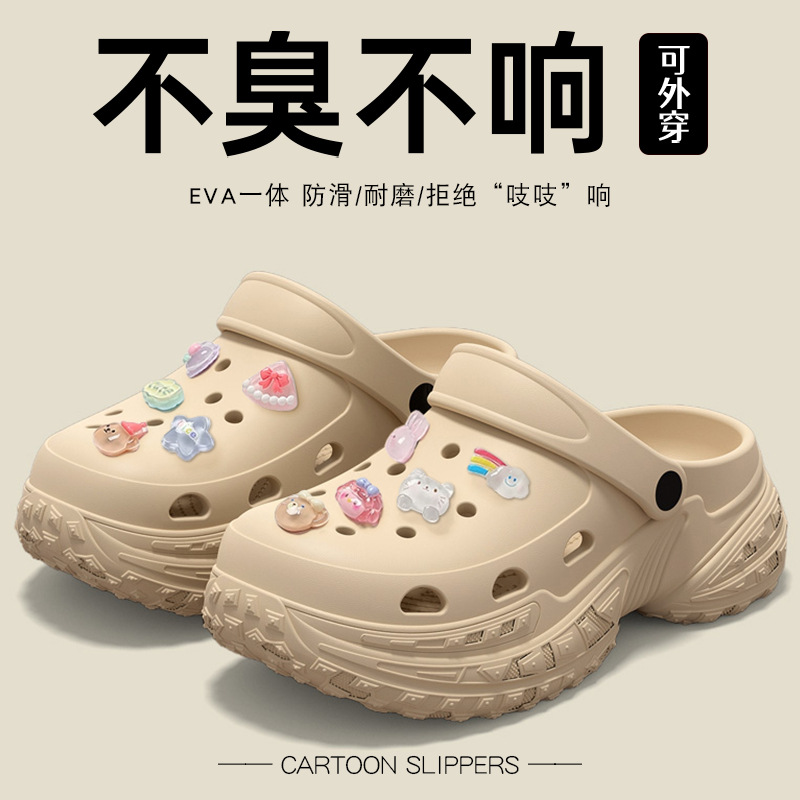 Пещерная обувь женская летняя 2025 новая наружная нескользящая и противоскользящая легкая мягкая толстая подошва для увеличения Баотоу пляжные холодные тапочки