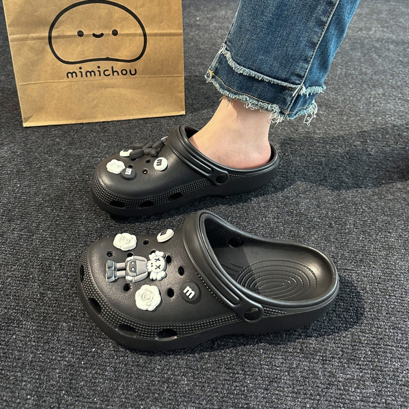 Женская обувь из крокодиловой кожи, модные милые тапочки из ЭВА с героями мультфильмов, сандалии для медсестры, летние нескользящие пляжные туфли на толстой подошве для пар, мужские туфли