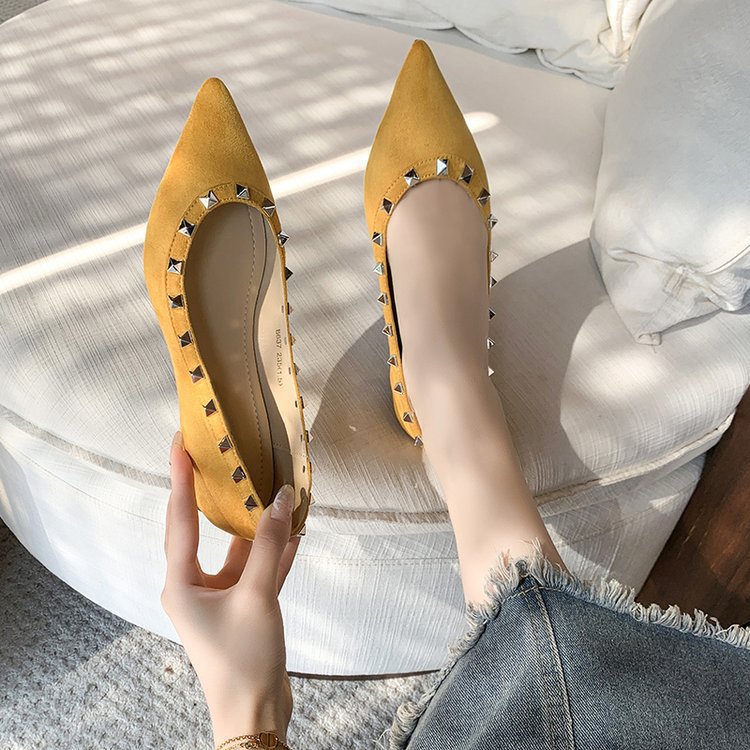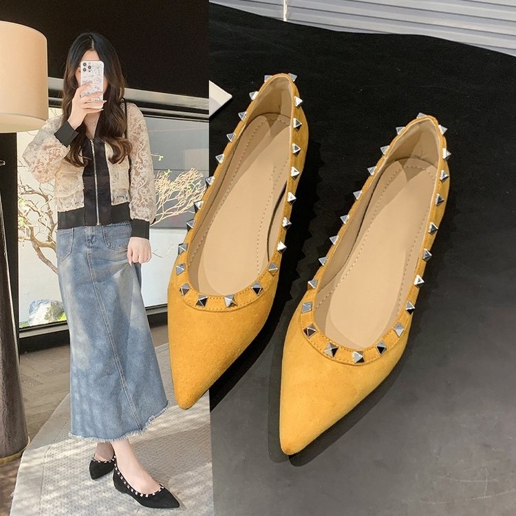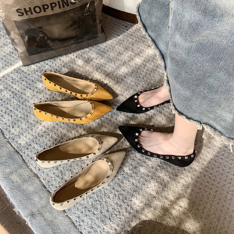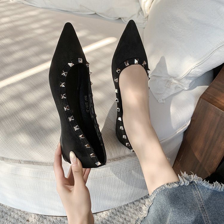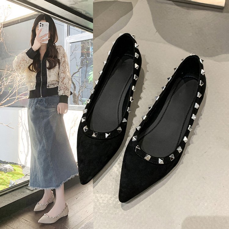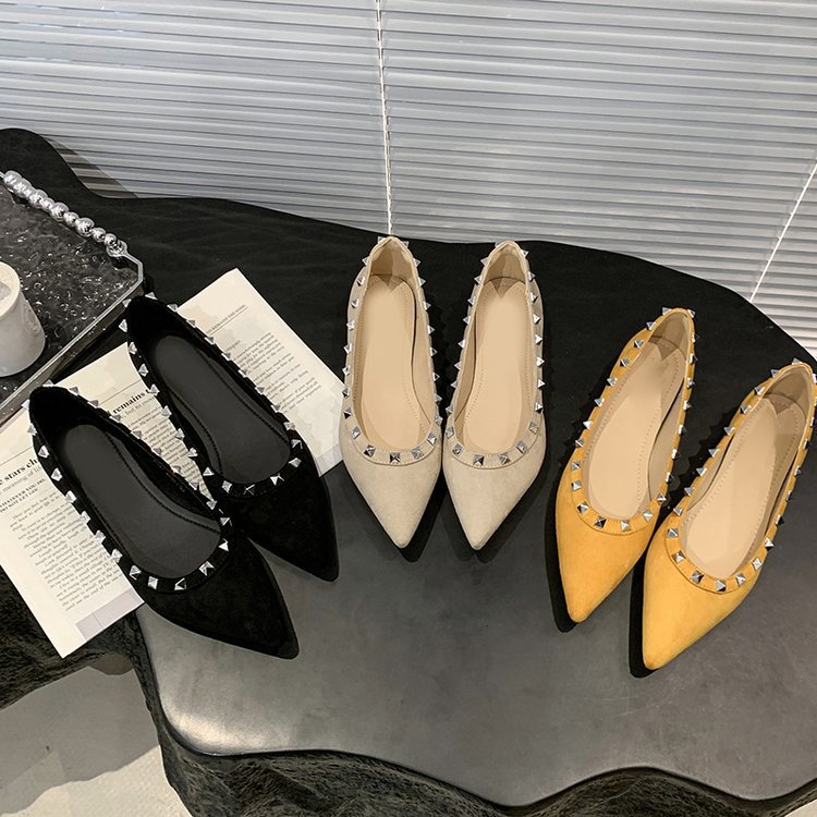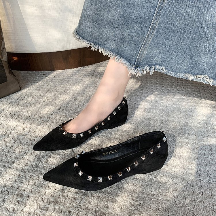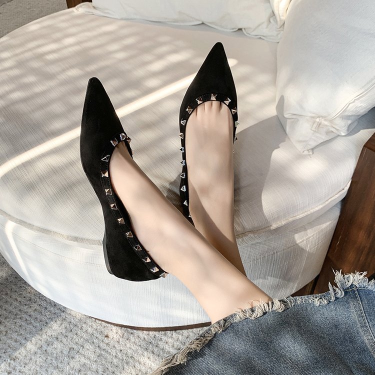 Женские летние балетки 2025 года в французском стиле с острым носком, шипами, скрытым каблуком и неглубоким вырезом.