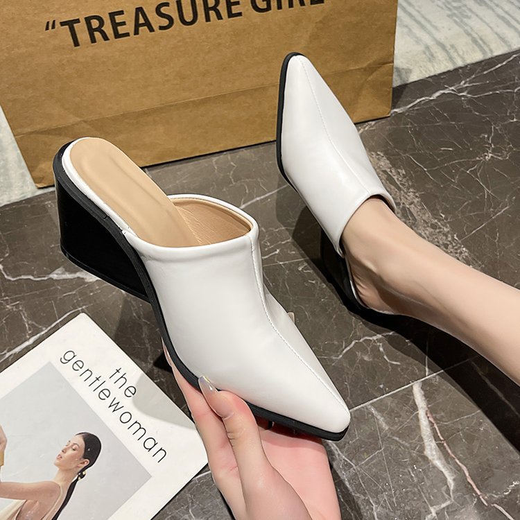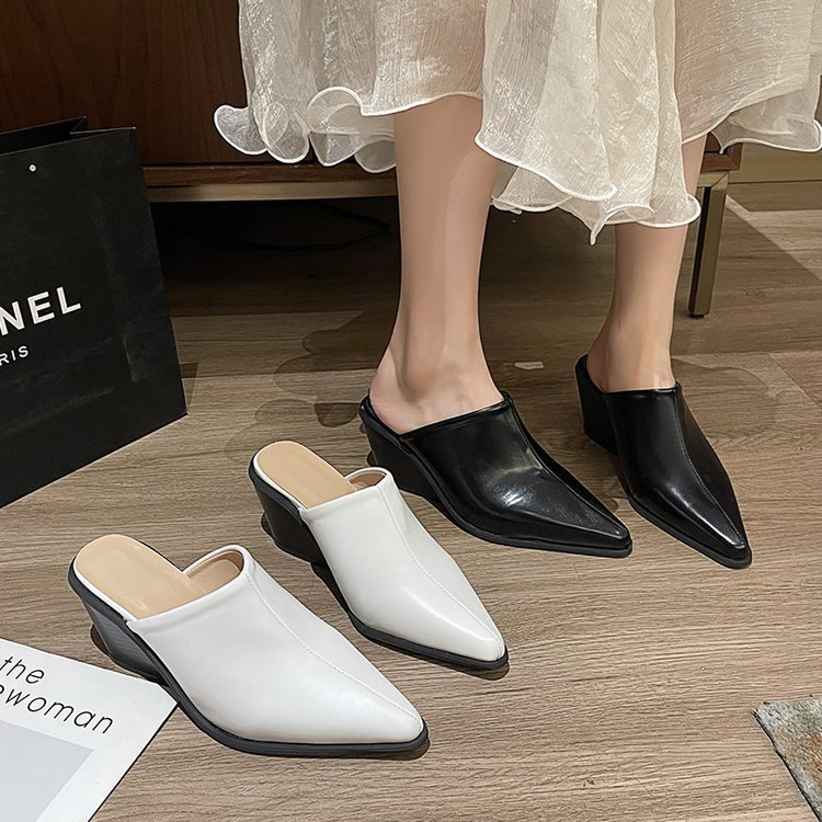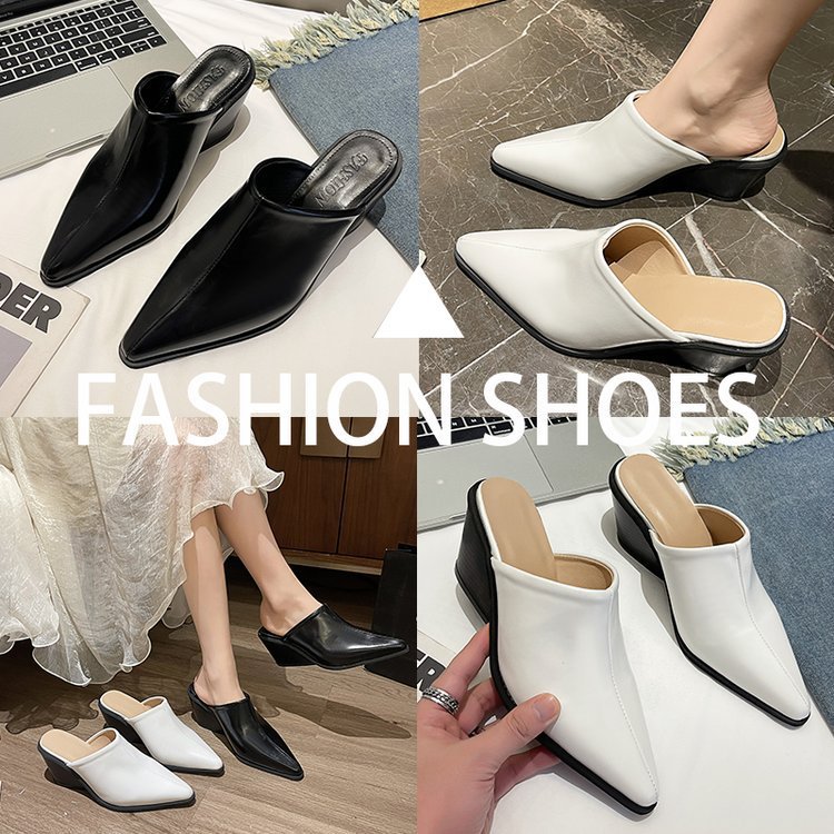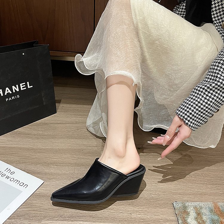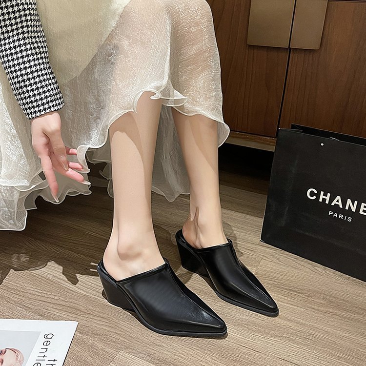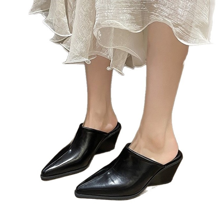 Женские летние босоножки-мюли 2025 года, новые, больших размеров, с заострённым носком, на танкетке, с открытой пяткой, модные.