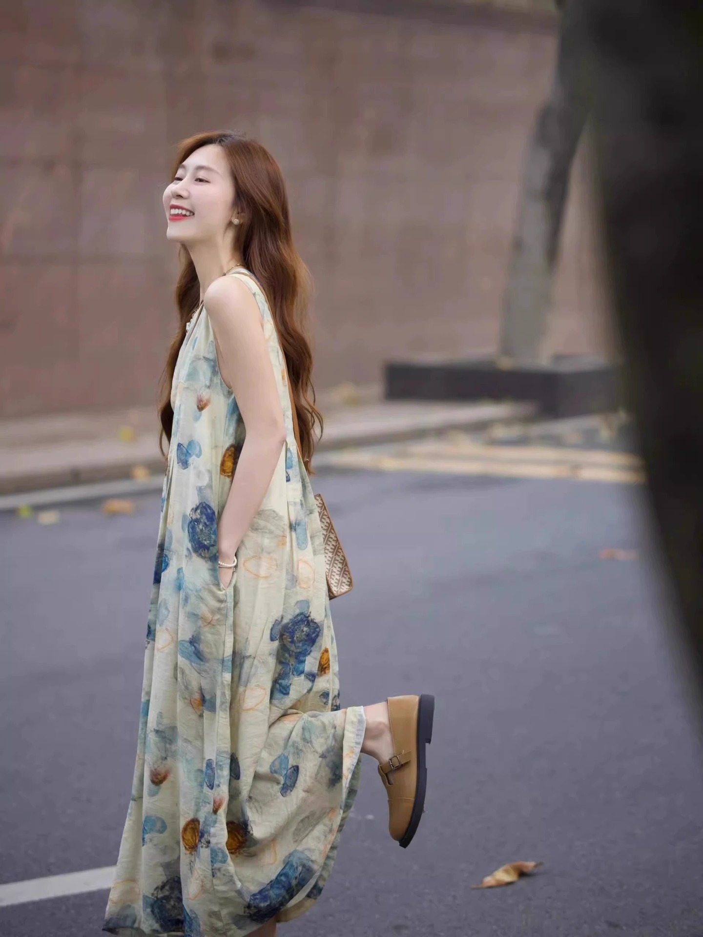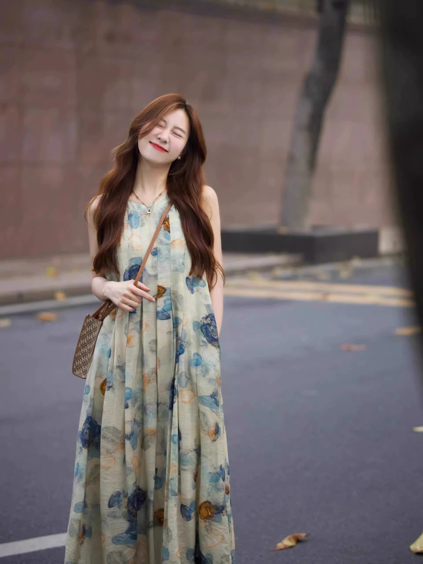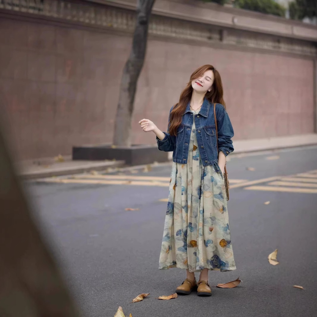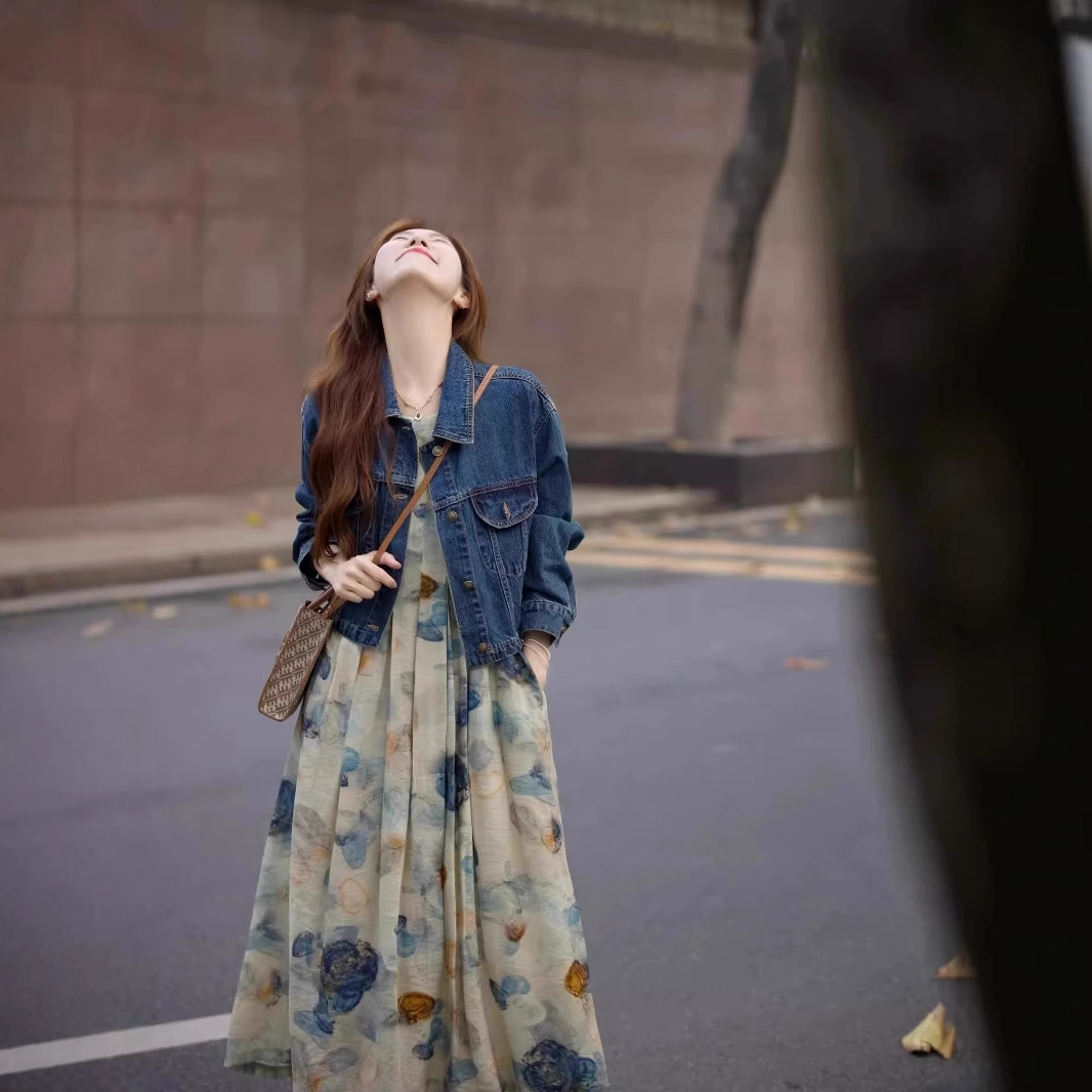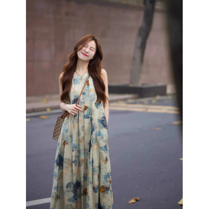 Чернила живопись жилет платье нишевые дизайнерские чувства 2025 весна/лето новый ретро литературный темперамент новый национальный стиль длинное платье