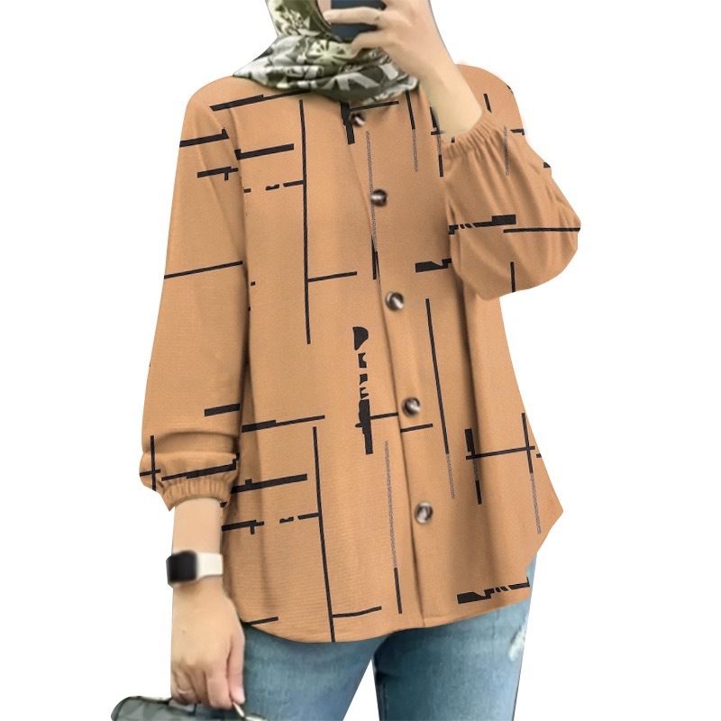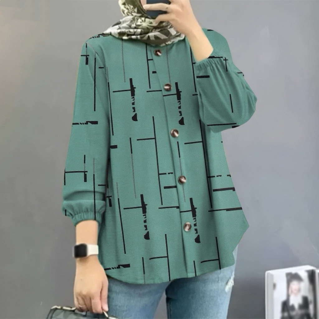 Кросс-бордерная женская мусульманская рубашка с цветочным принтом Amazon Ближний Восток Малайзия 2024, модные пышные рукава, оптовая партия от производителя