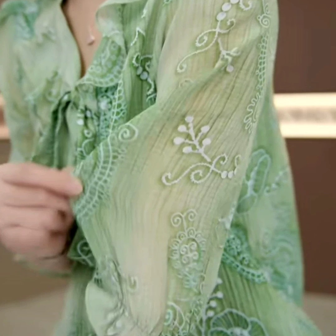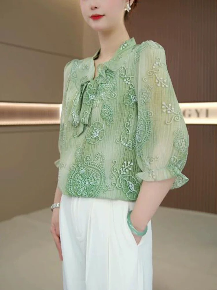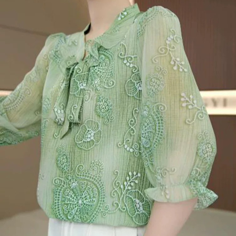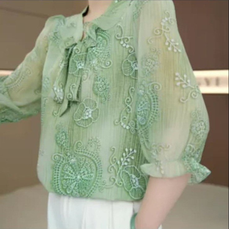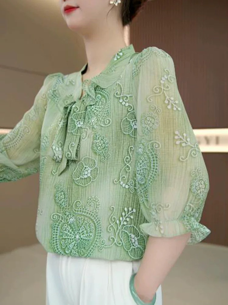 Популярная высококачественная женская рубашка для мам среднего и пожилого возраста 2025 года, летняя шифоновая рубашка с принтом, тонкий топ в западном стиле