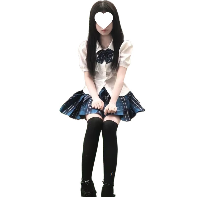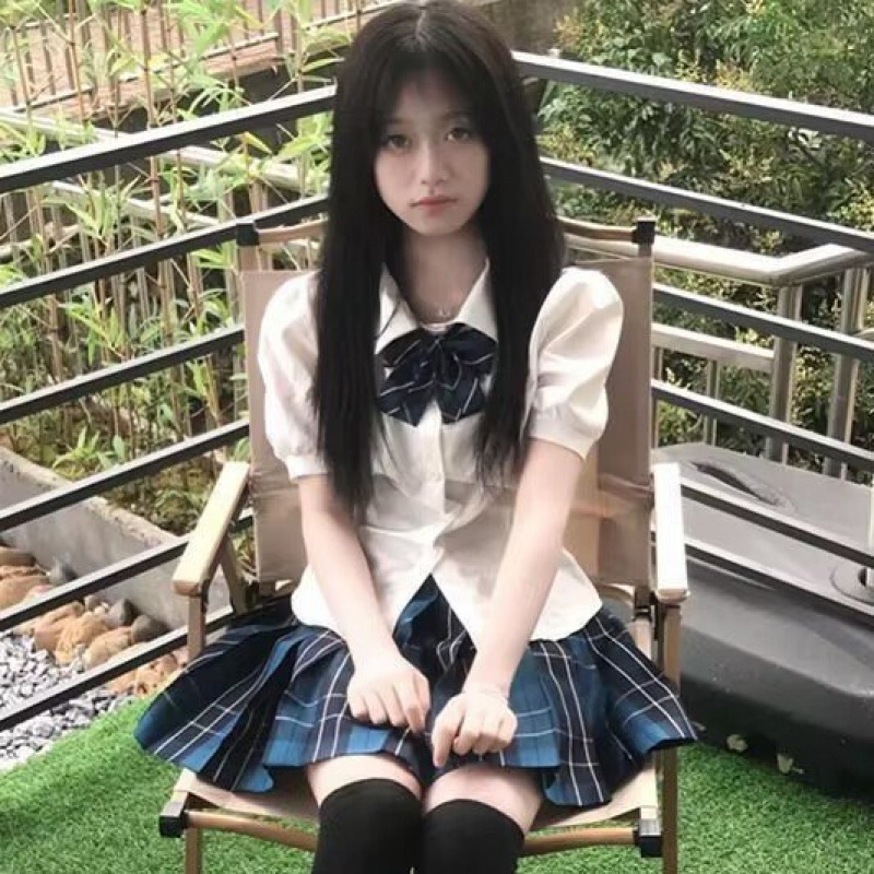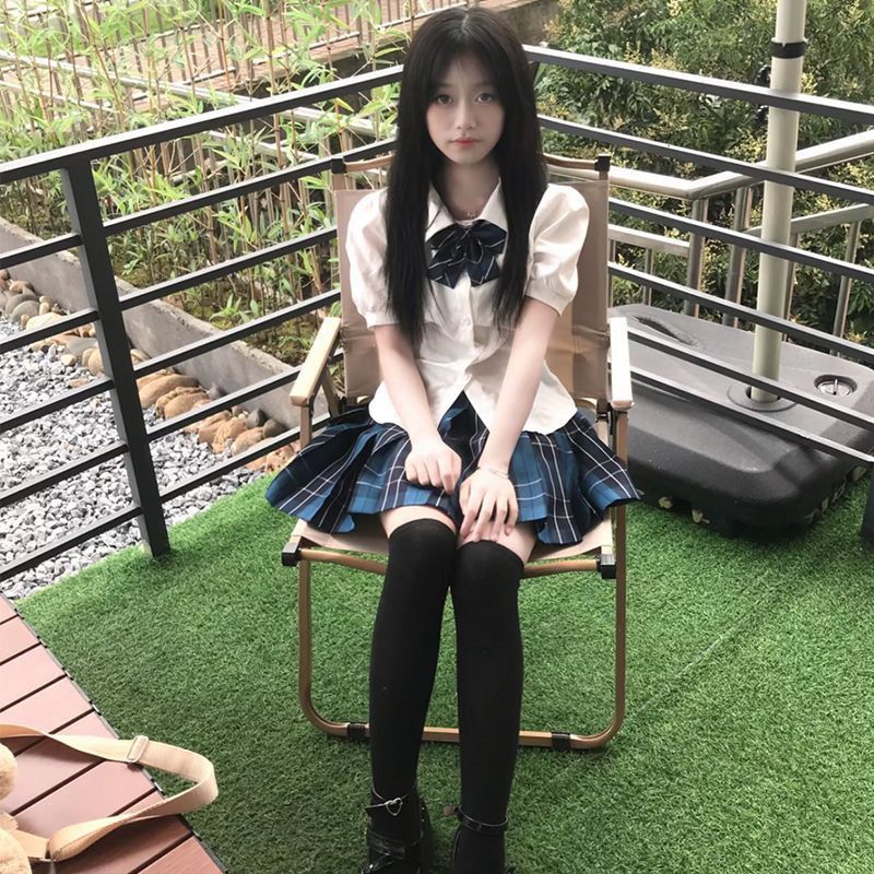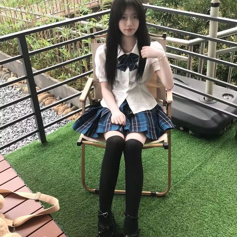 Белая рубашка на талии; Белая рубашка на талии + галстук-бабочка; Большая клетчатая юбка; Белая рубашка с талией + галстук-бабочка + большой костюм с клетчатой юбкой