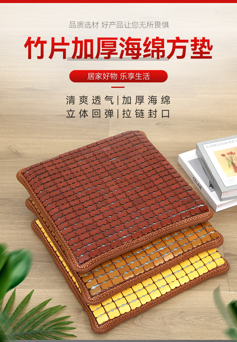 Бамбуковая подушка-накладка из утолщенной губки, квадратная, для лета, охлаждающая, для офисного кресла, дышащая, маленькая, охлаждающая подушка-накладка из бамбука