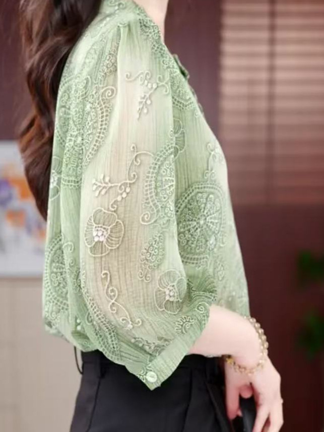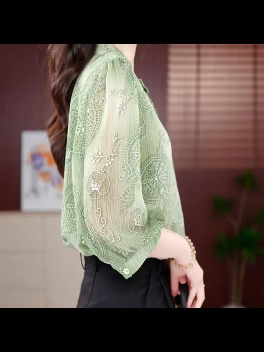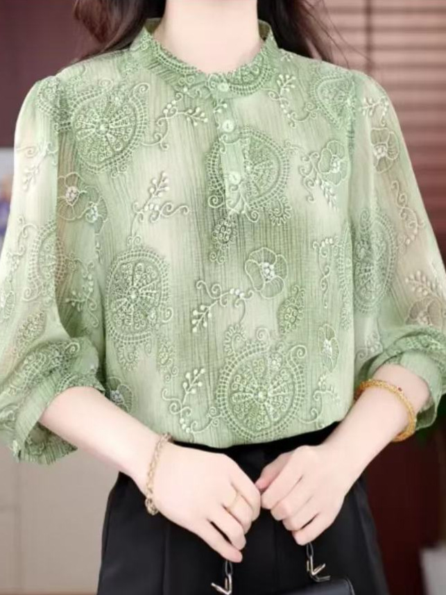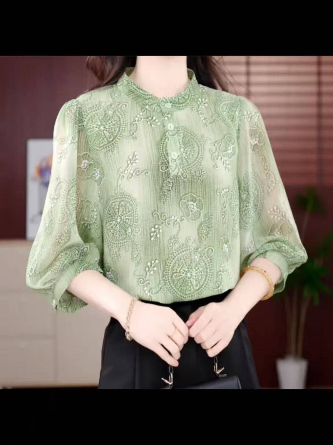 Летняя шифоновая блузка с принтом, модный тренд 2025 года, высококачественная женская рубашка в иностранном стиле, тонкий топ для мам.